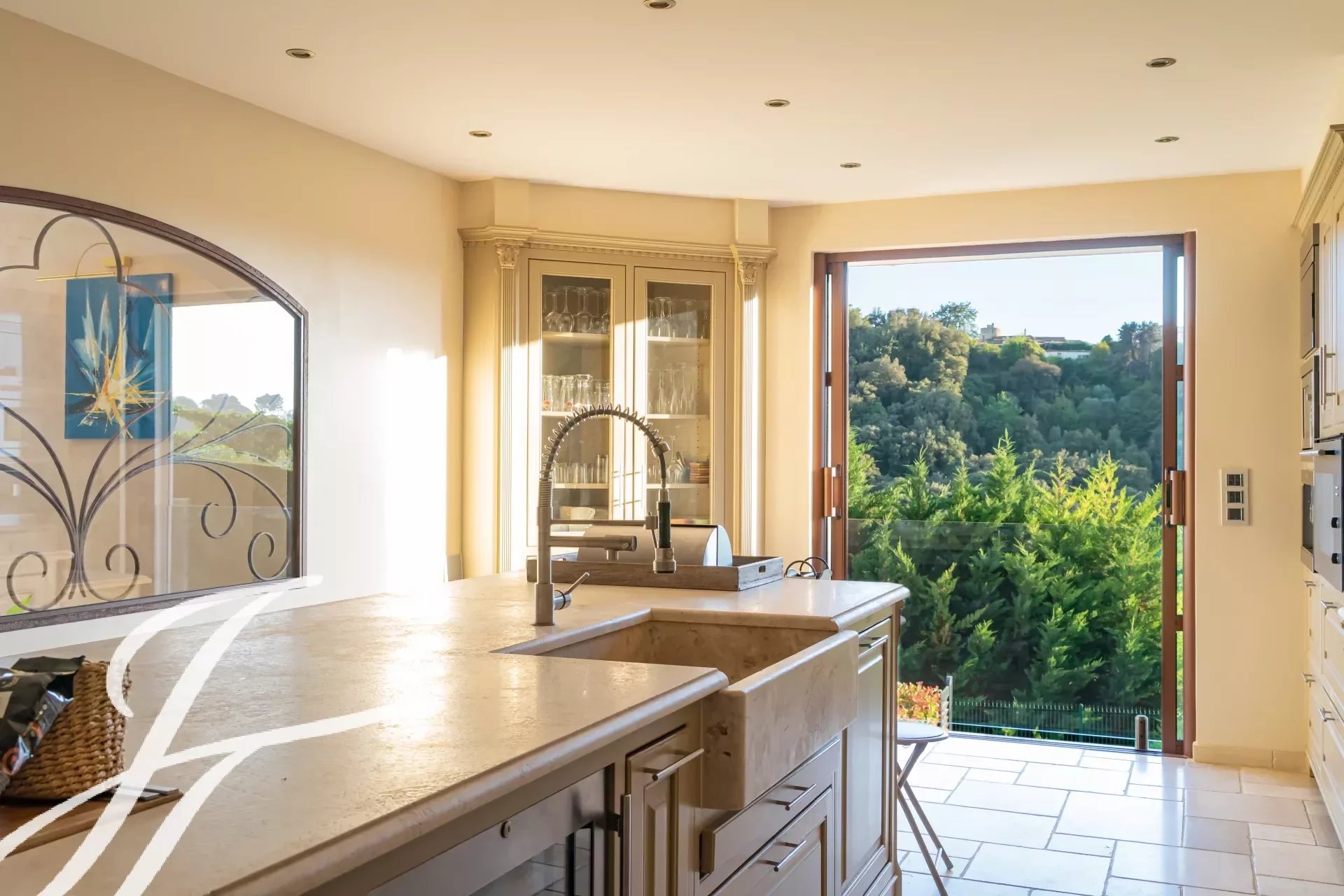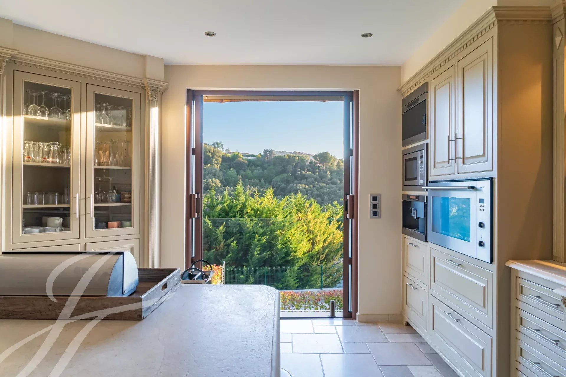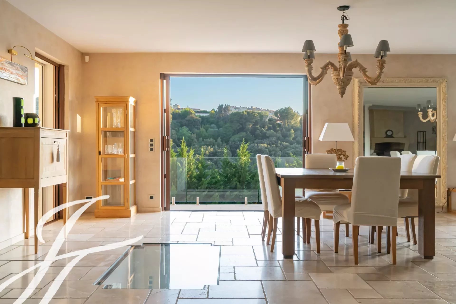 Idéalement située à seulement 10 minutes de Saint-Paul-de-Vence et des plages de Cagnes-sur-Mer, à 15 minutes de l’aéroport de Nice, cette villa d’exception de près de 550 m² s’étend sur un terrain paysager d’environ 2 488 m², offrant un cadre de vie luxueux et serein.