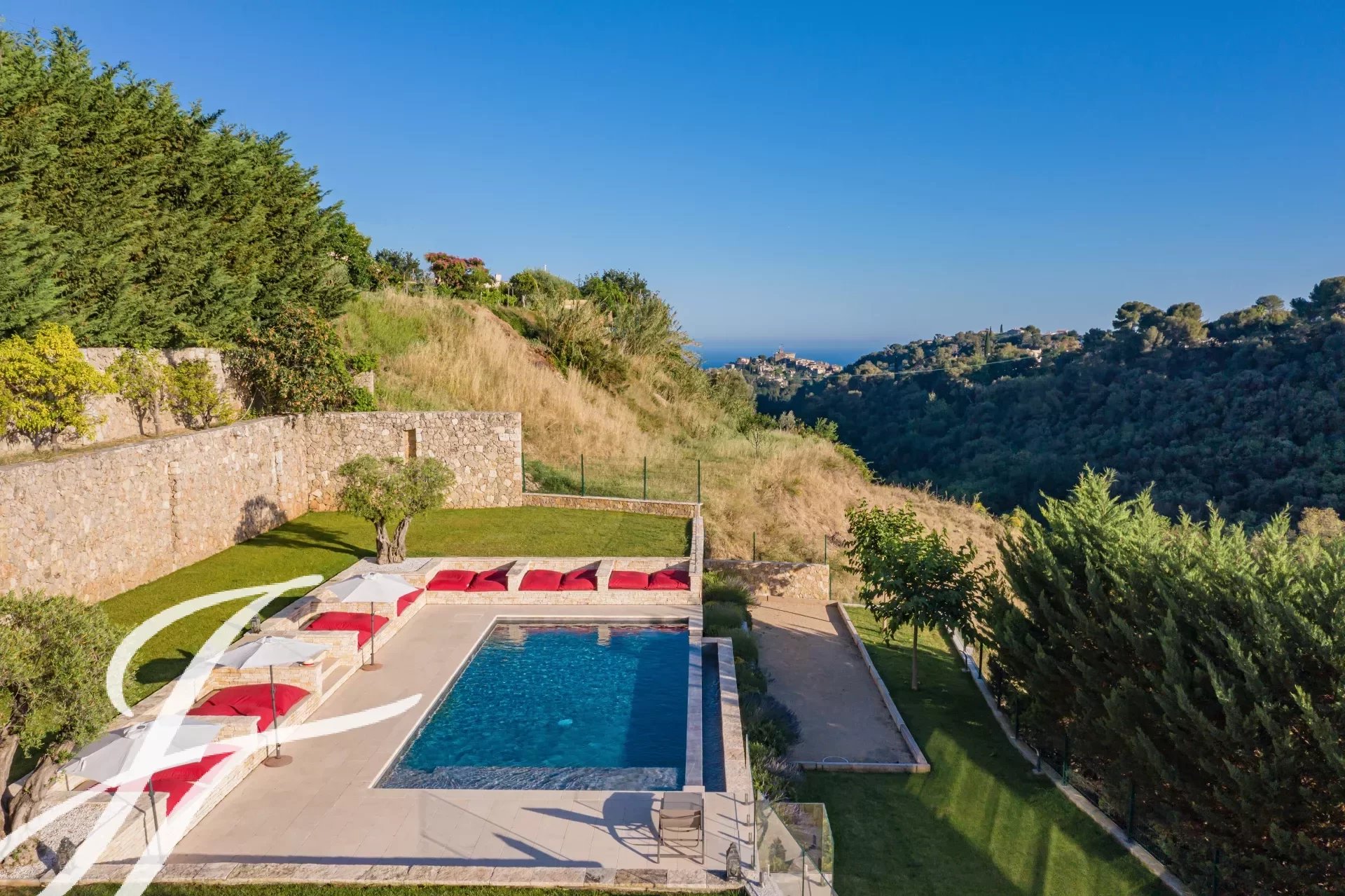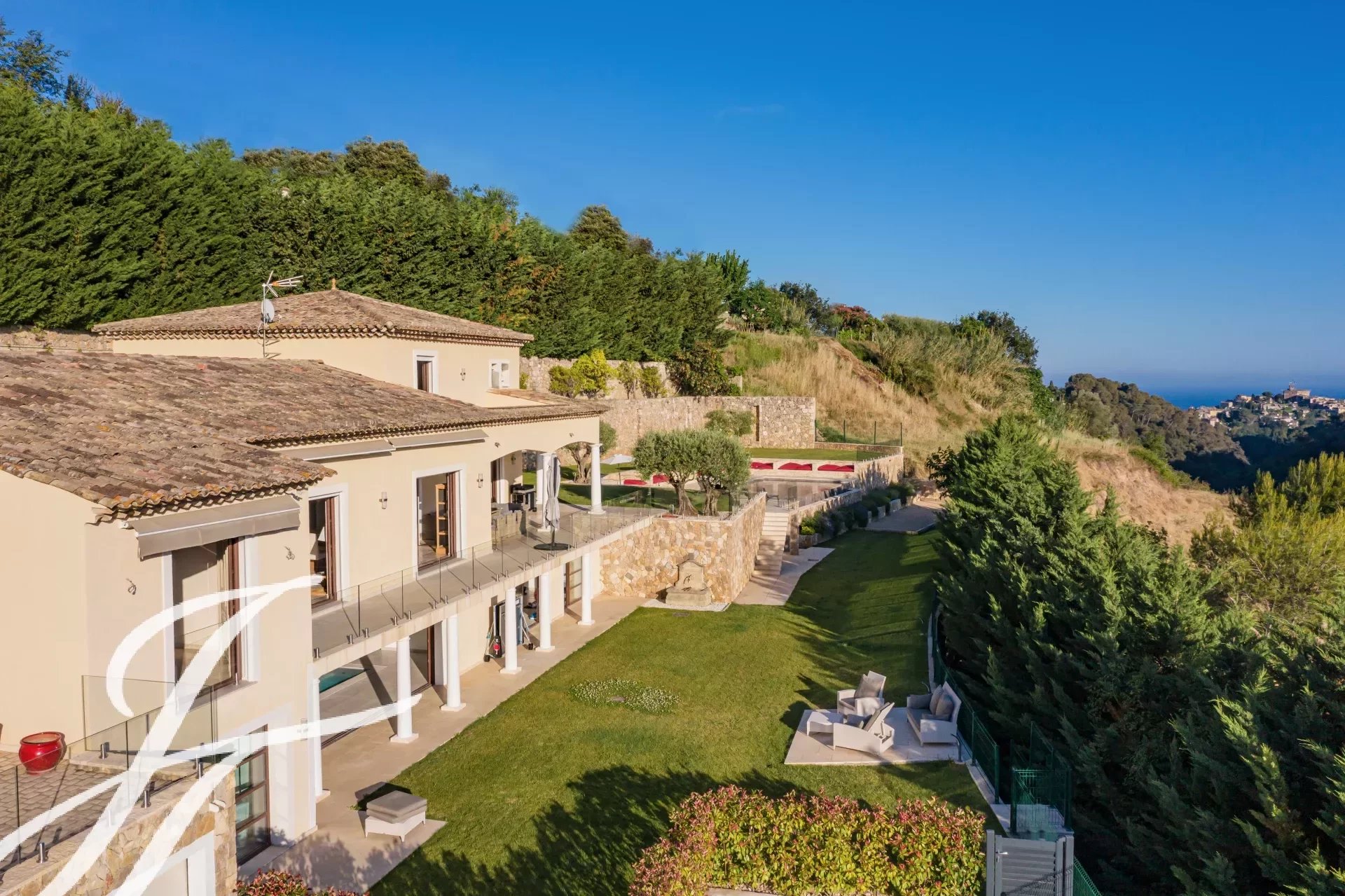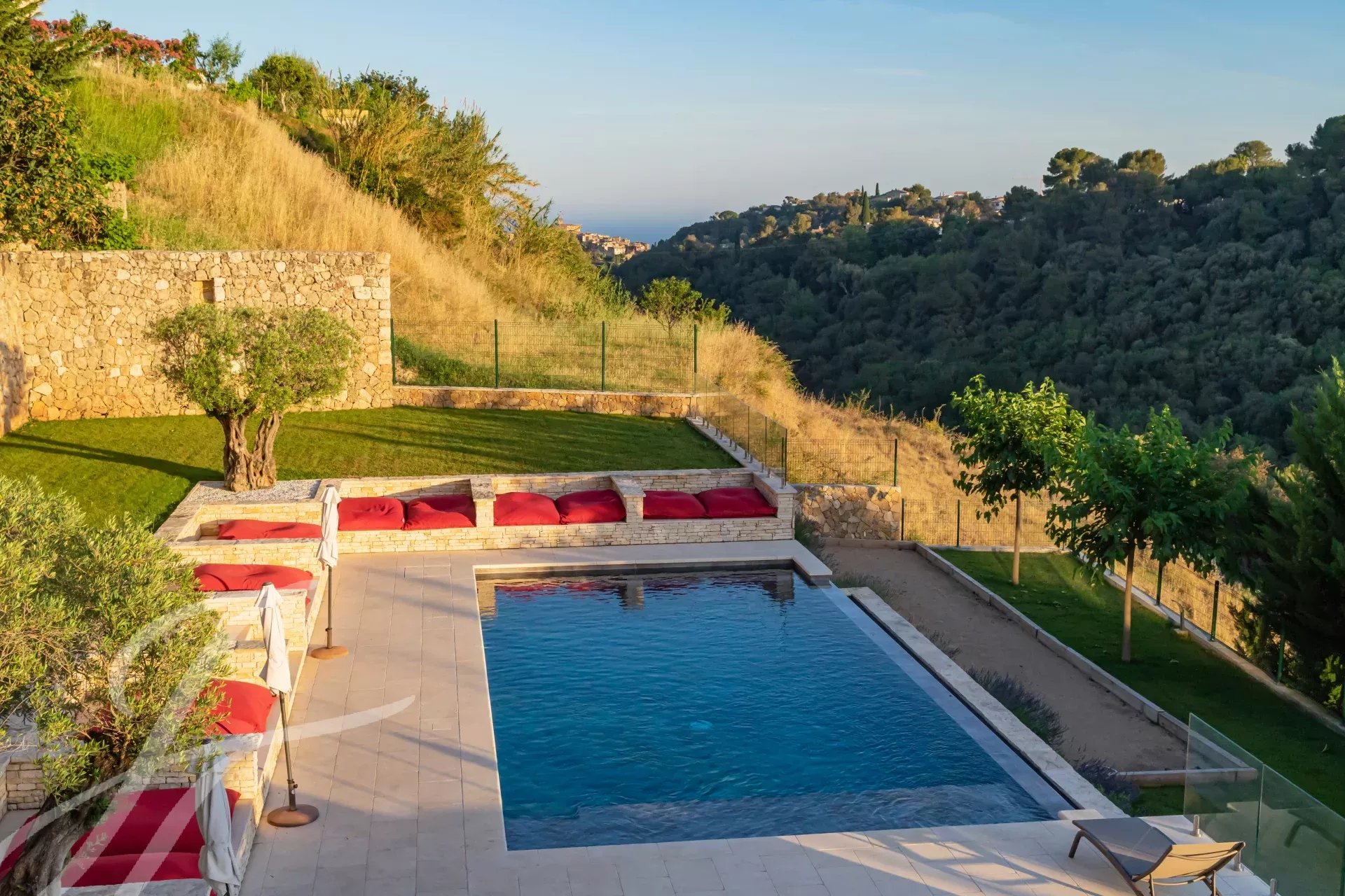 Idéalement située à seulement 10 minutes de Saint-Paul-de-Vence et des plages de Cagnes-sur-Mer, à 15 minutes de l’aéroport de Nice, cette villa d’exception de près de 550 m² s’étend sur un terrain paysager d’environ 2 488 m², offrant un cadre de vie luxueux et serein.