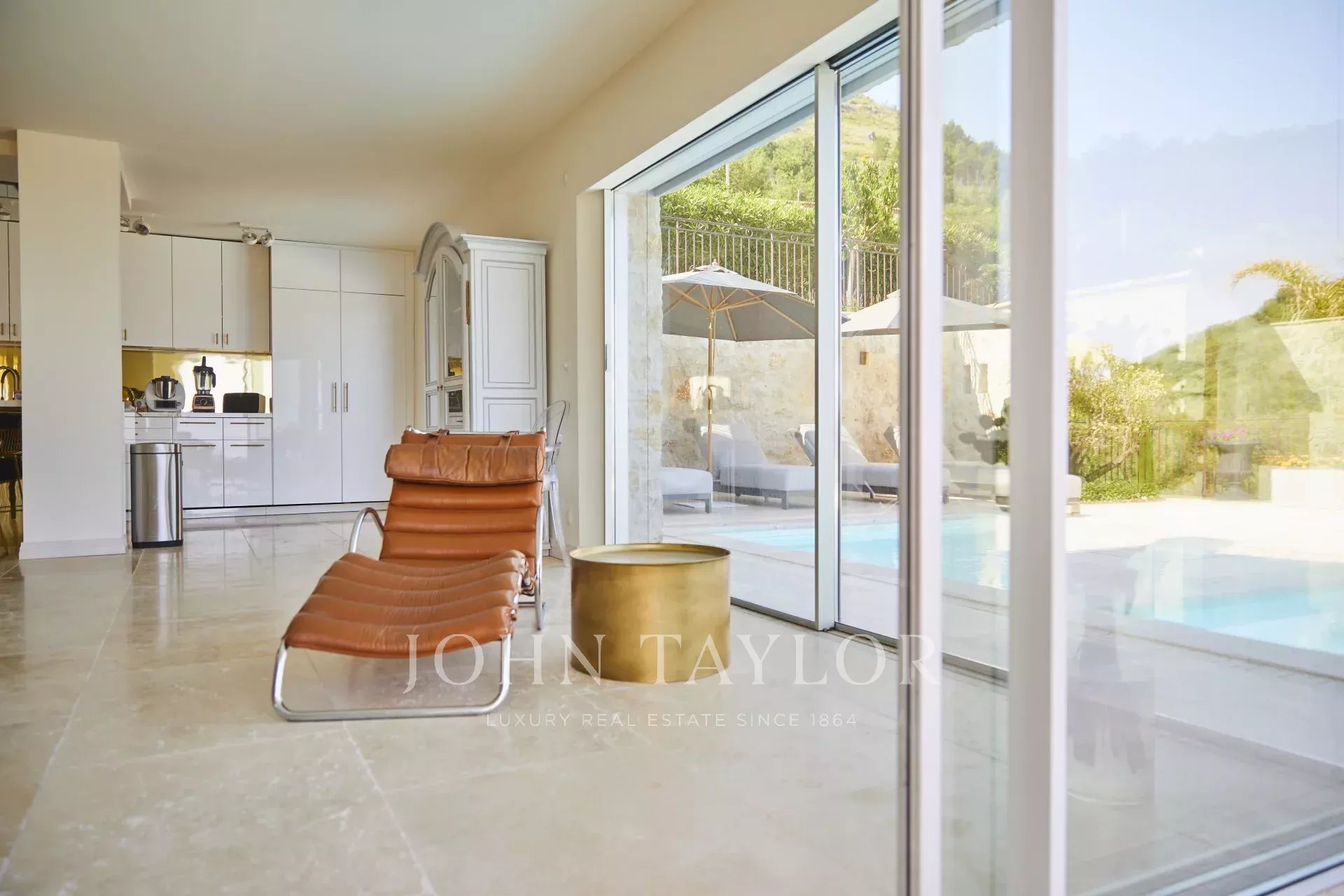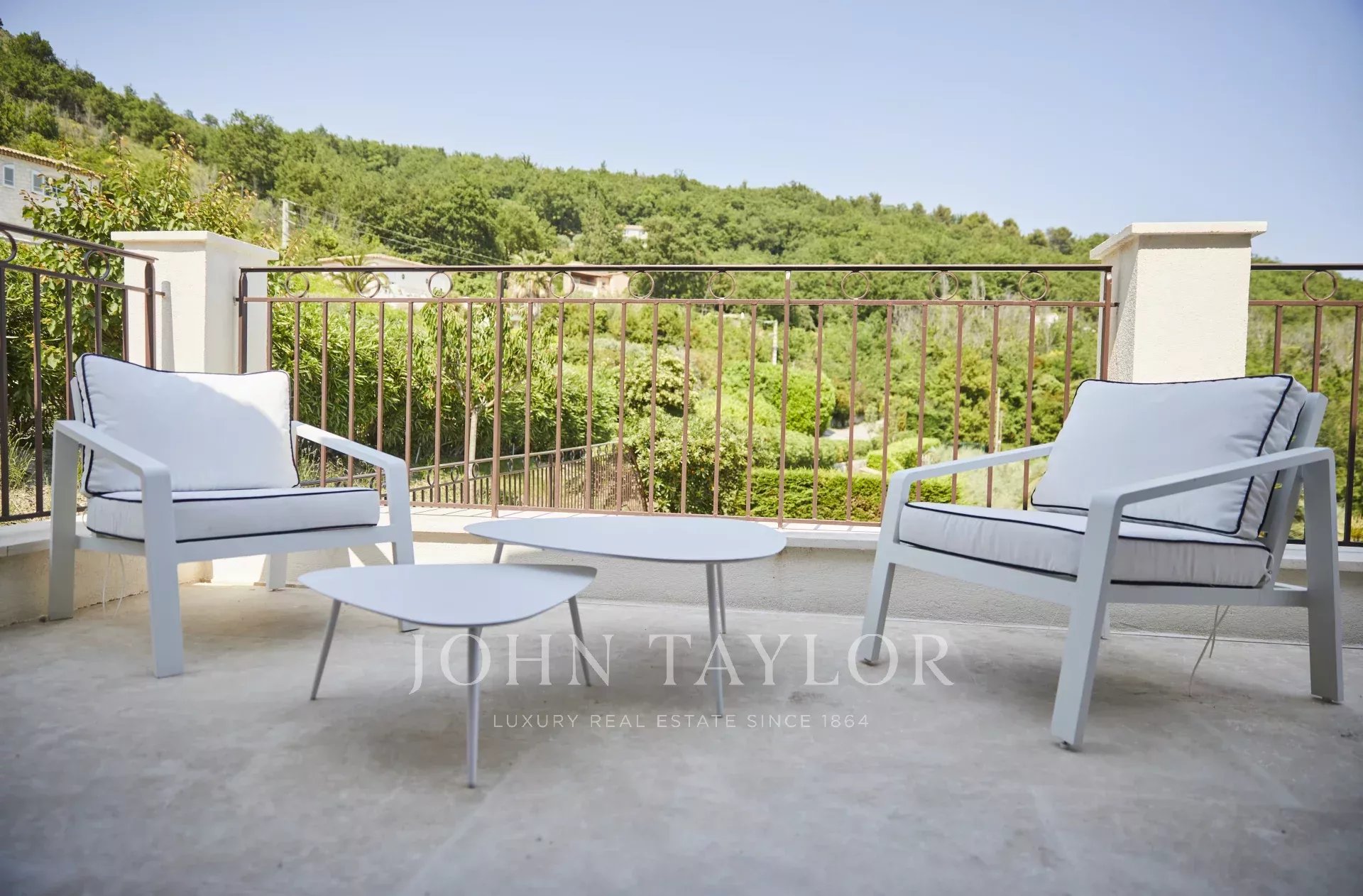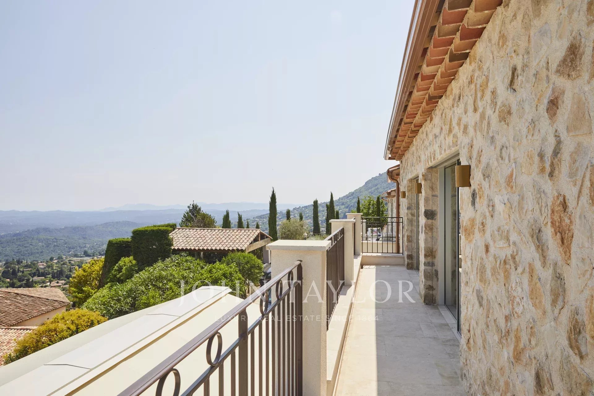 Somptueuse villa de 300m2 située au calme total dans les hauteurs de Tourrettes-sur-Loup, à deux pas du vieux village et des chemins de randonnée. Magnifique vue sur la mer et les collines aux alentours.