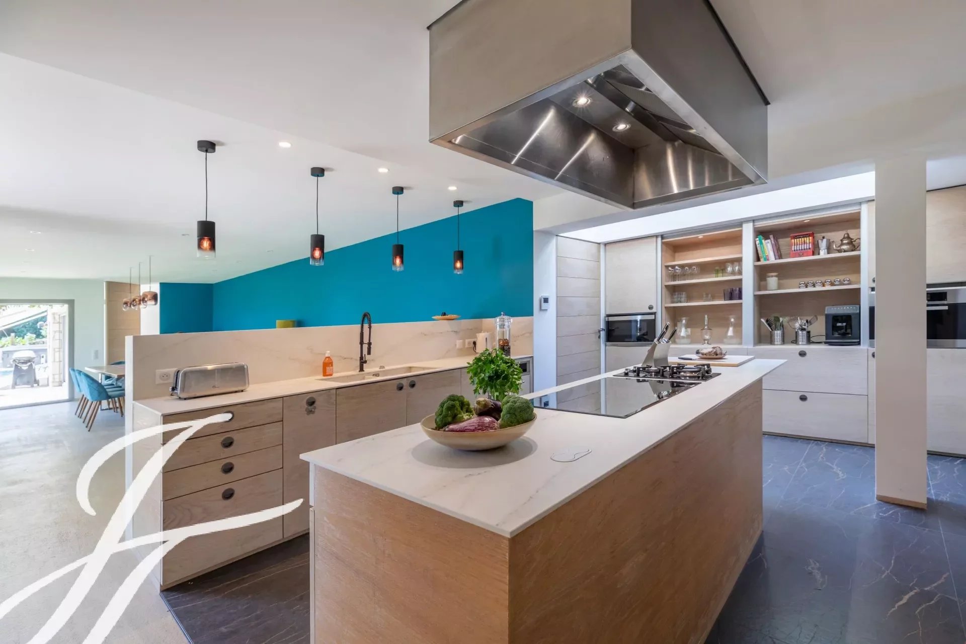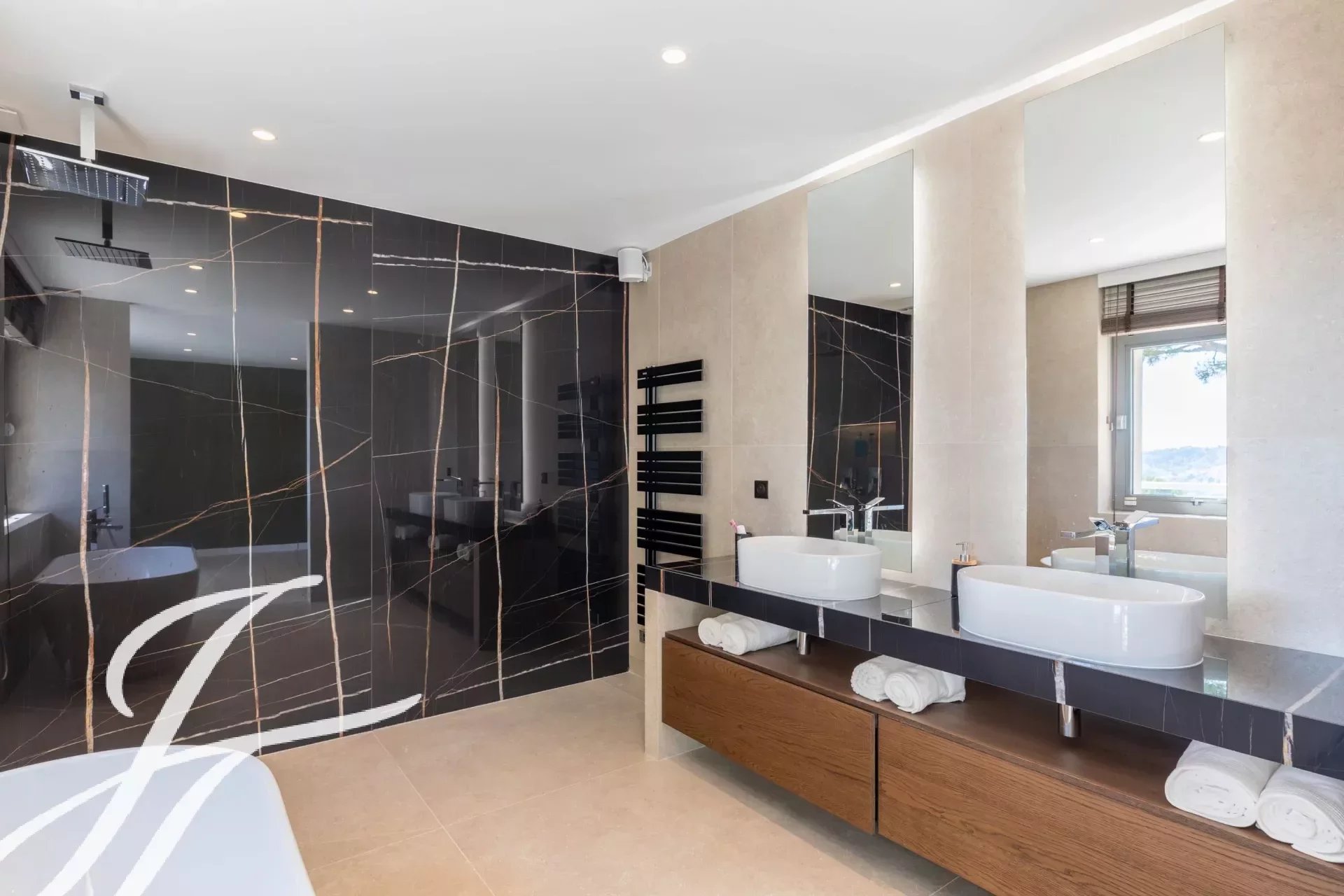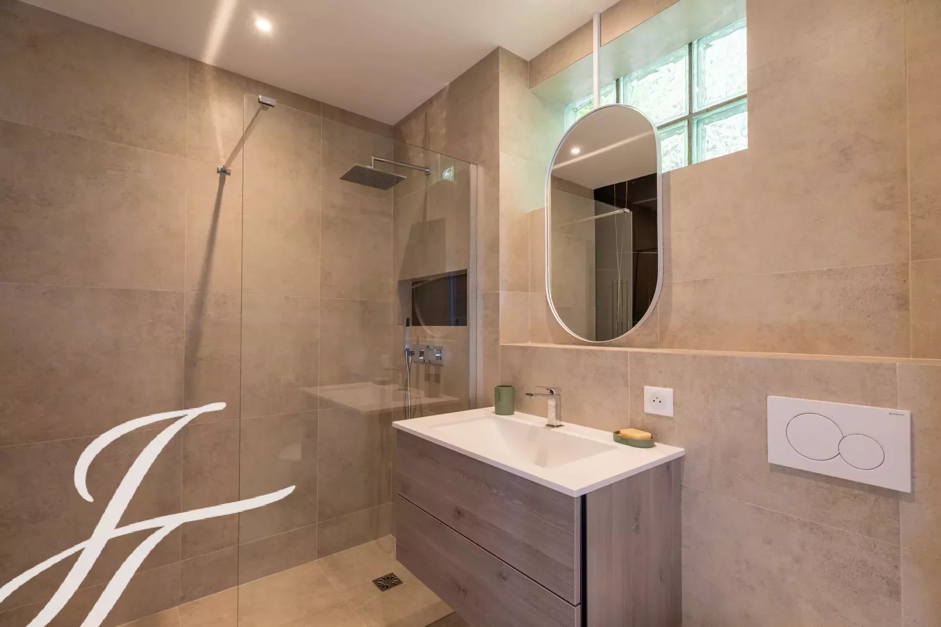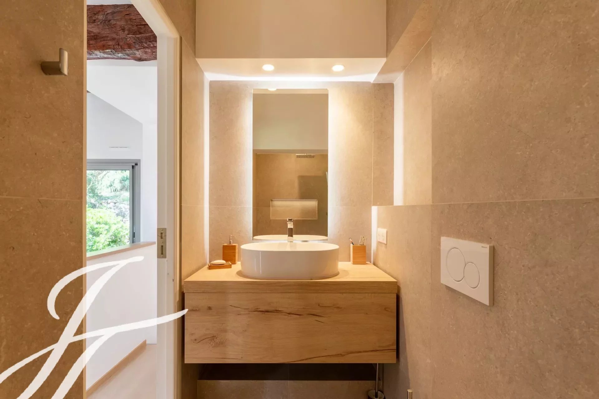 Dans un prestigieux domaine résidentiel fermé bénéficiant d'une vue panoramique sur le village de Biot et la mer en toile de fond, superbe propriété de style contemporain, entièrement rénovée avec goût, offrant environ 360 m2 habitables, au cœur d'un parc paysager de 2 586 m2 avec piscine.