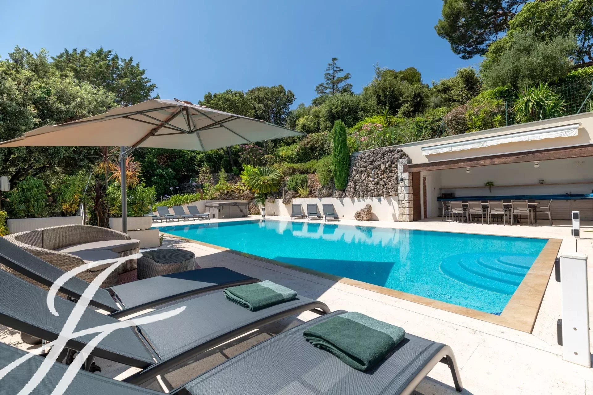 A l’extérieur : piscine, pool house, terrain de pétanque
