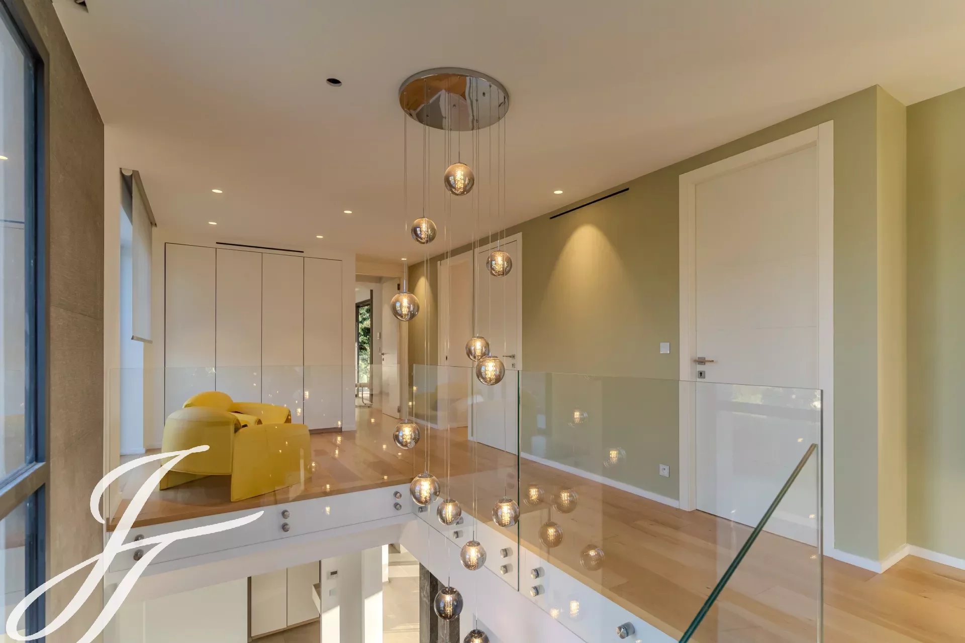 À l’étage se trouvent 4 chambres lumineuses et élégantes, chacune avec sa propre salle de douche attenante et donnant sur deux grandes terrasses avec une superbe vue.