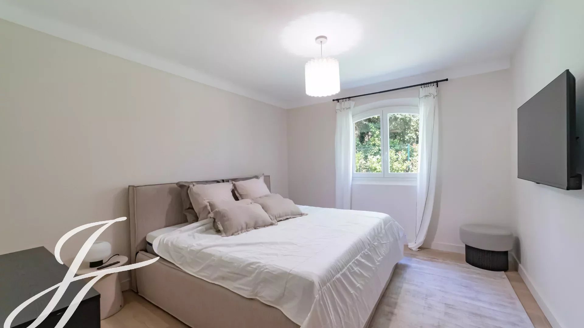 Dans un cadre paisible, au cœur d’un quartier résidentiel prisé, cette somptueuse villa de plain-pied, entièrement rénovée avec un soin extrême, vous offre une qualité de vie incomparable. À quelques minutes à pied du charmant village de Valbonne, elle allie harmonieusement authenticité et modernité.
