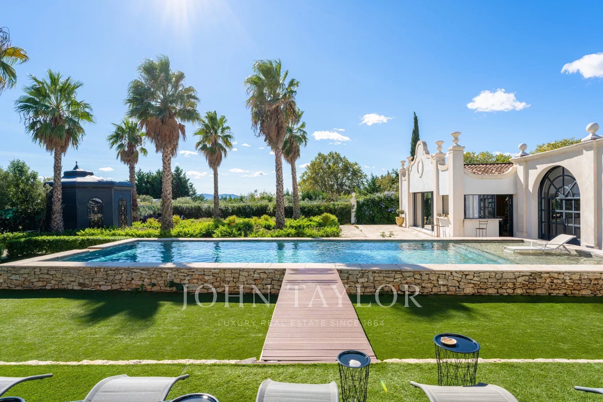 Votre agence immobilière de prestige John Taylor a le plaisir de vous proposer à la location une villa d’exception, située au cœur d’Aix-en-Provence, où l’architecture marie harmonieusement le charme des Bermudes et la sophistication provençale.