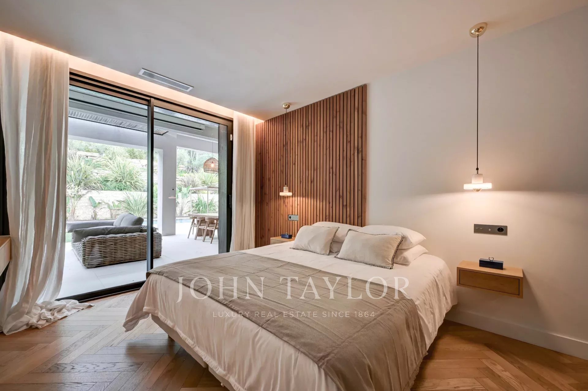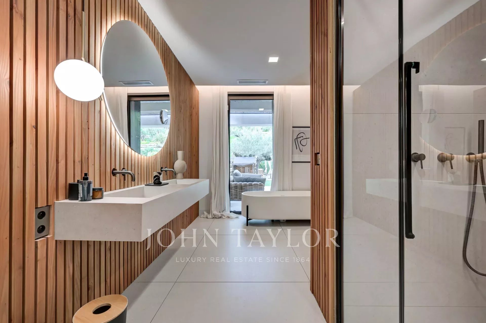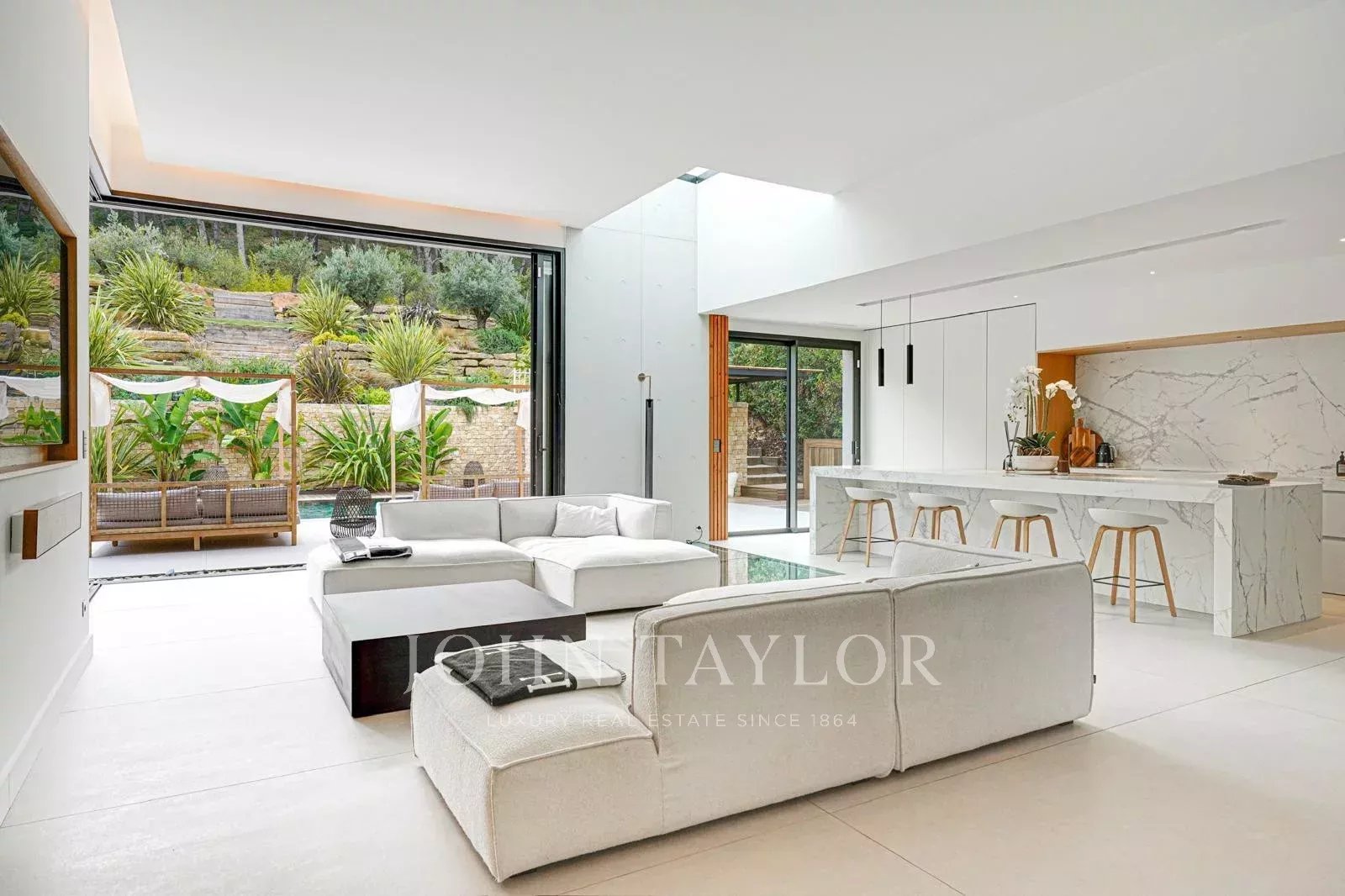 À l’extérieur, tout est conçu pour profiter pleinement de l’art de vivre provençal : une piscine à débordement, un pool house aménagé et de généreuses terrasses offrent un cadre enchanteur pour la détente ou les réceptions.