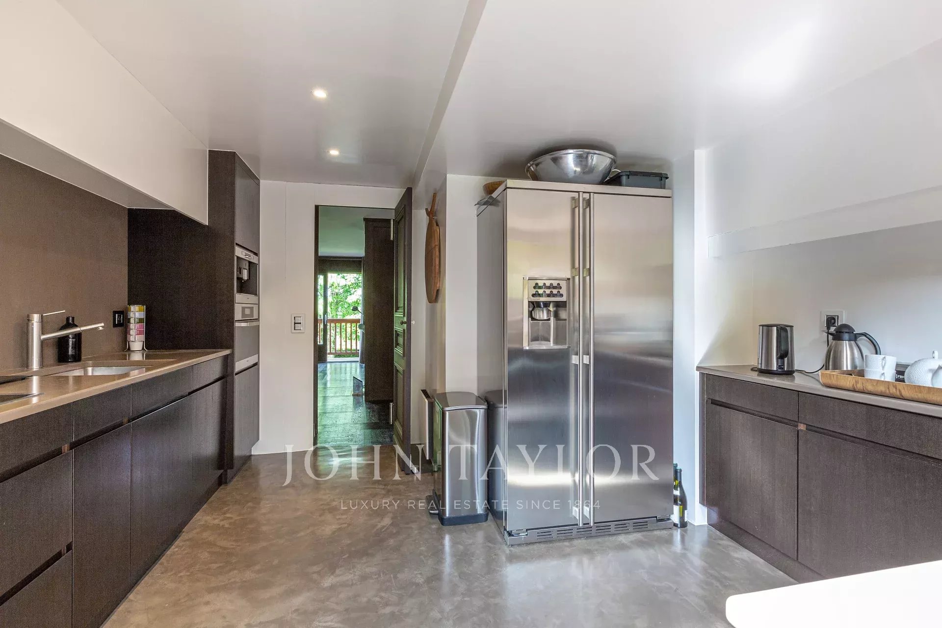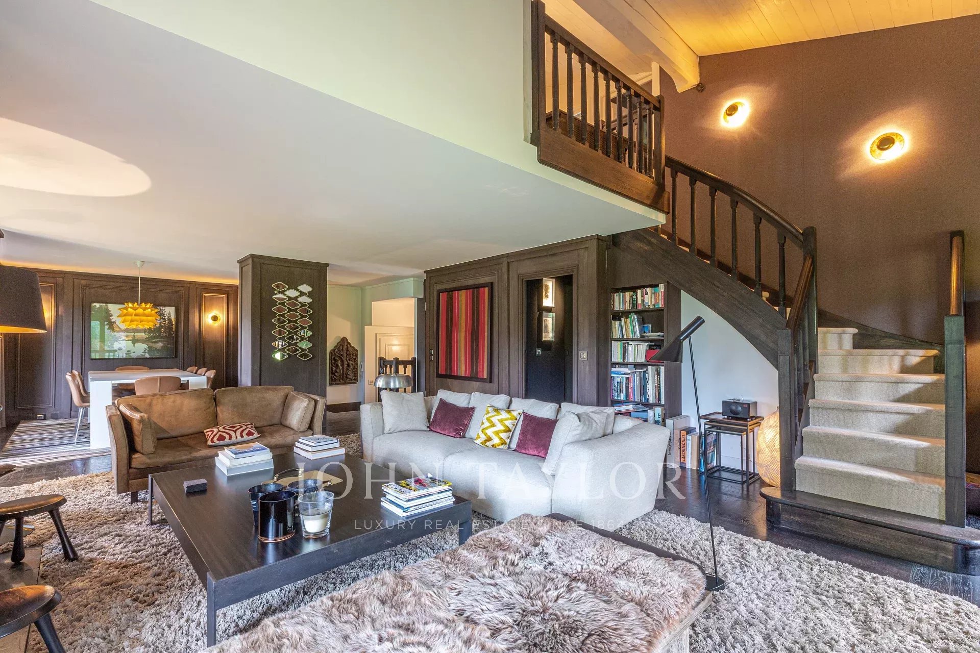 Situé dans une hameau privilégié sur les hauteurs de Megève, proche du golf et des remontées mécaniques, appartement d’une surface totale de 174,84m2 (155,11m2 loi-carrez) édifié sur 3 niveaux comprenant : Entrée avec rangement, cuisine aménagée et équipée, salle à manger, salon avec cheminée donnant sur balcon/terrasse, Exposition Sud-Est,