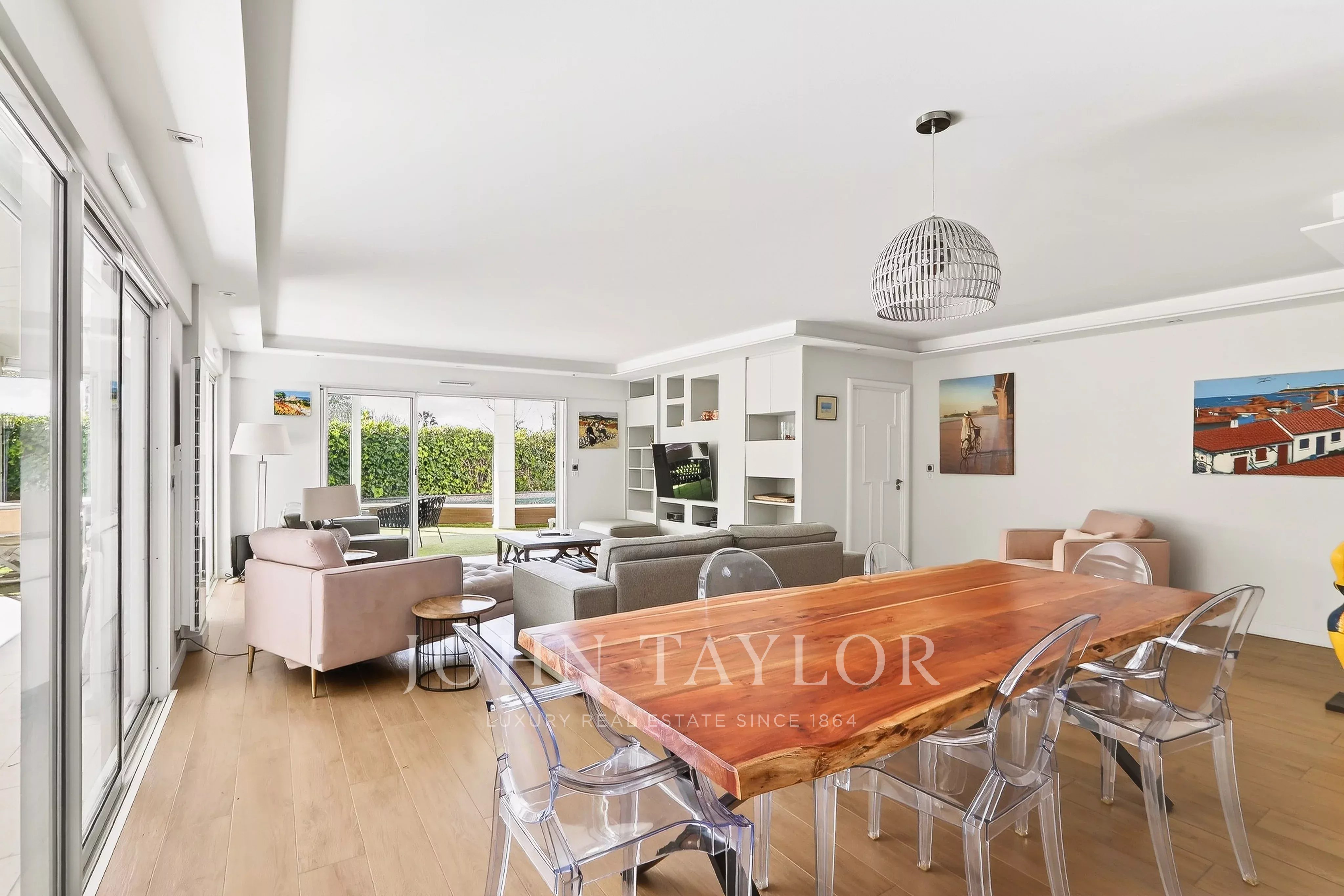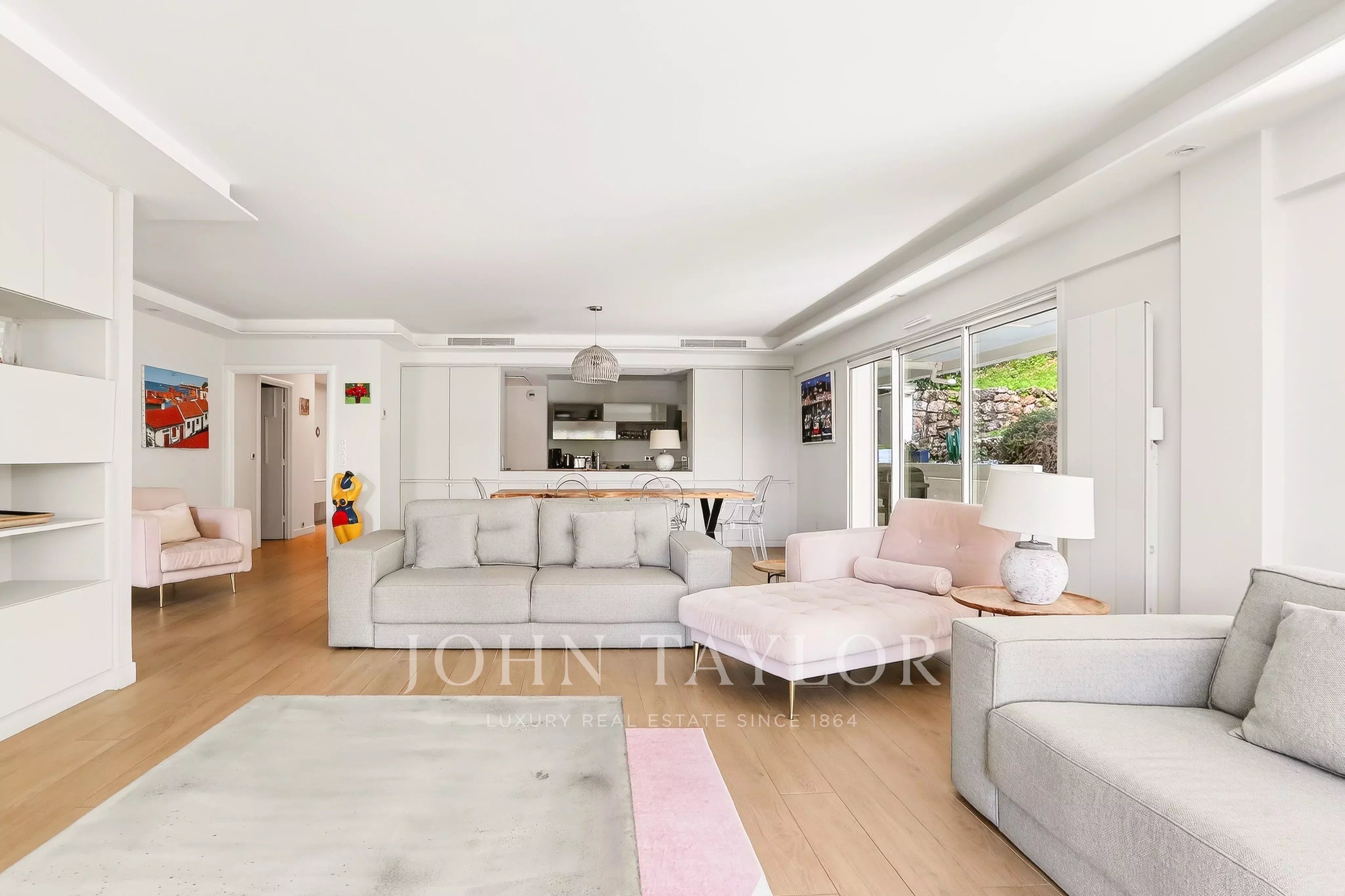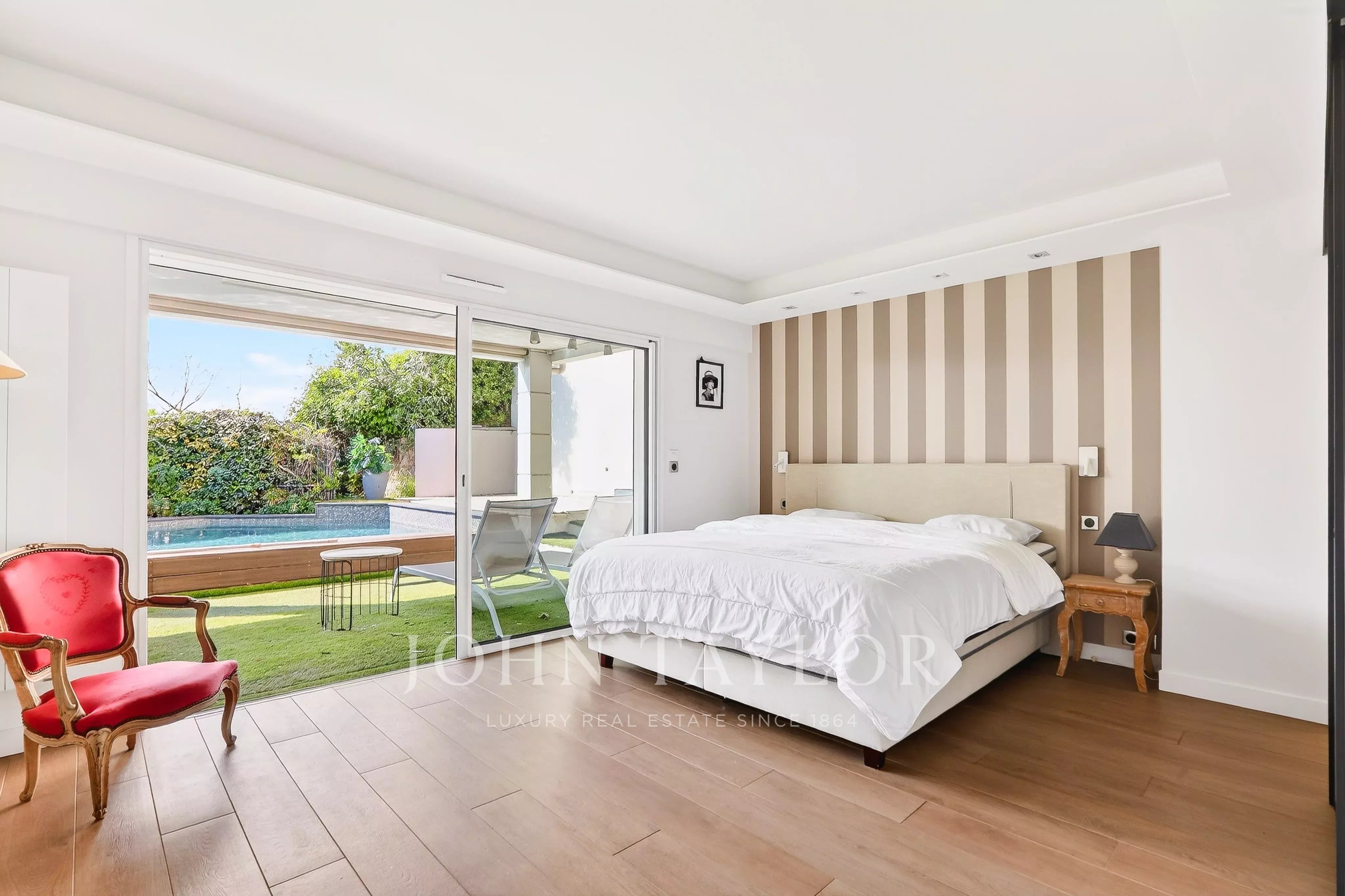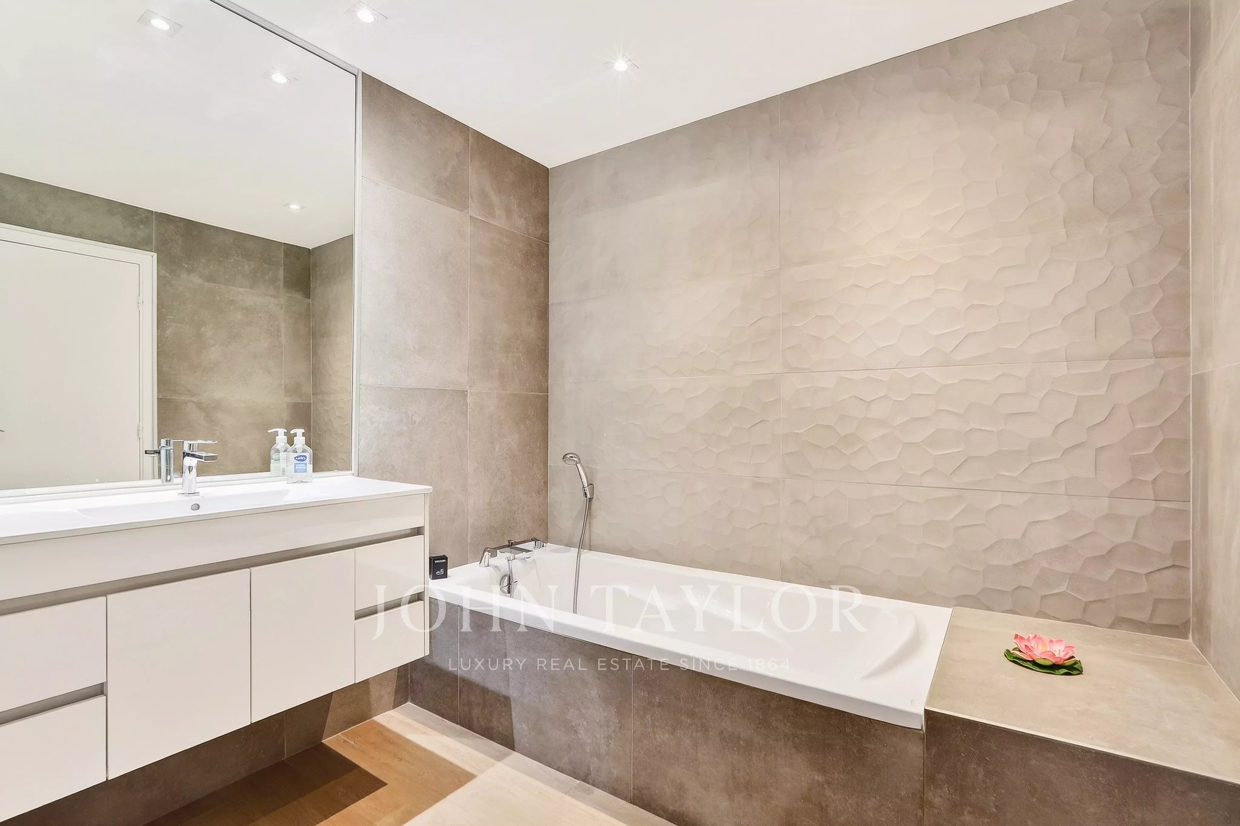 Situé dans le quartier résidentiel et verdoyant de la Californie, à proximité immédiate du centre-ville et du complexe sportif du Parc Montfleury, ce magnifique appartement de 162 m², entièrement rénové, se trouve en rez-de-jardin et bénéficie d’une piscine privative.