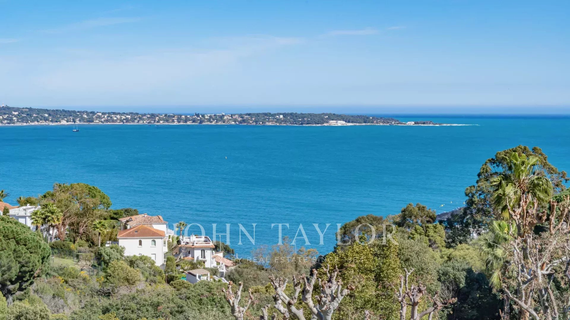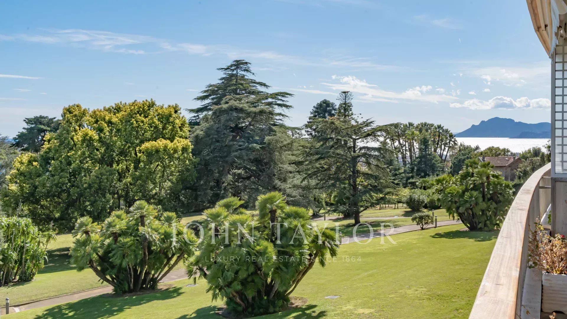 Le séjour et la chambre de maîtres donnent sur une vaste terrasse d'environ 20 m² offrant une magnifique vue sur le parc et la mer.