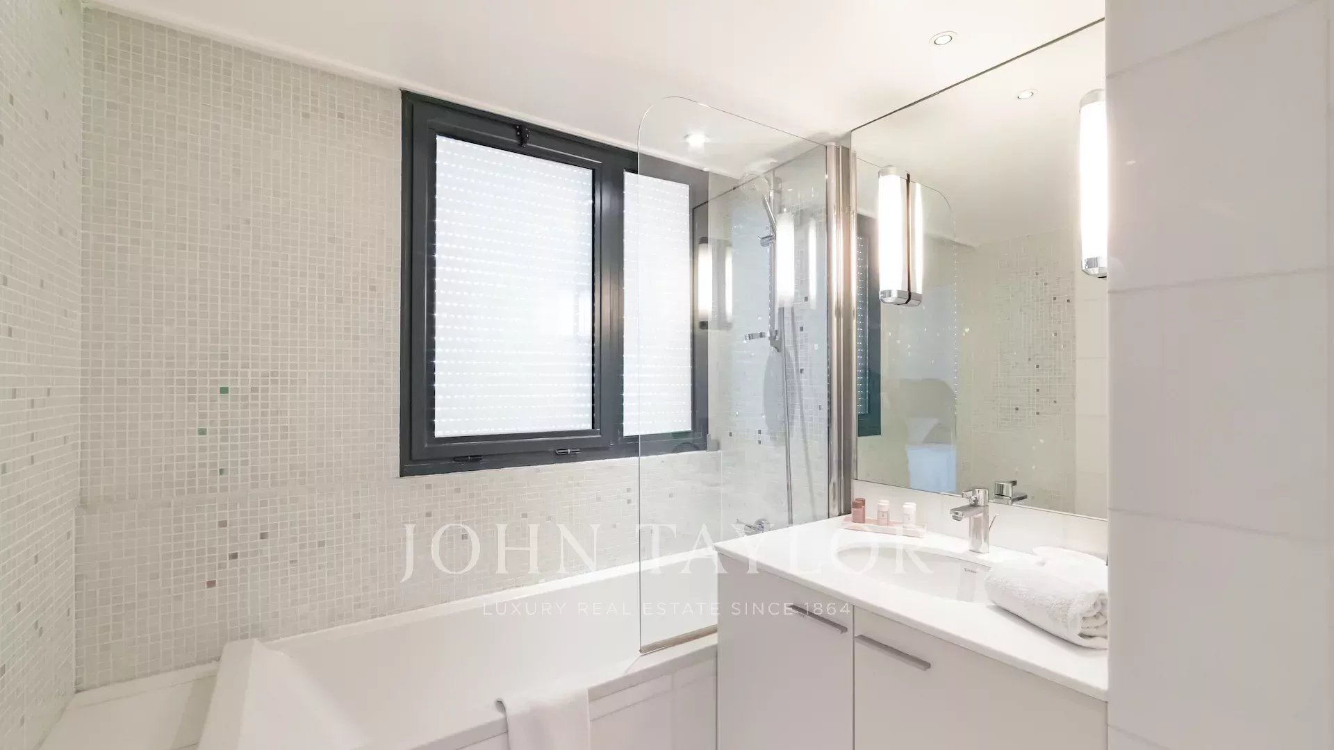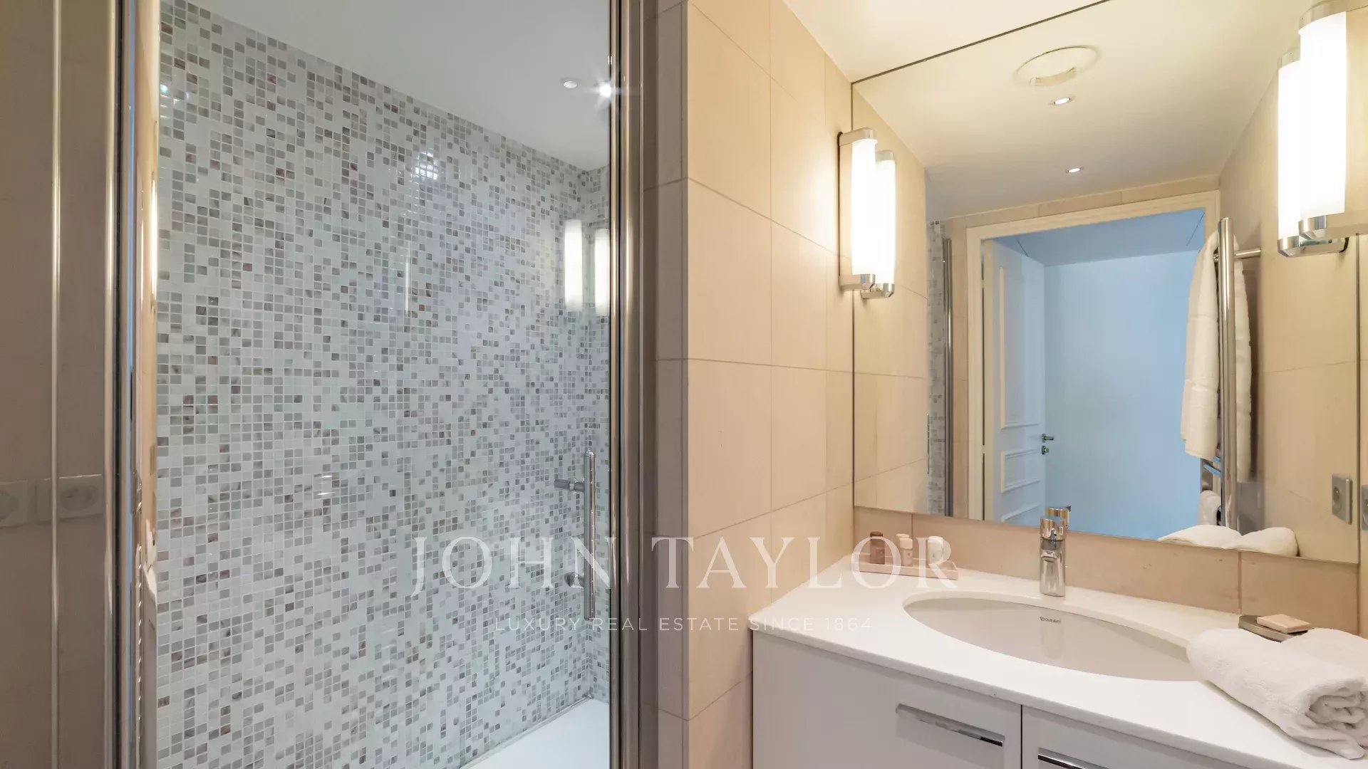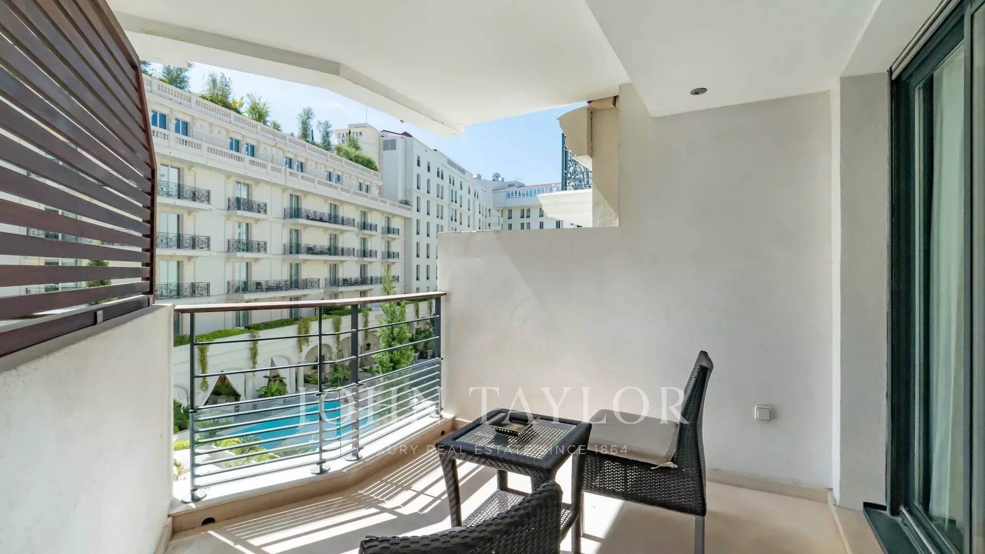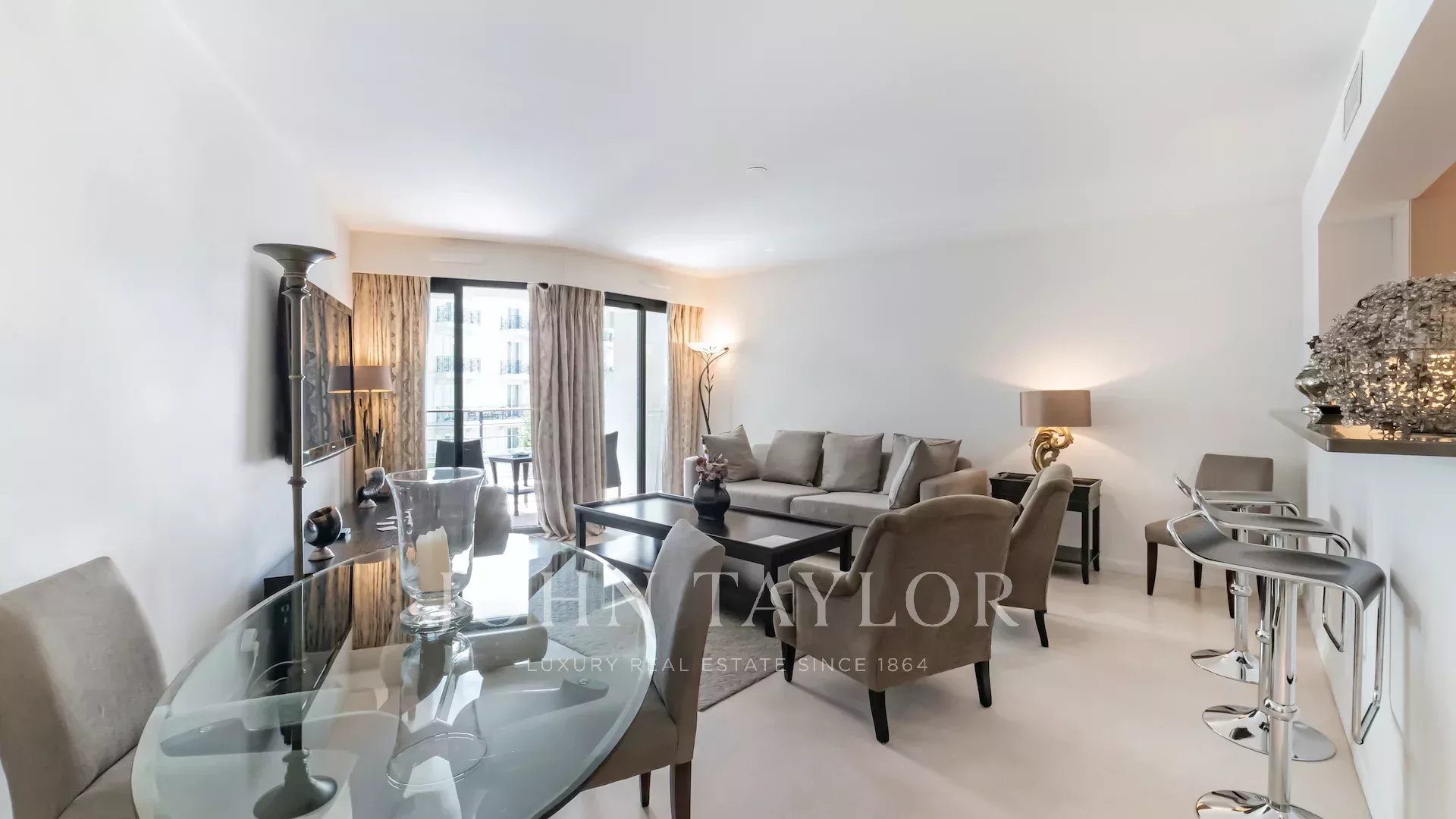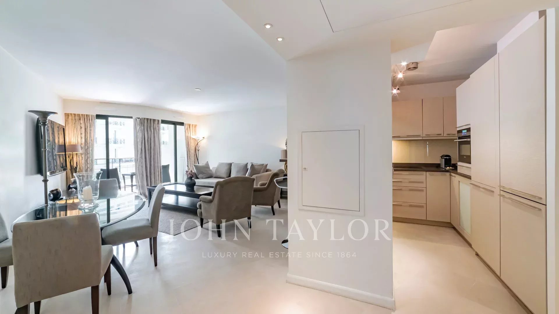À quelques mètres de la Croisette, dans une résidence luxueuse avec gardien, cet superbe appartement traversant bénéficie de deux terrasses et d'un agencement idéal.