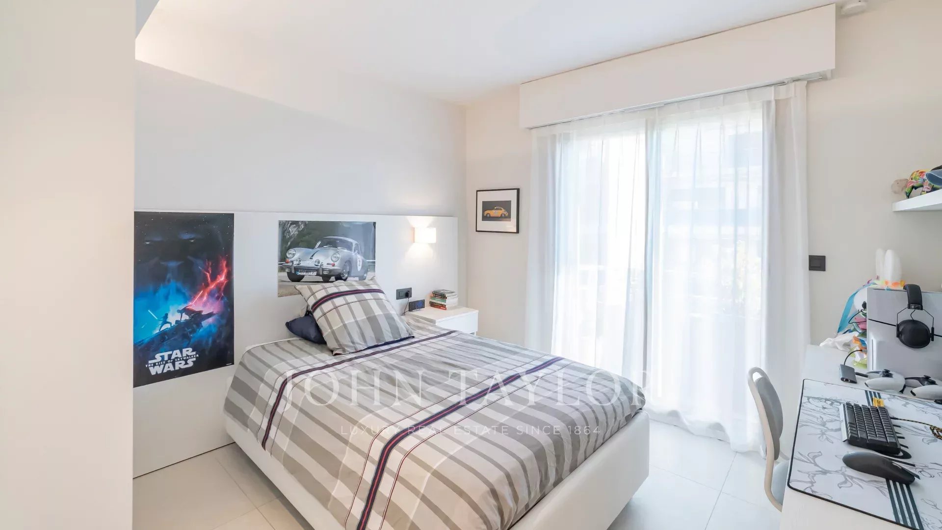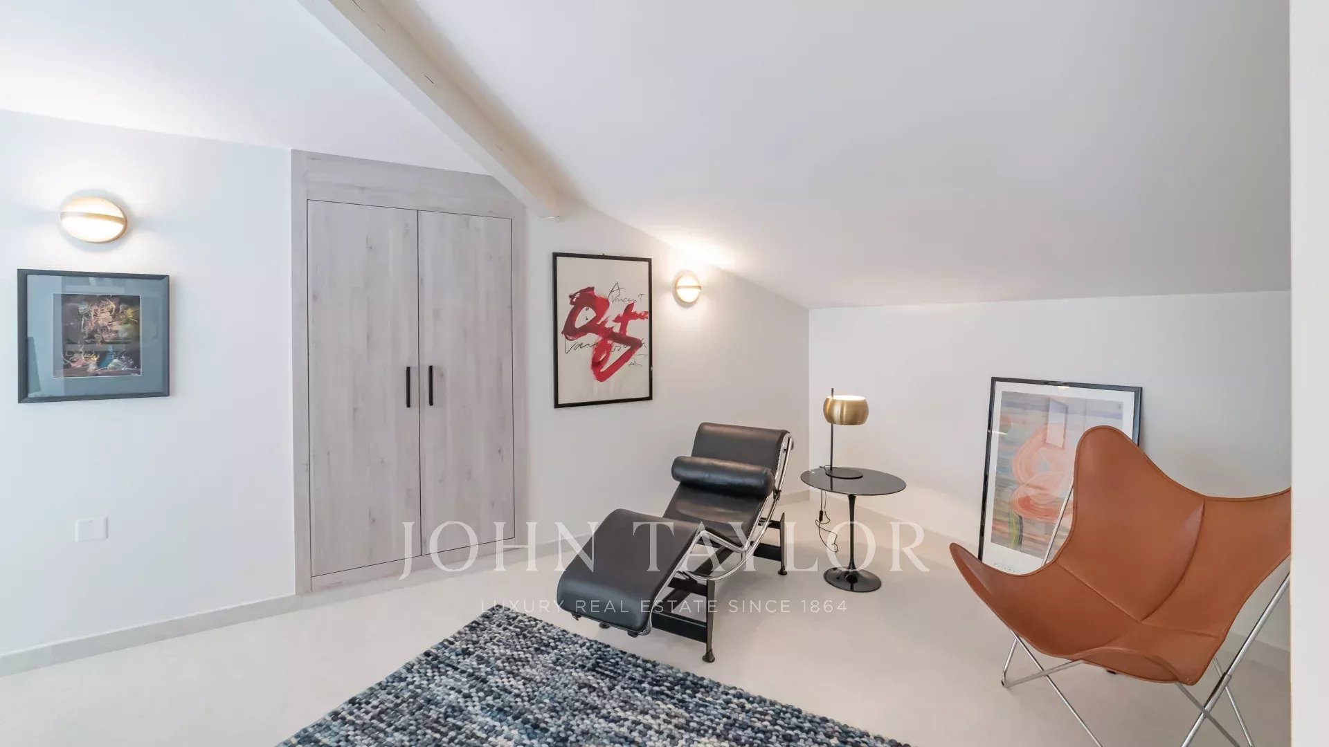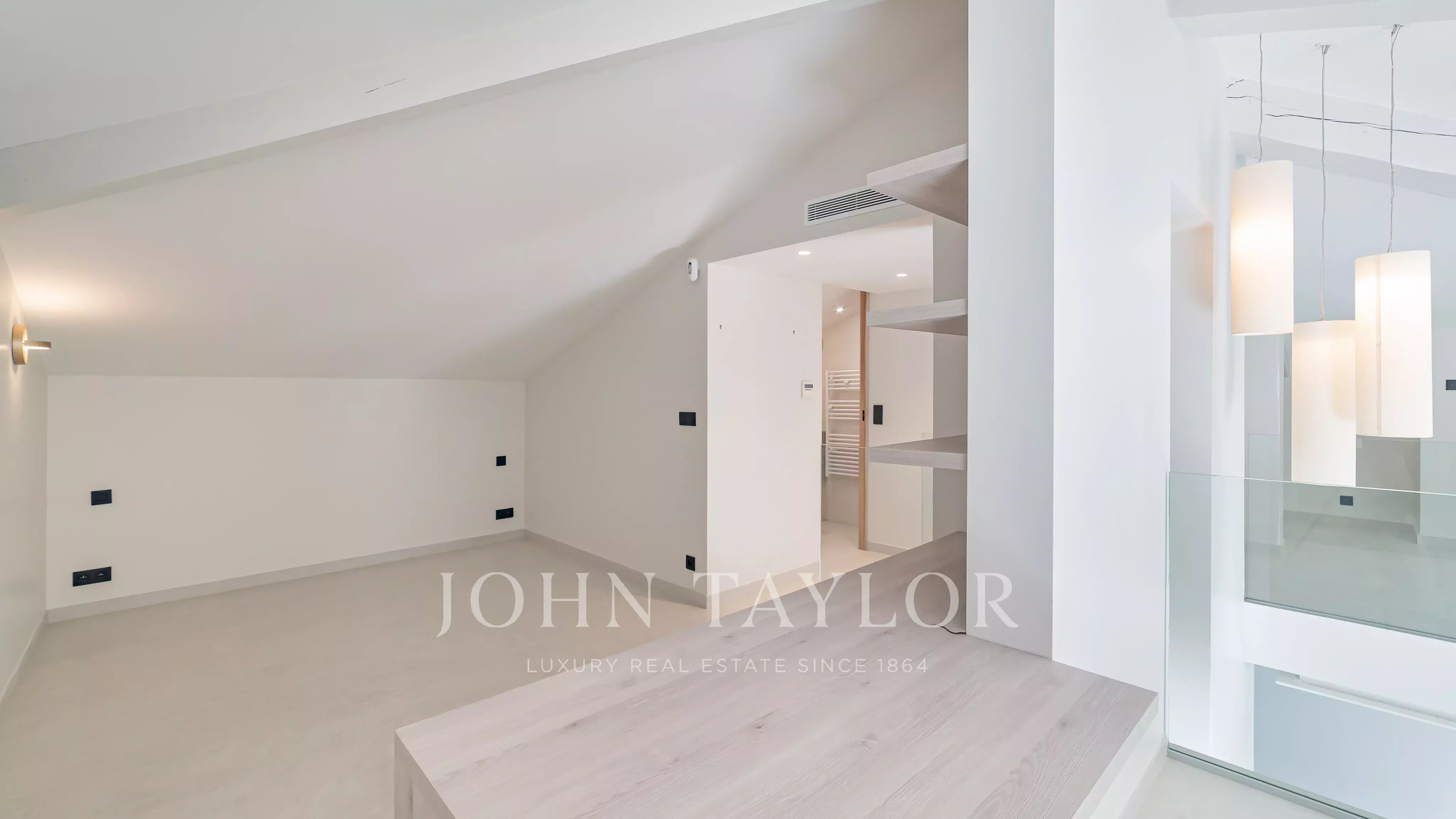 Il bénéficie d'environ 50 m² de terrasses. Exposé plein sud, il développe une surface de plus de 200 m² (173,49 m² Loi Carrez) et comprend : une entrée avec toilettes invités, un double séjour avec cuisine américaine équipée, une chambre de maître avec salle de douche en suite, un coin bureau et un dressing, le tout donnant sur la terrasse ; deux autres chambres, chacune donnant sur un balcon et se partageant une salle de douche. À l'étage, une mezzanine abrite une salle de jeux, un bureau/chambre, une salle de douche et un local technique/de rangement.