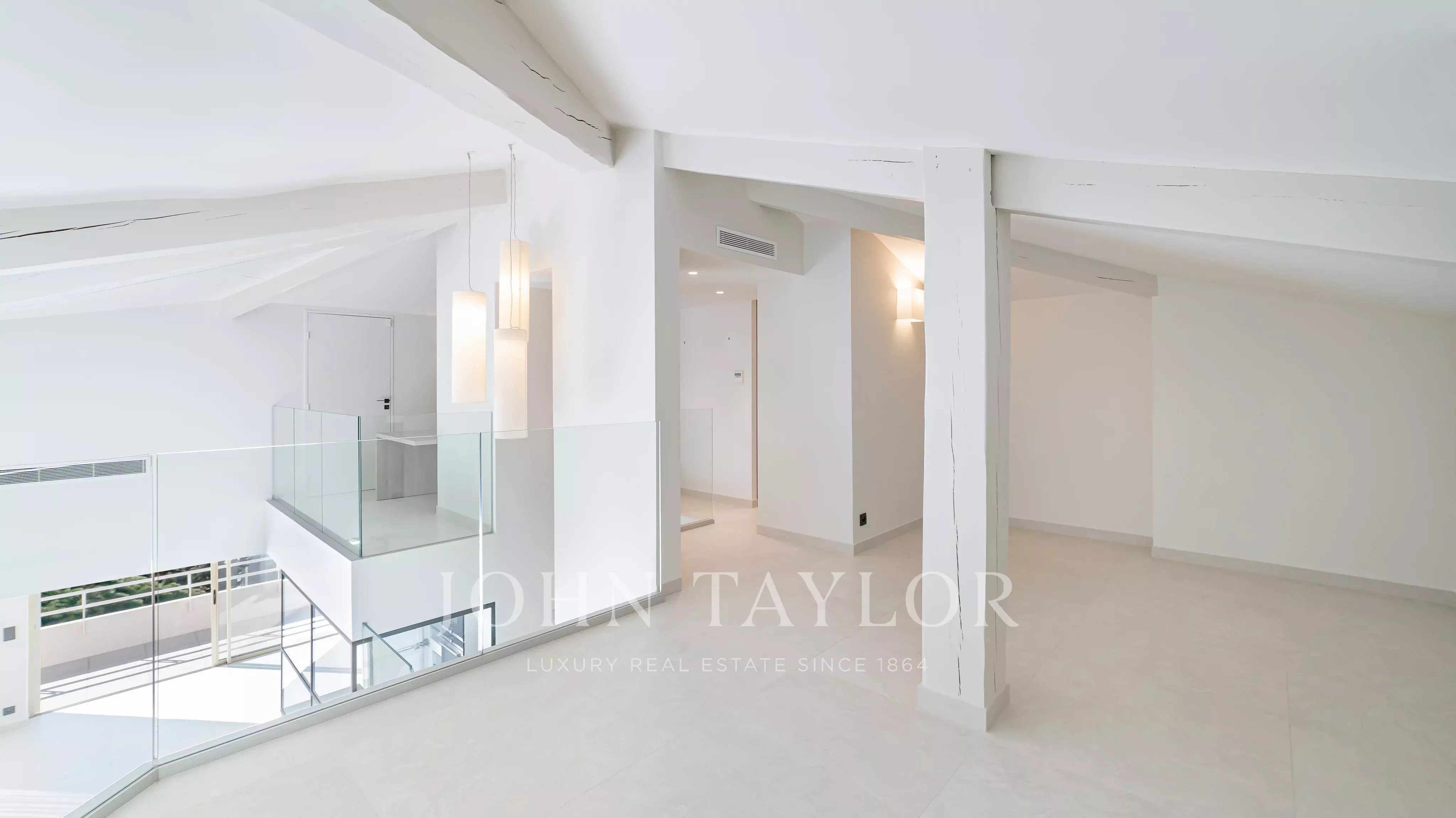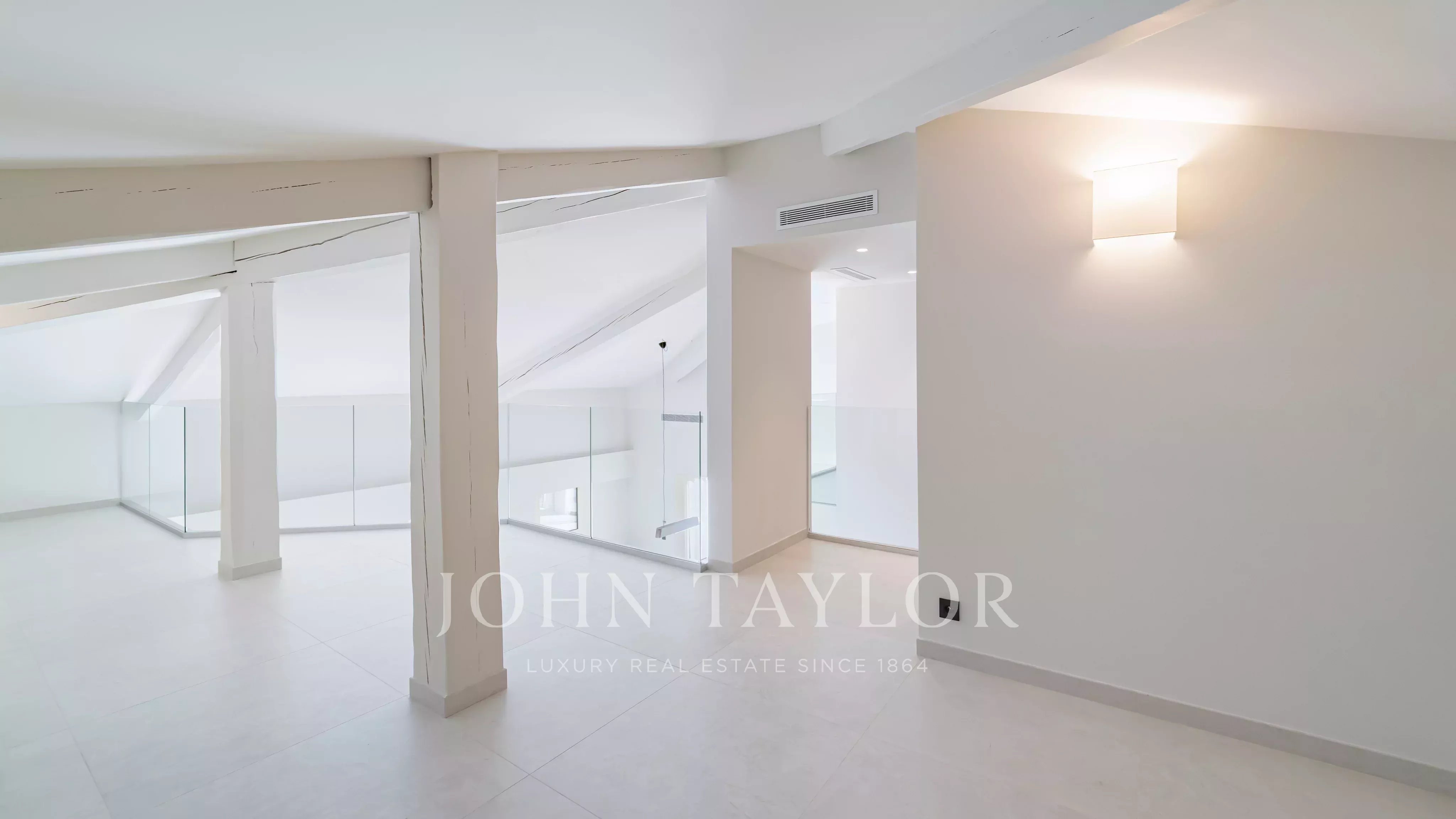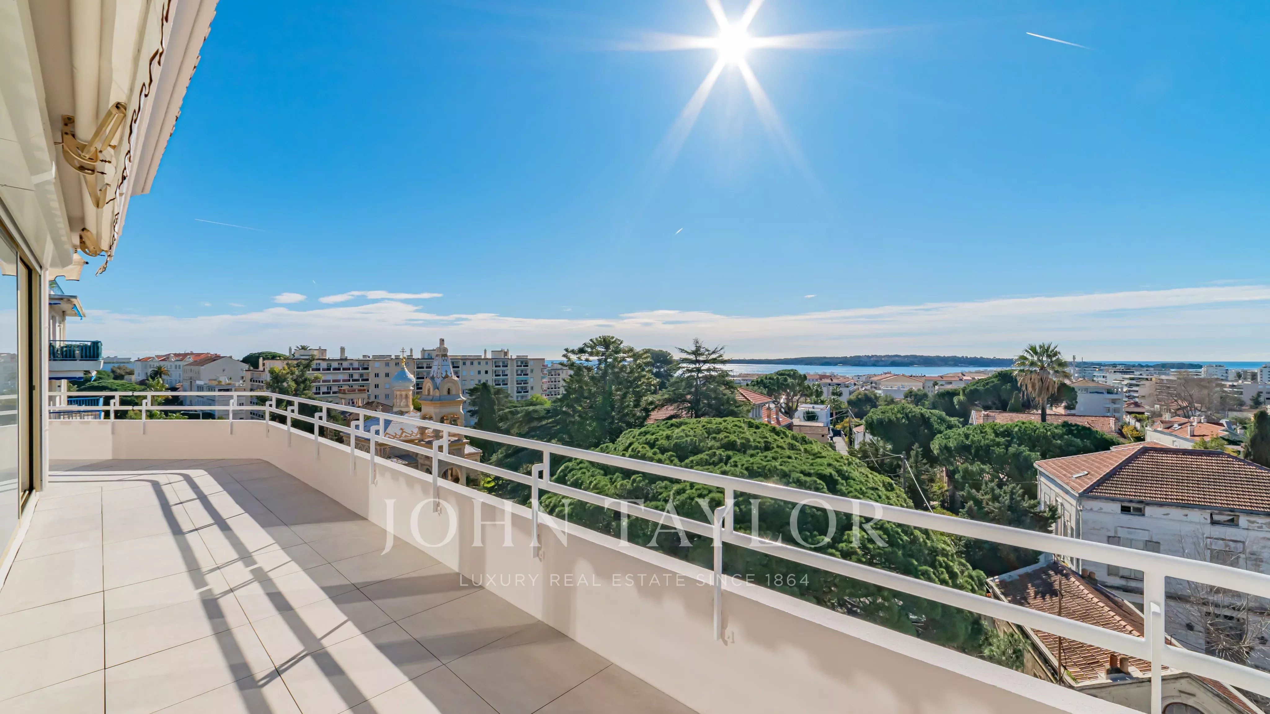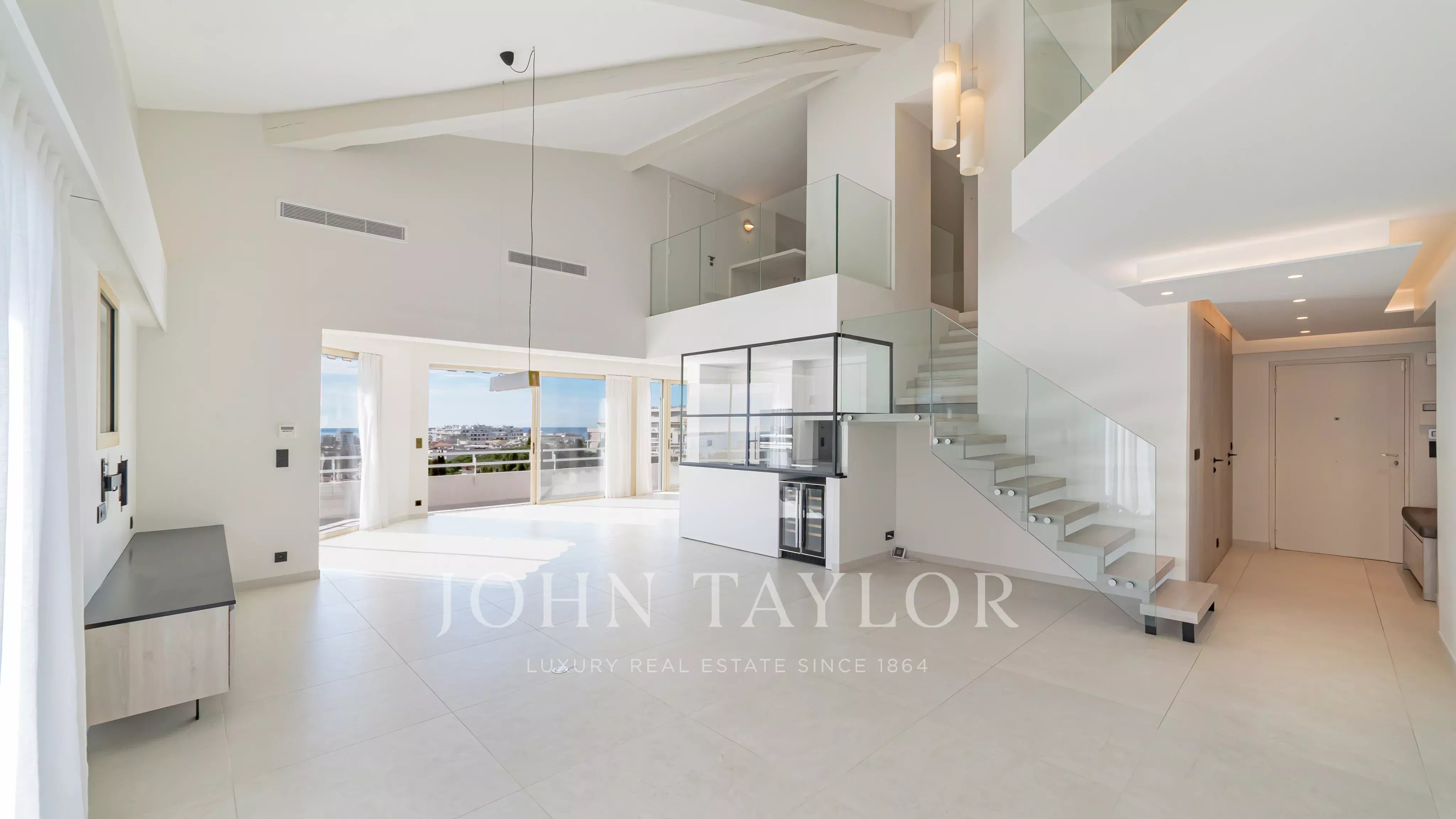Magnifique penthouse en duplex, entièrement rénové, situé à distance de marche de la Croisette et des commerces, et offrant une très belle vue sur la mer et les îles de Lérins.