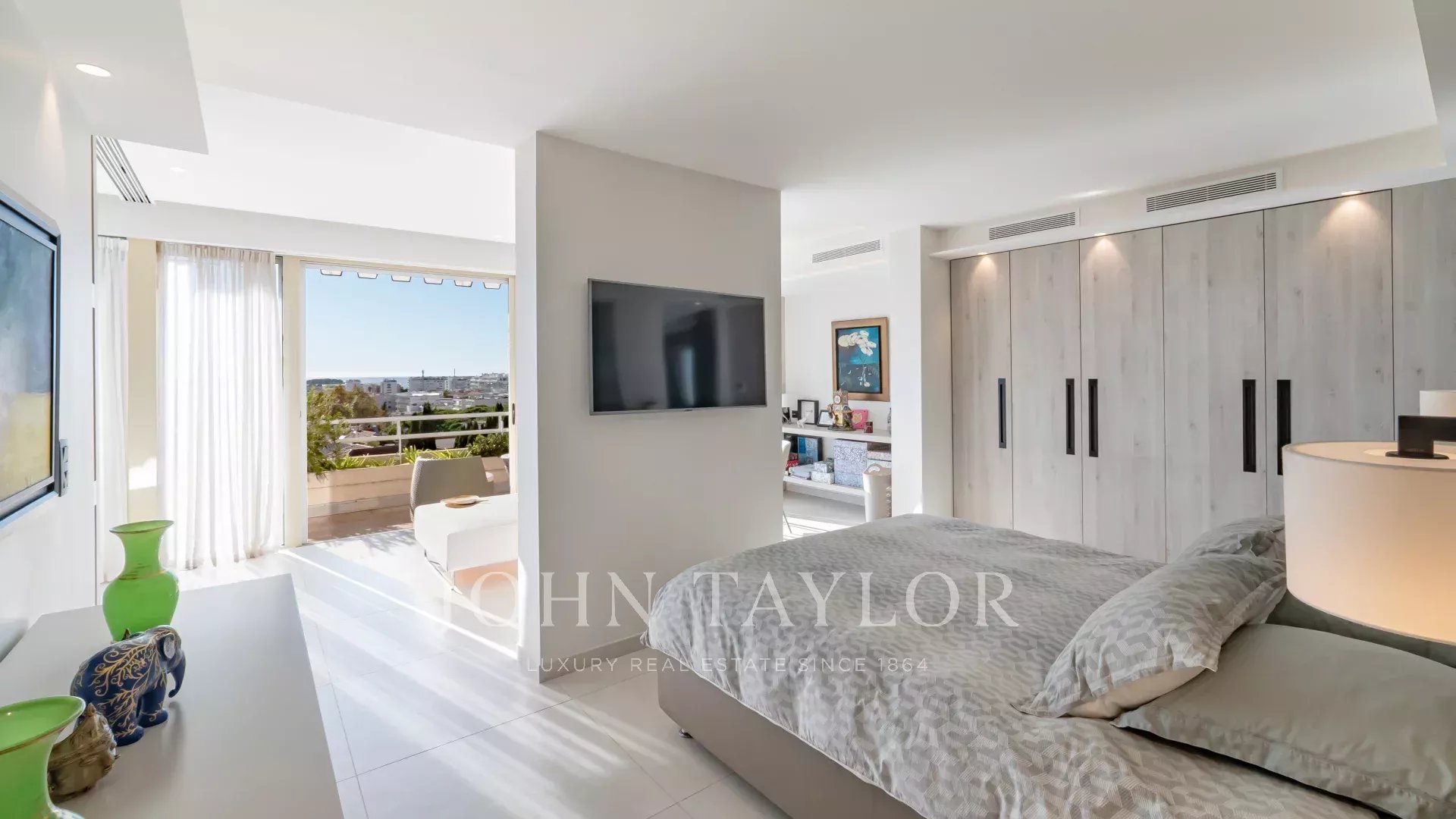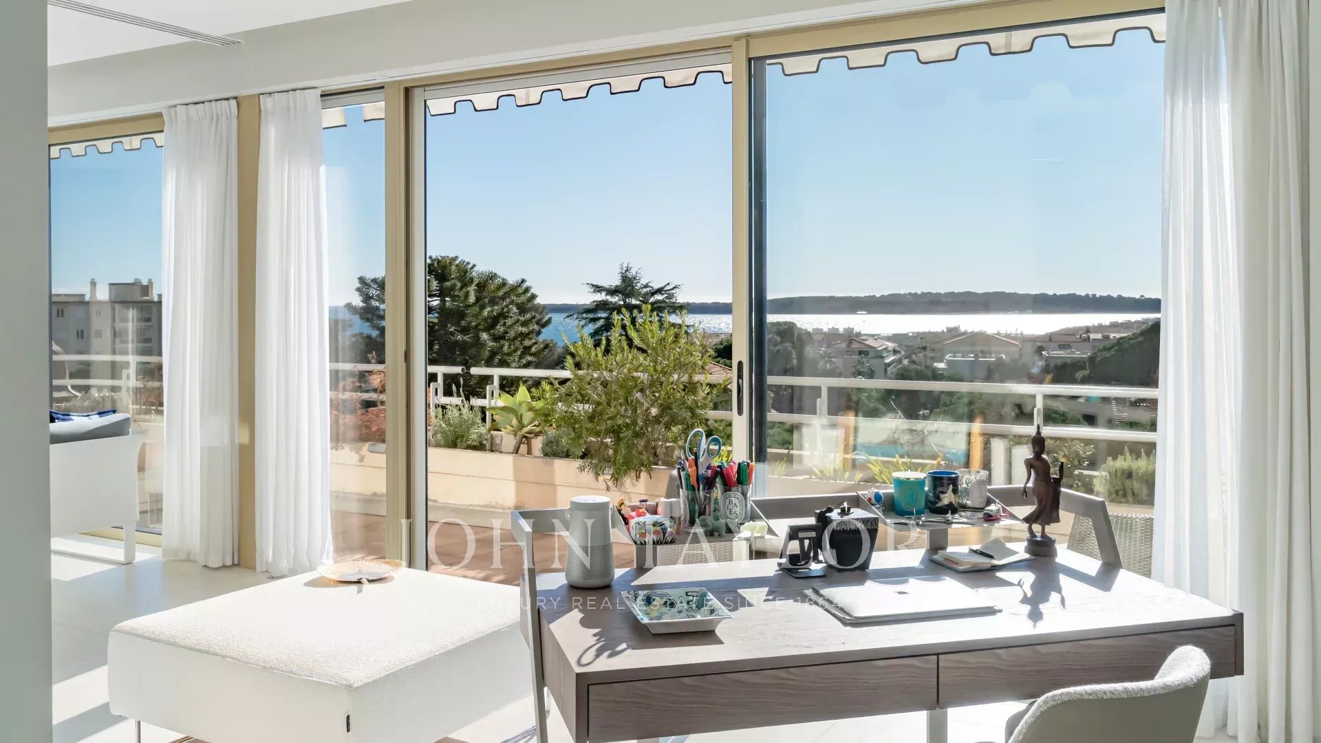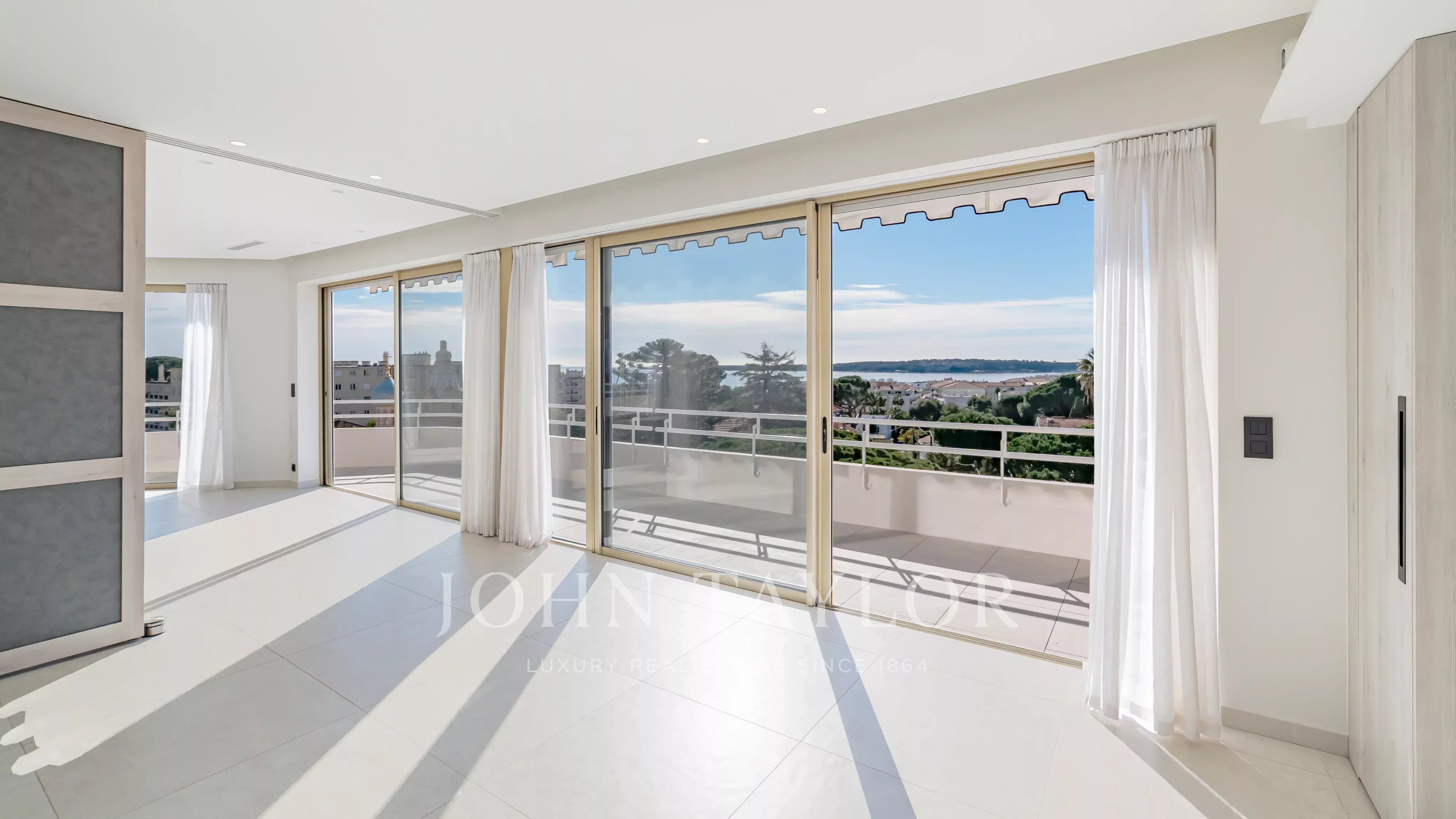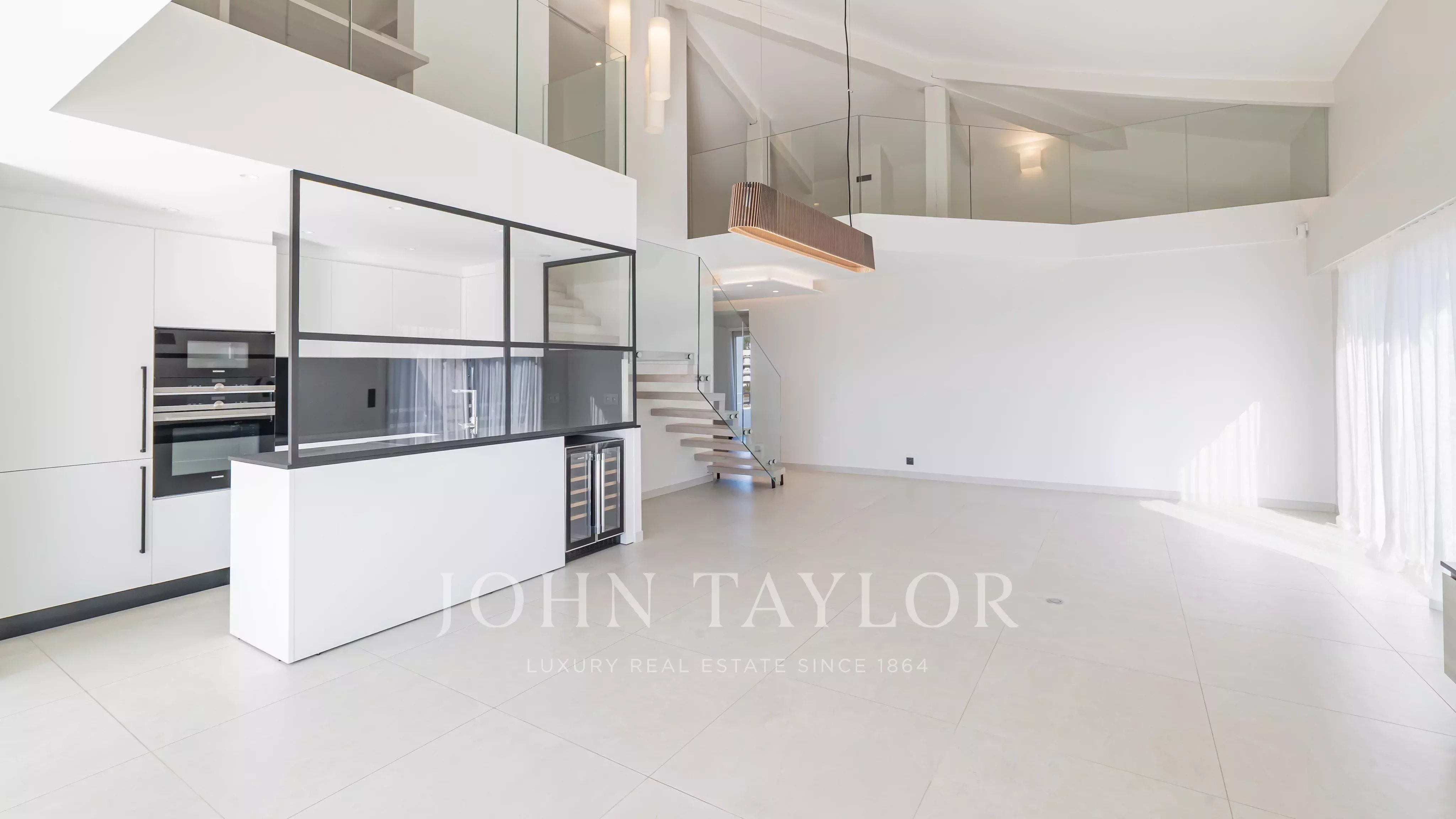 Magnifique penthouse en duplex, entièrement rénové, situé à distance de marche de la Croisette et des commerces, et offrant une très belle vue sur la mer et les îles de Lérins.