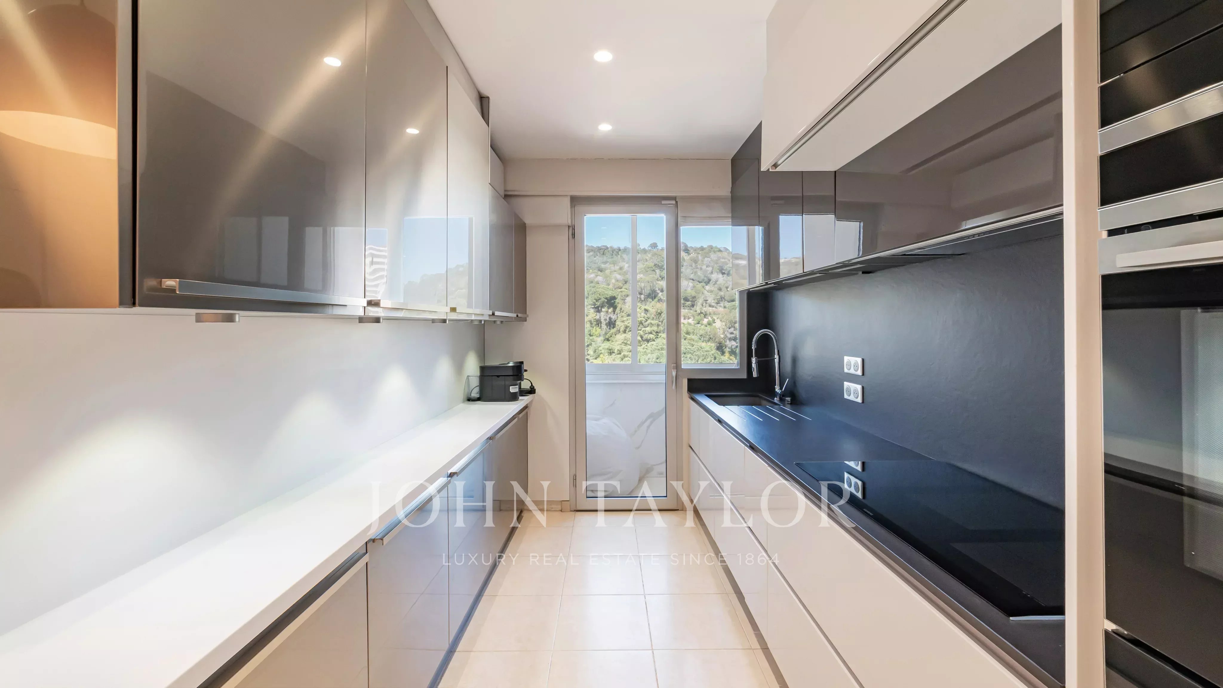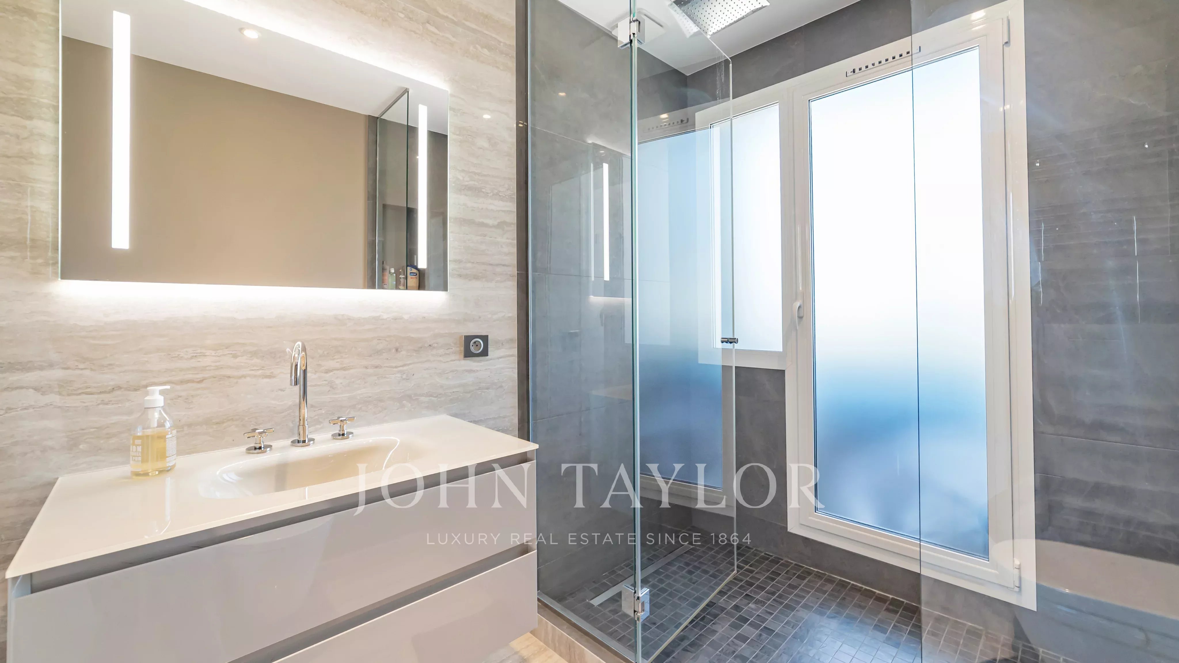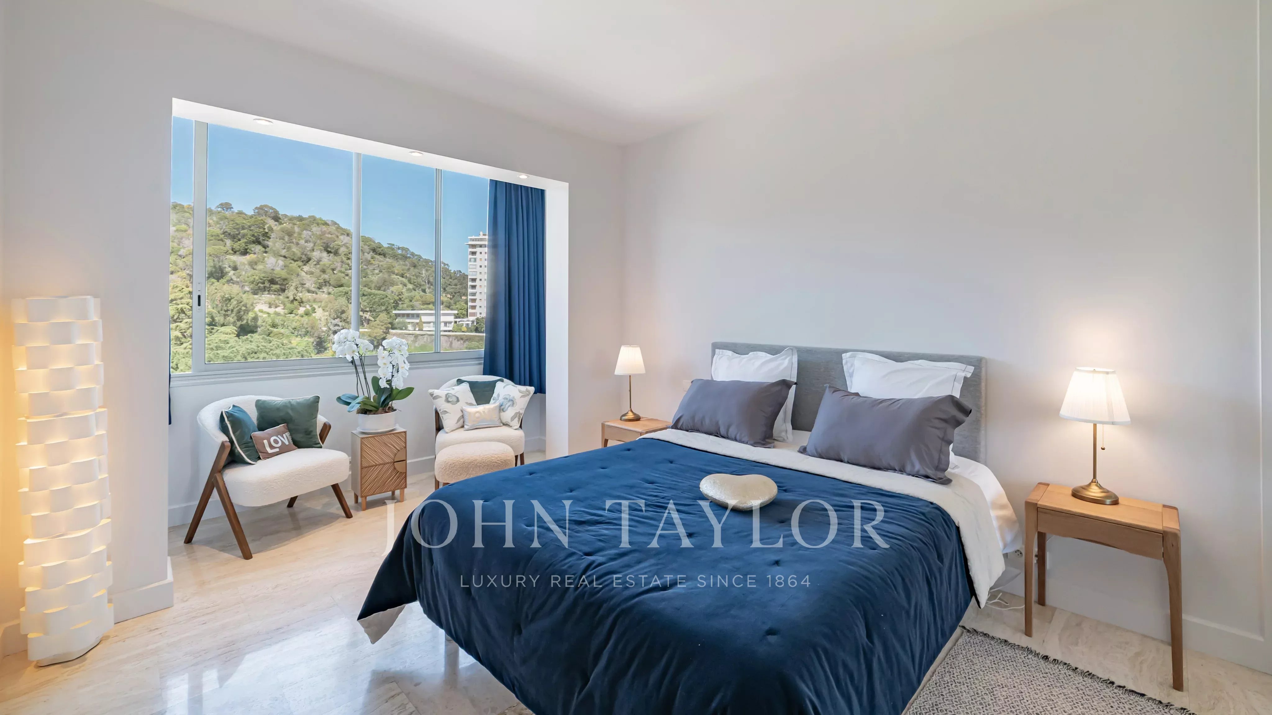 Unique à l’étage, avec un ascenseur privatif desservant directement l’appartement, il se compose de quatre chambres, dont deux avec vue panoramique mer et salle d’eau en suite, d’un vaste double séjour et d’une cuisine séparée.