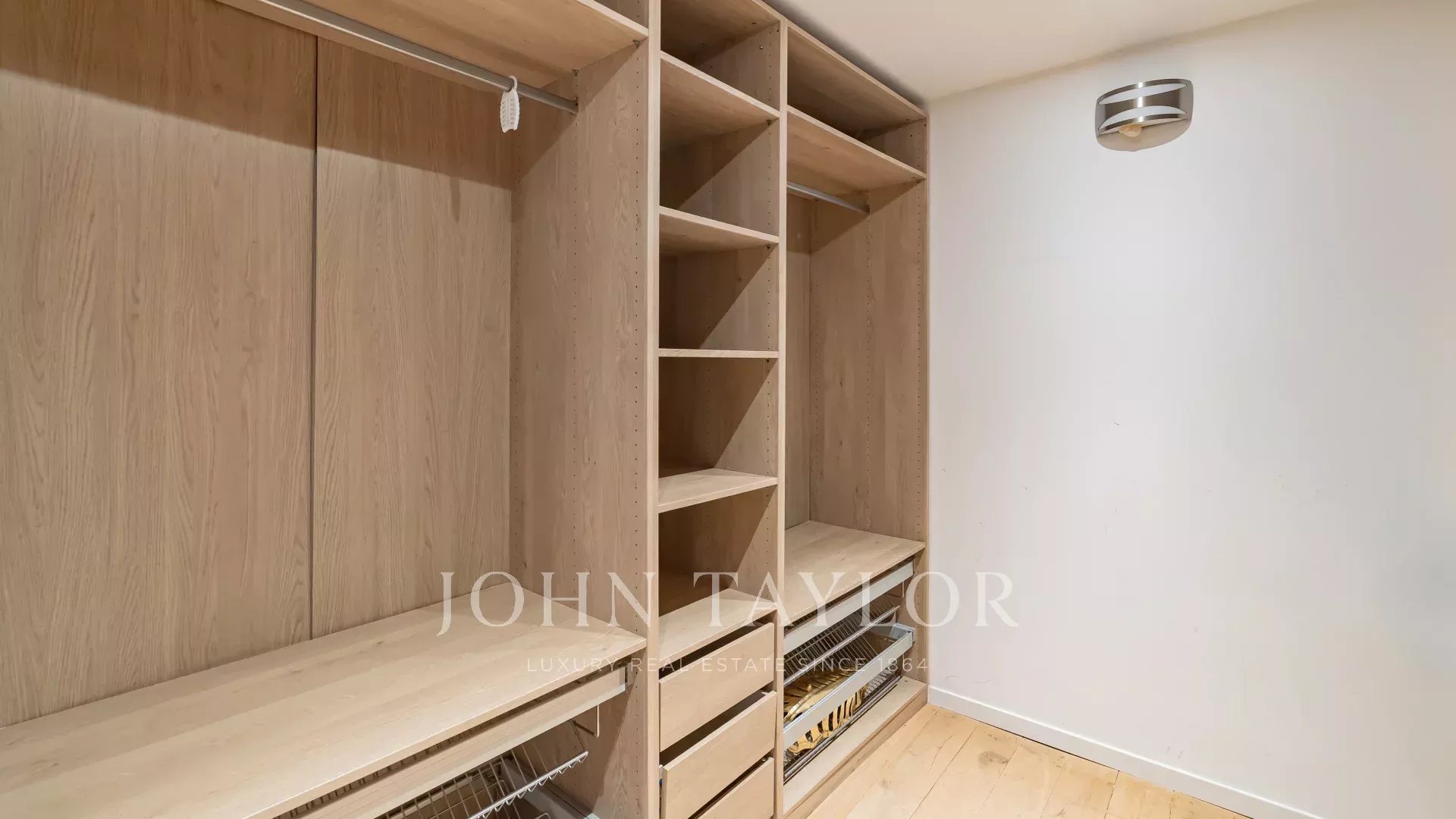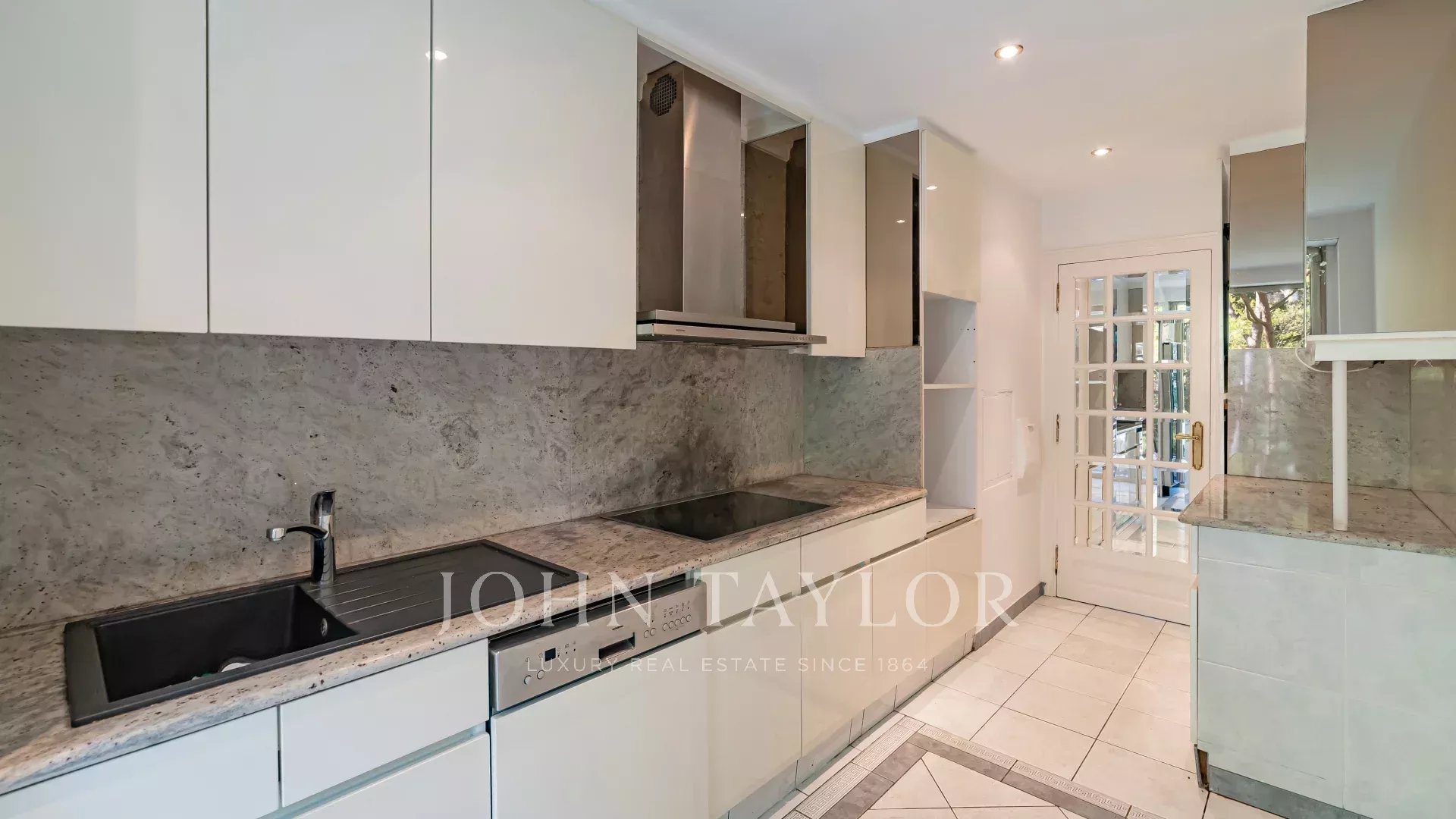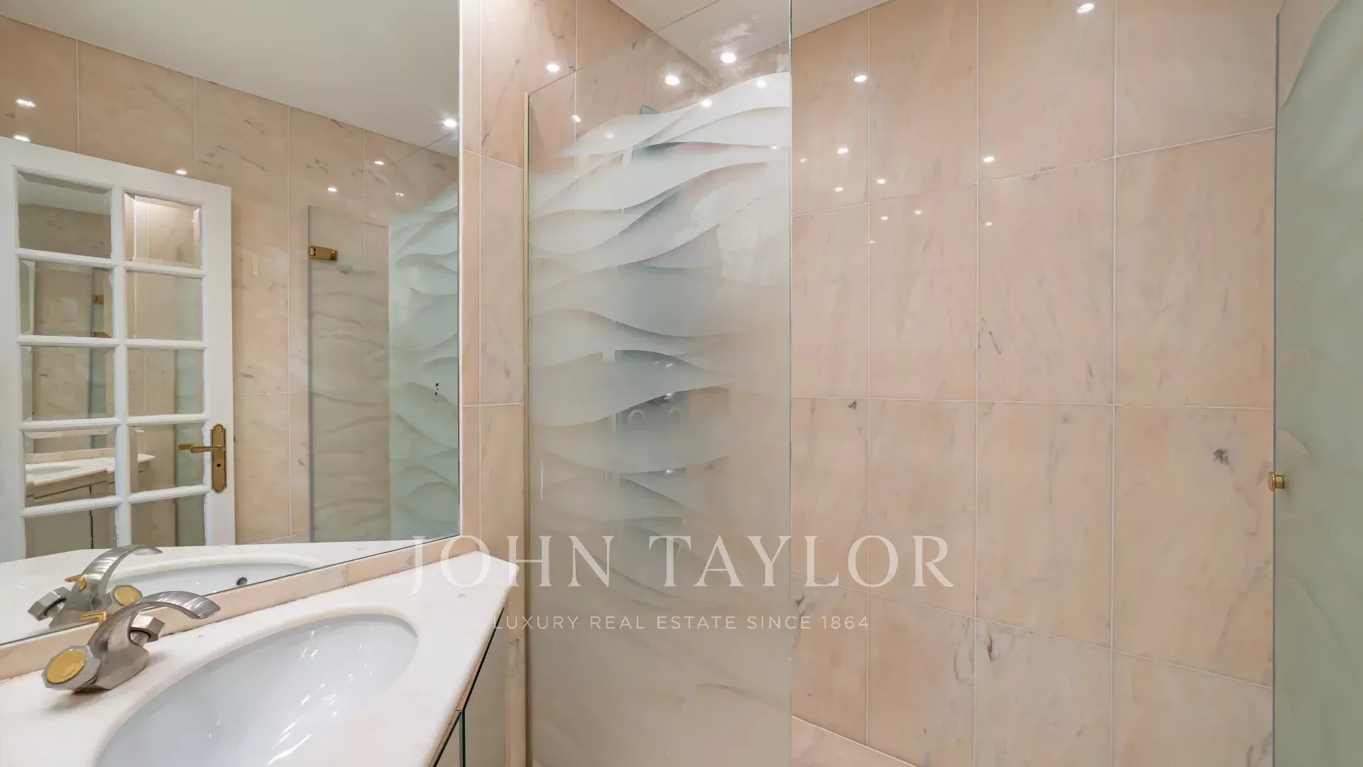 Cet élégant appartement comprend un vaste double salon (création très facile d'une 3ème chambre selon besoin), une cuisine séparée entièrement équipée, deux chambres spacieuses et deux salles de bains. Vous profiterez d'une agréable terrasse de 15 m², exposée sud-ouest.