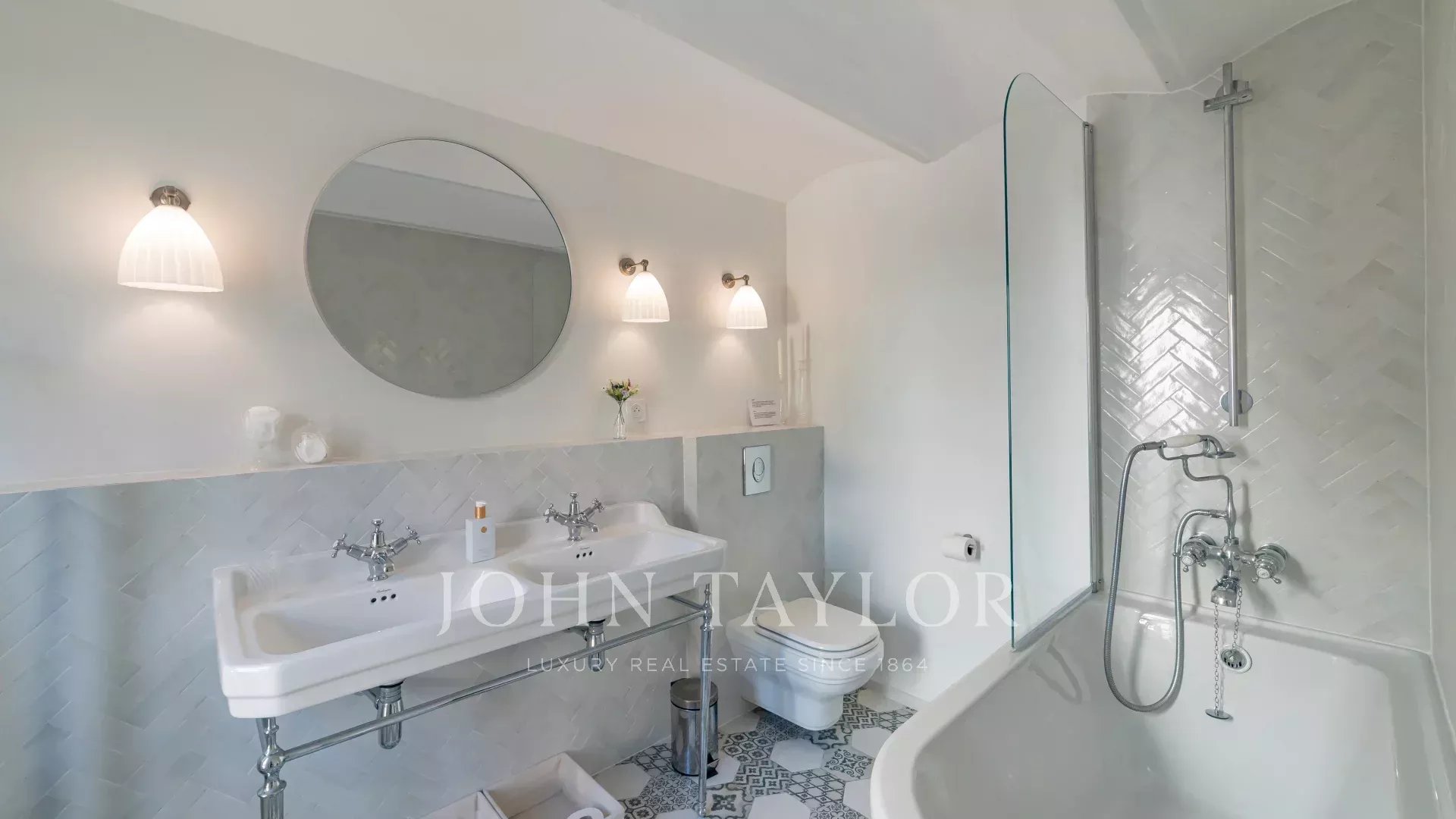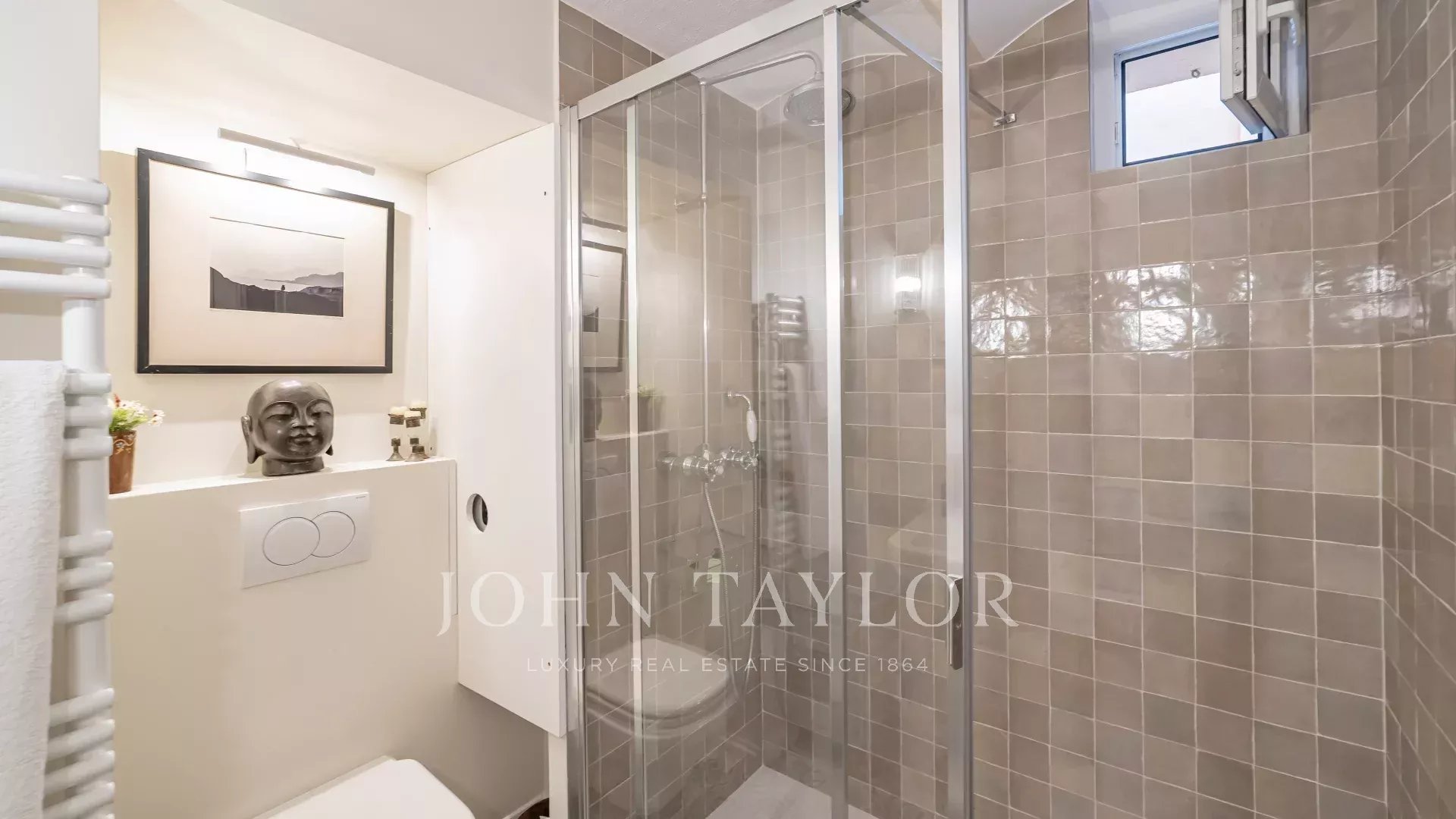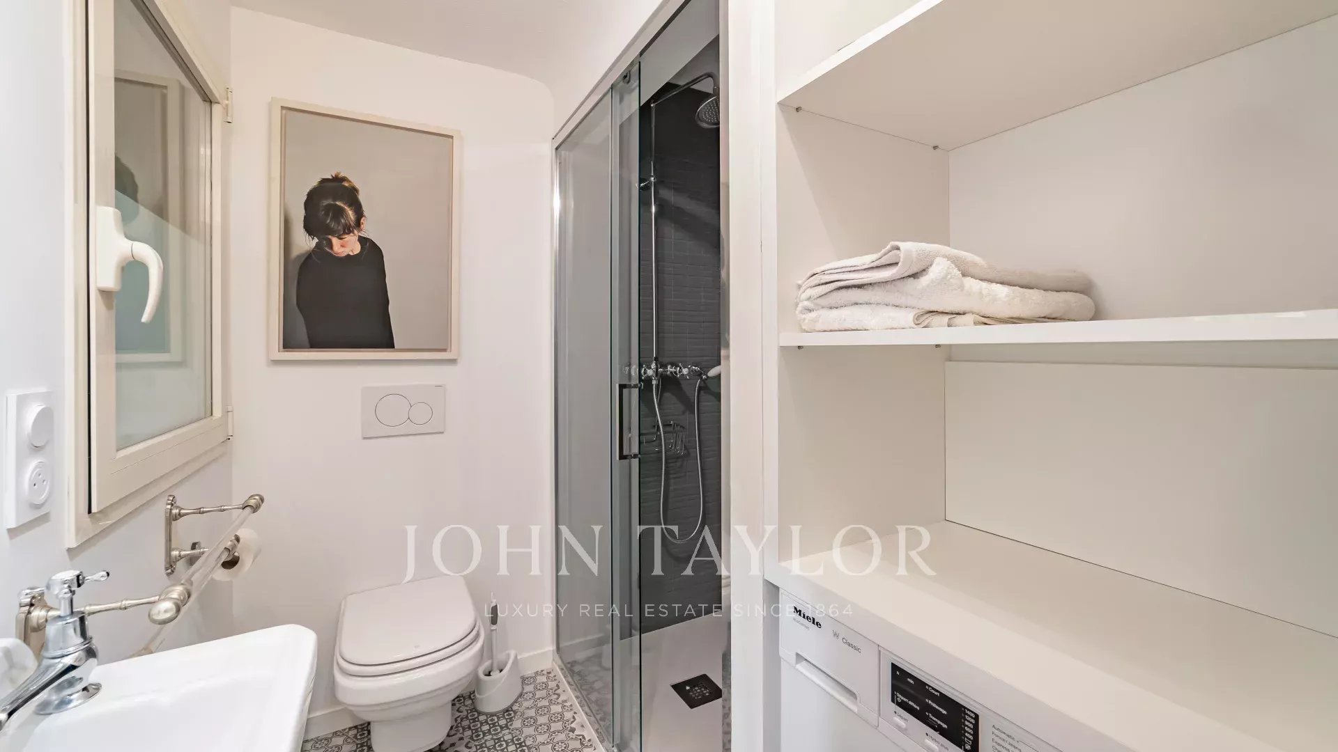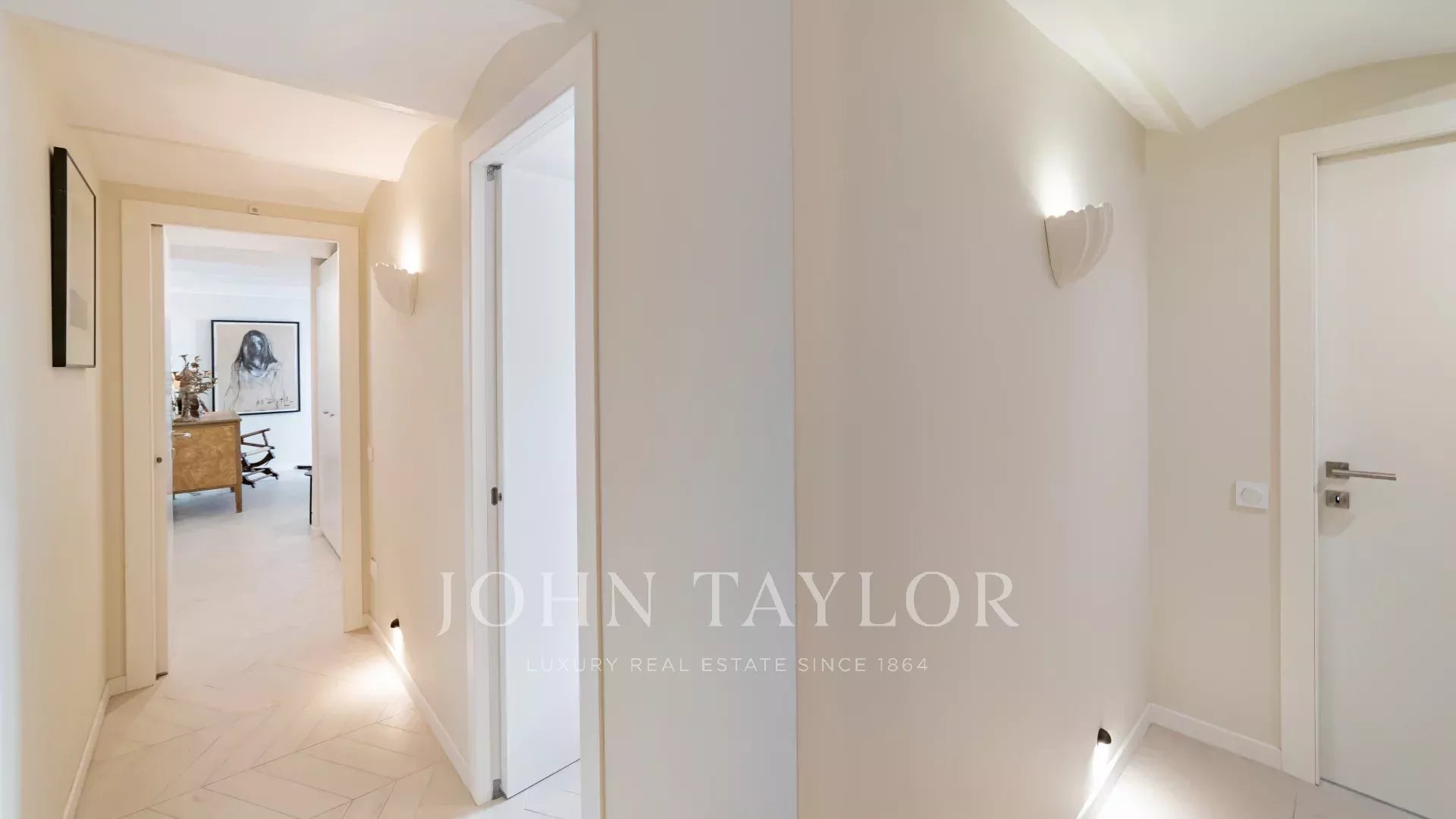 Magnifique appartement entièrement rénové avec goût comprenant un séjour lumineux avec cheminée et cuisine américaine équipée, trois chambres et trois salles de bains.