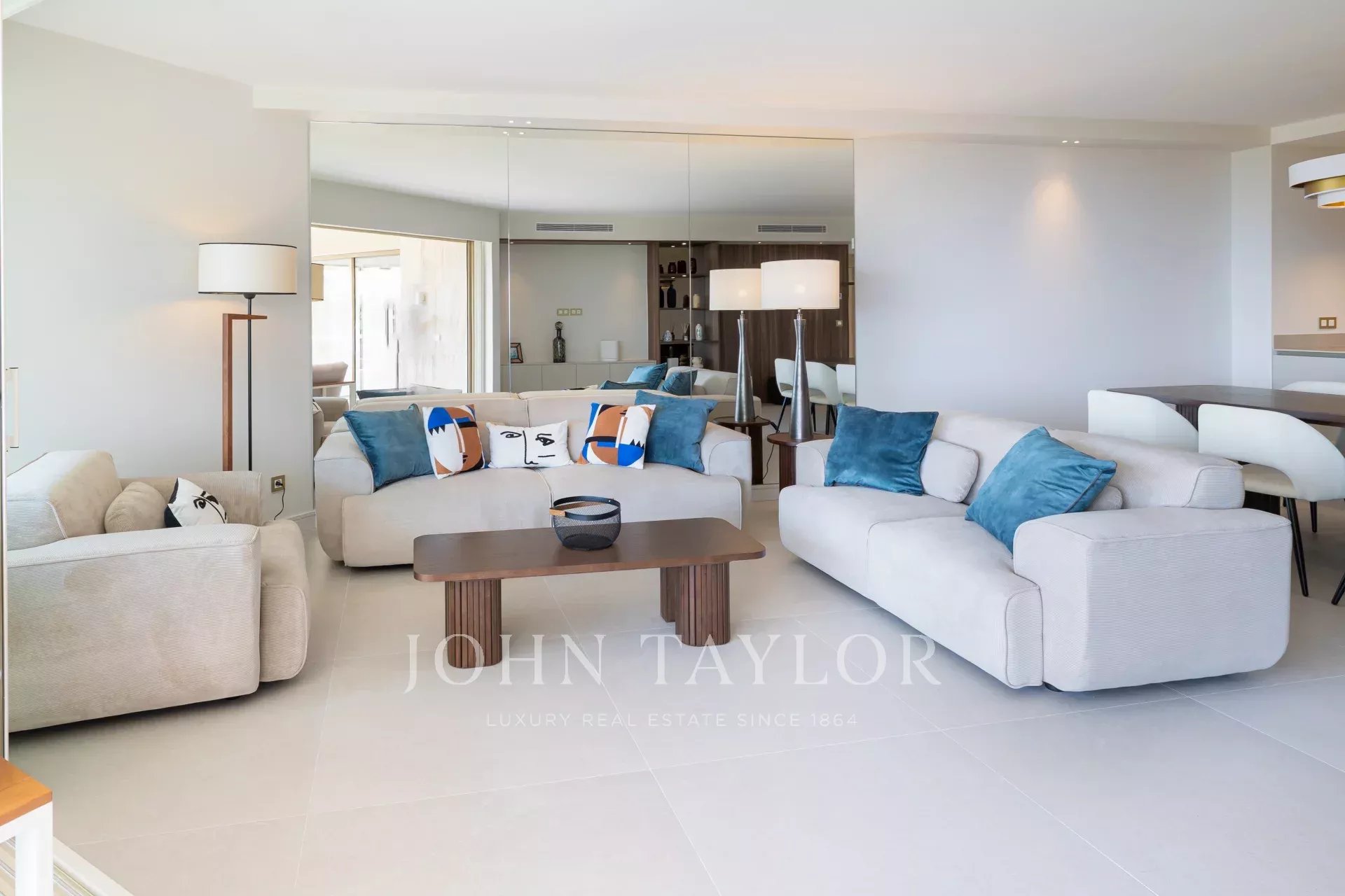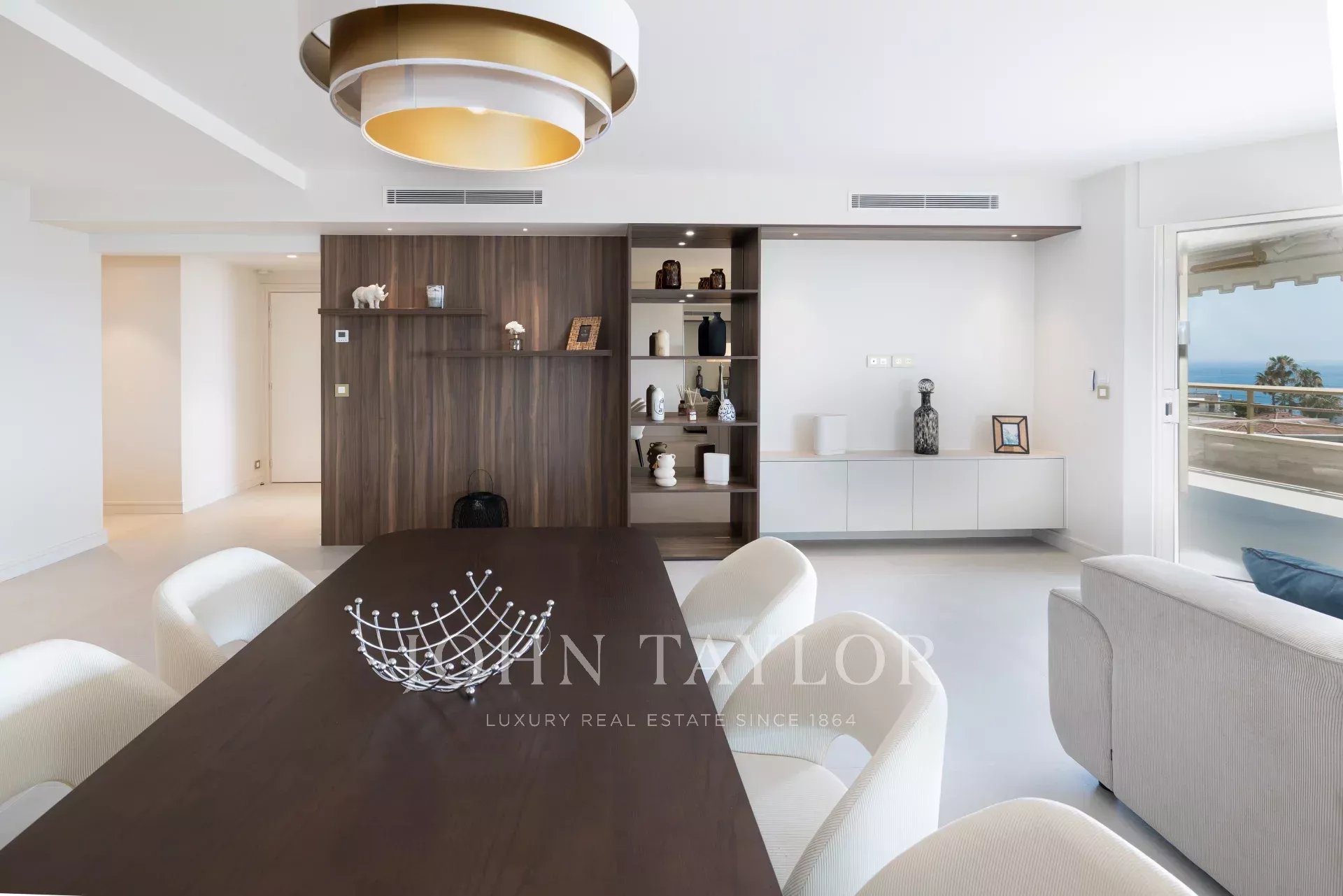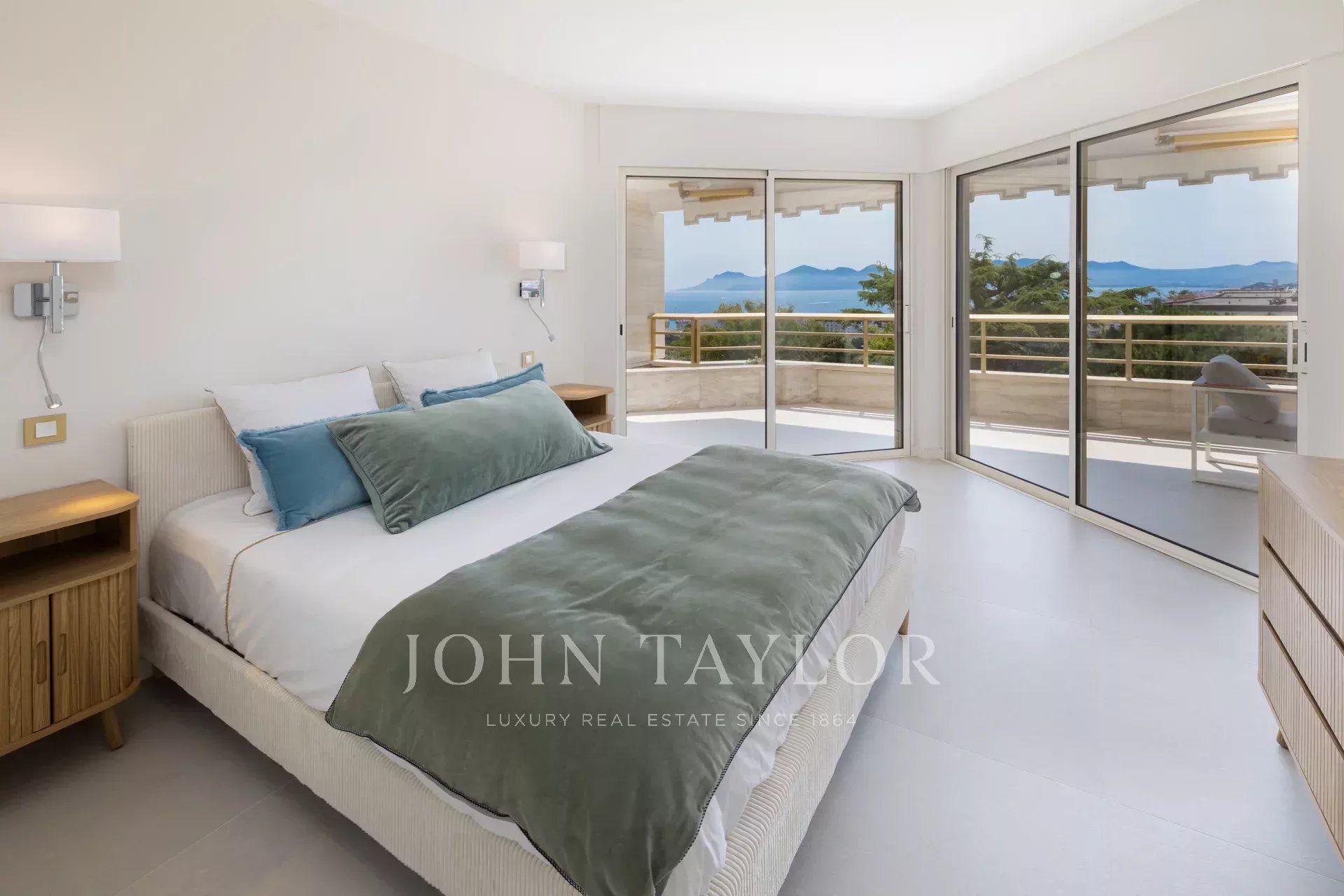 Dans une copropriété de grand standing avec piscine et jardin, ce très bel appartement d'environ 130 m² traversant en étage élevé, dispose d'une vue mer panoramique jusqu'à la pointe Palm Beach et l'Estérel.