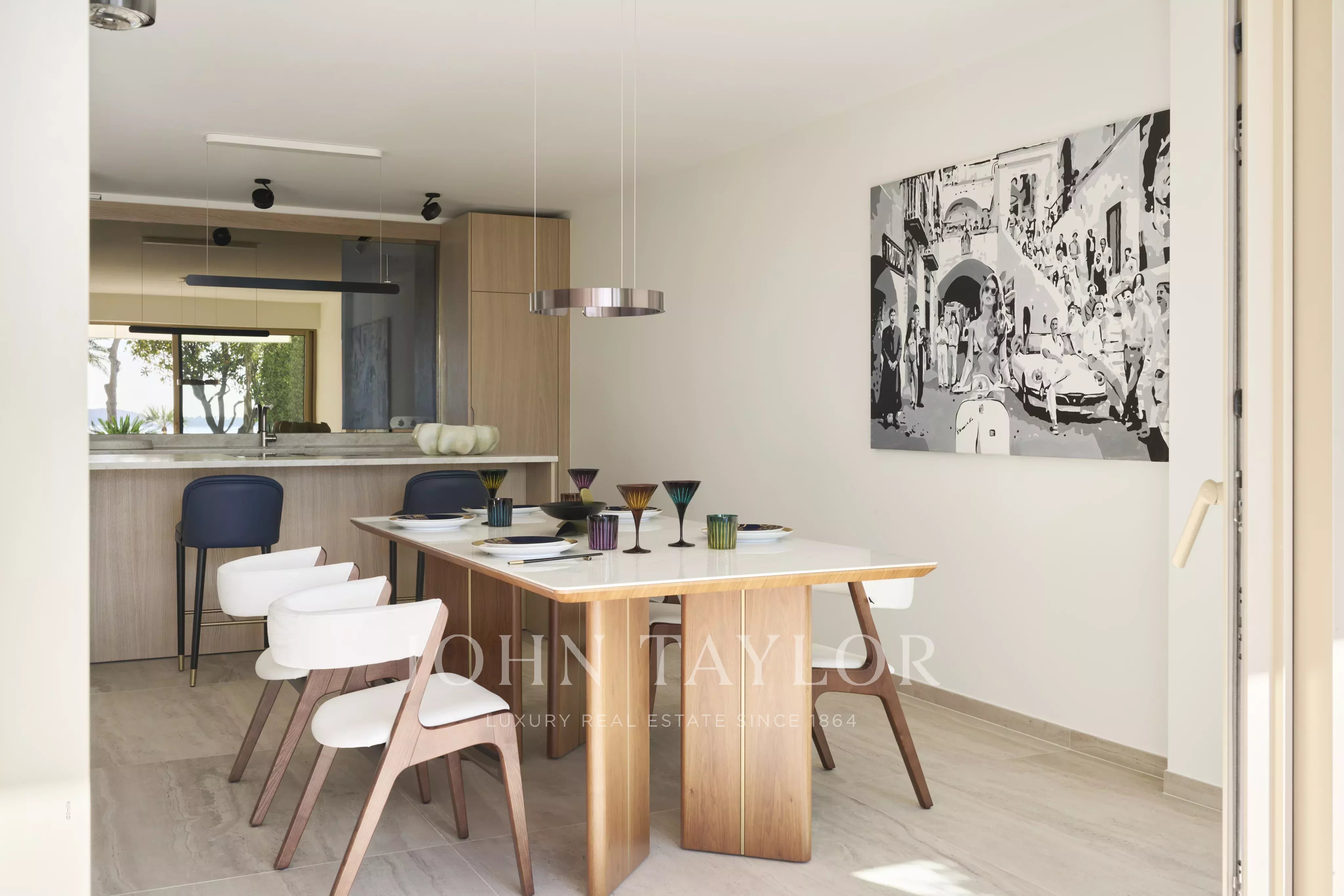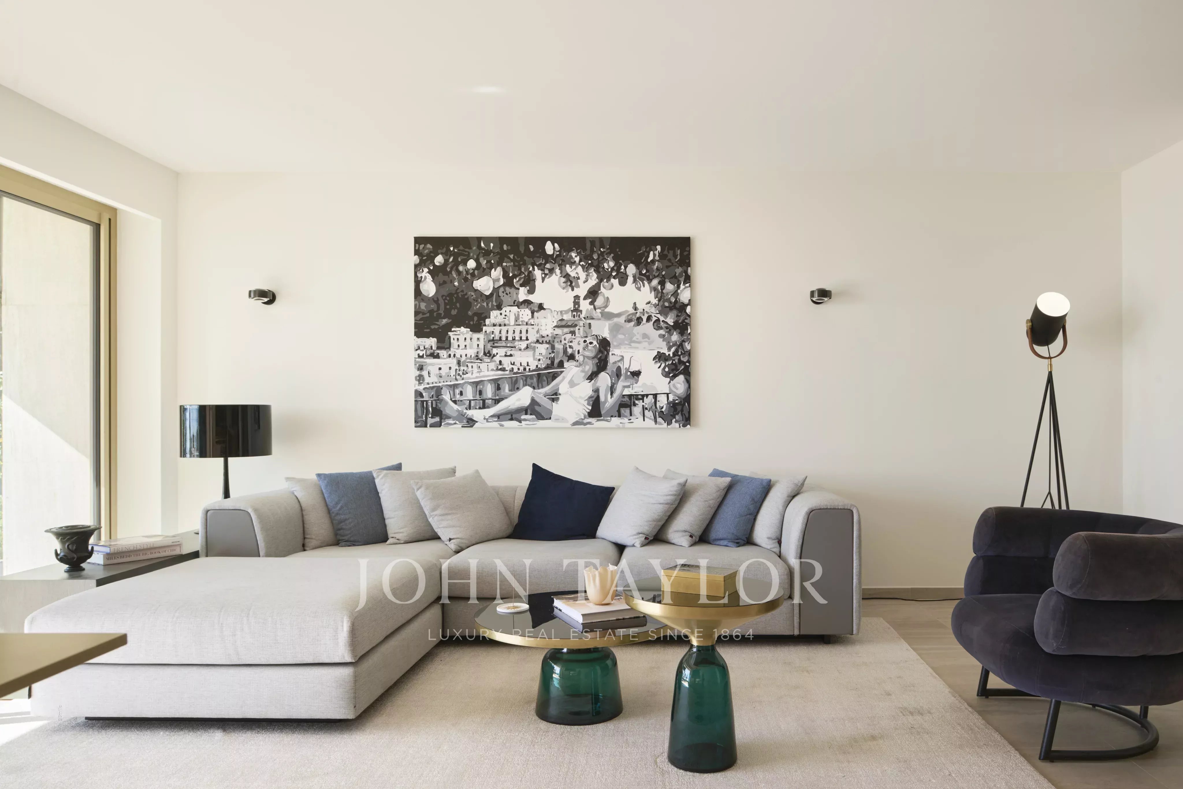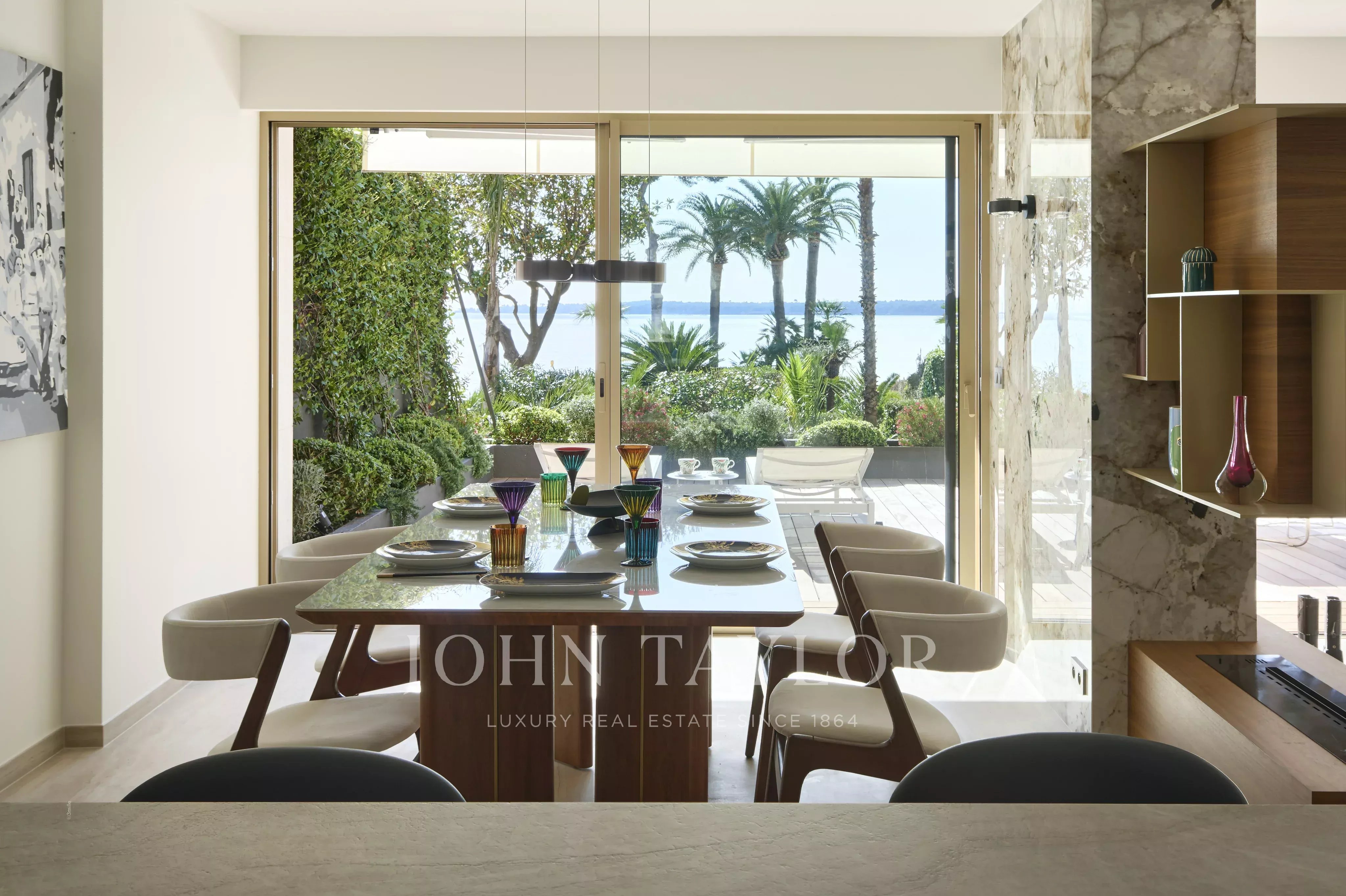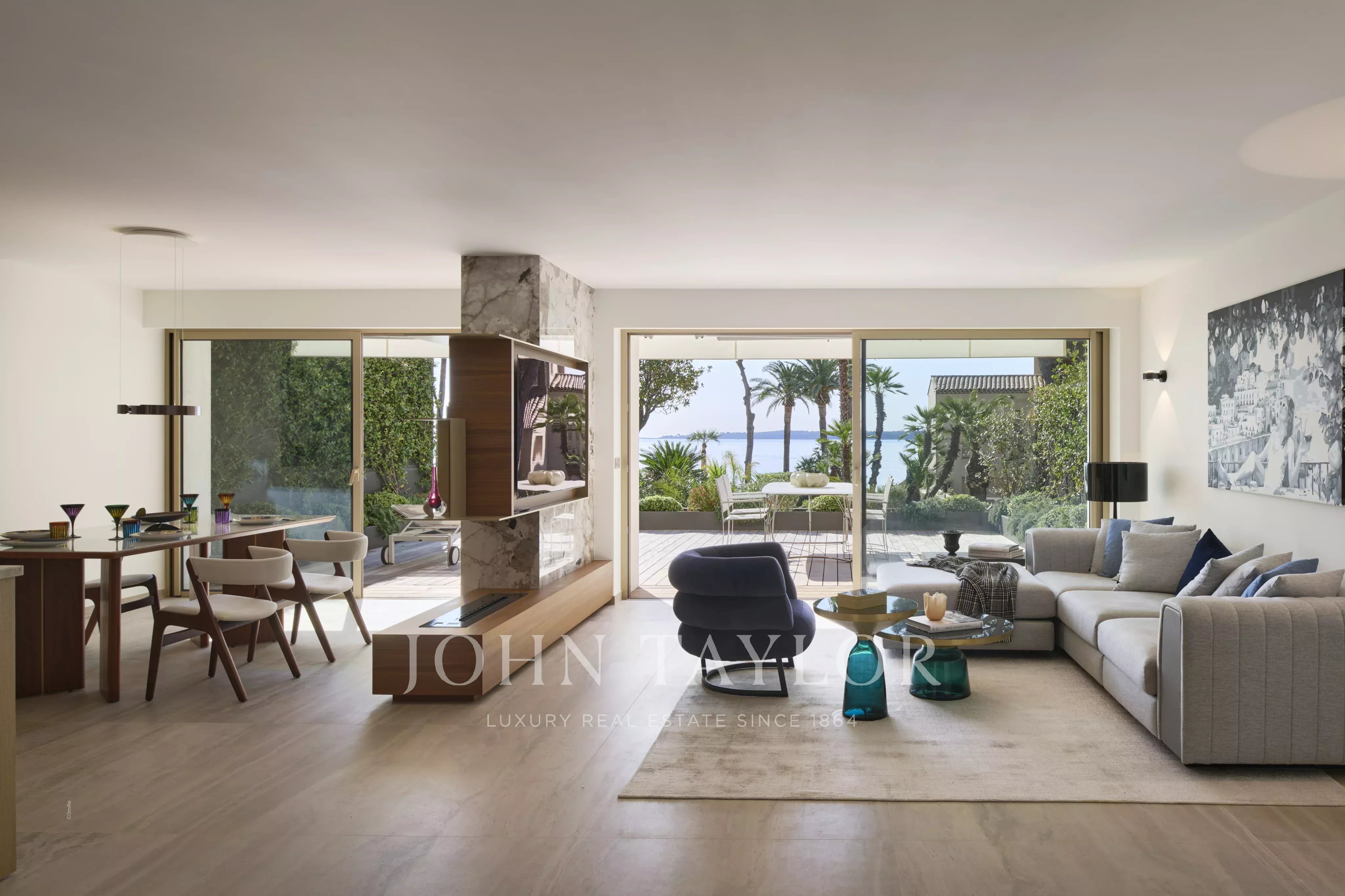 Face à la mer, ce somptueux appartement de 104 m² bénéficie d'une grande terrasse ensoleillée de 46 m² offrant une vue exceptionnelle sur la mer et les îles de Lérins.