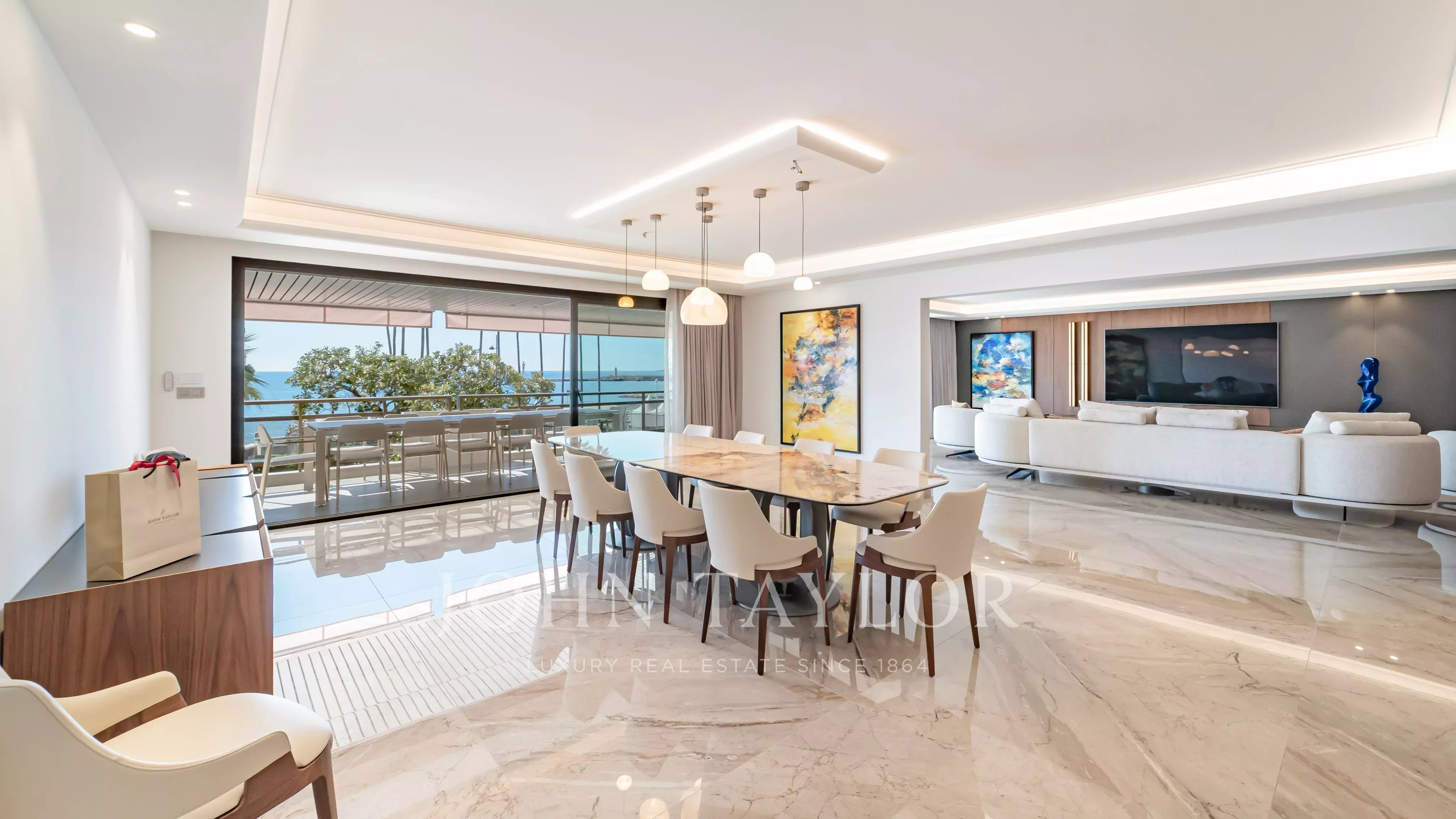 Situé au sein de l’une des résidences les plus prestigieuses de la Croisette, à quelques pas du Palais des Festivals et de l’Hôtel Majestic, ce somptueux appartement contemporain d’environ 300 m² offre un cadre de vie d’exception.