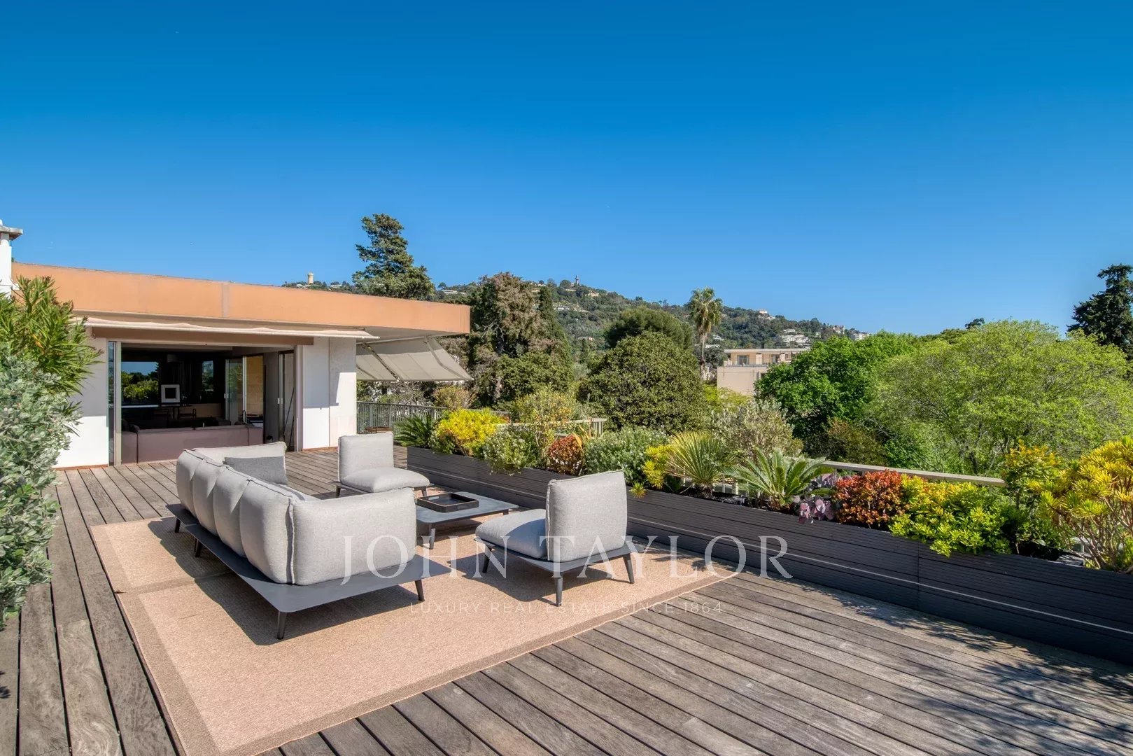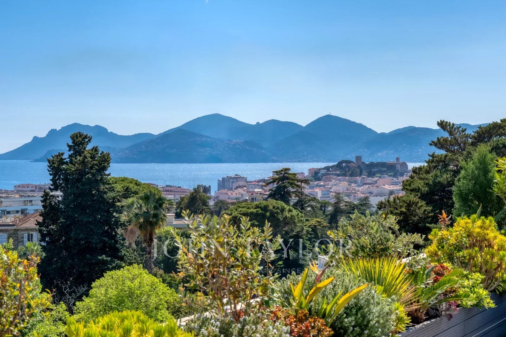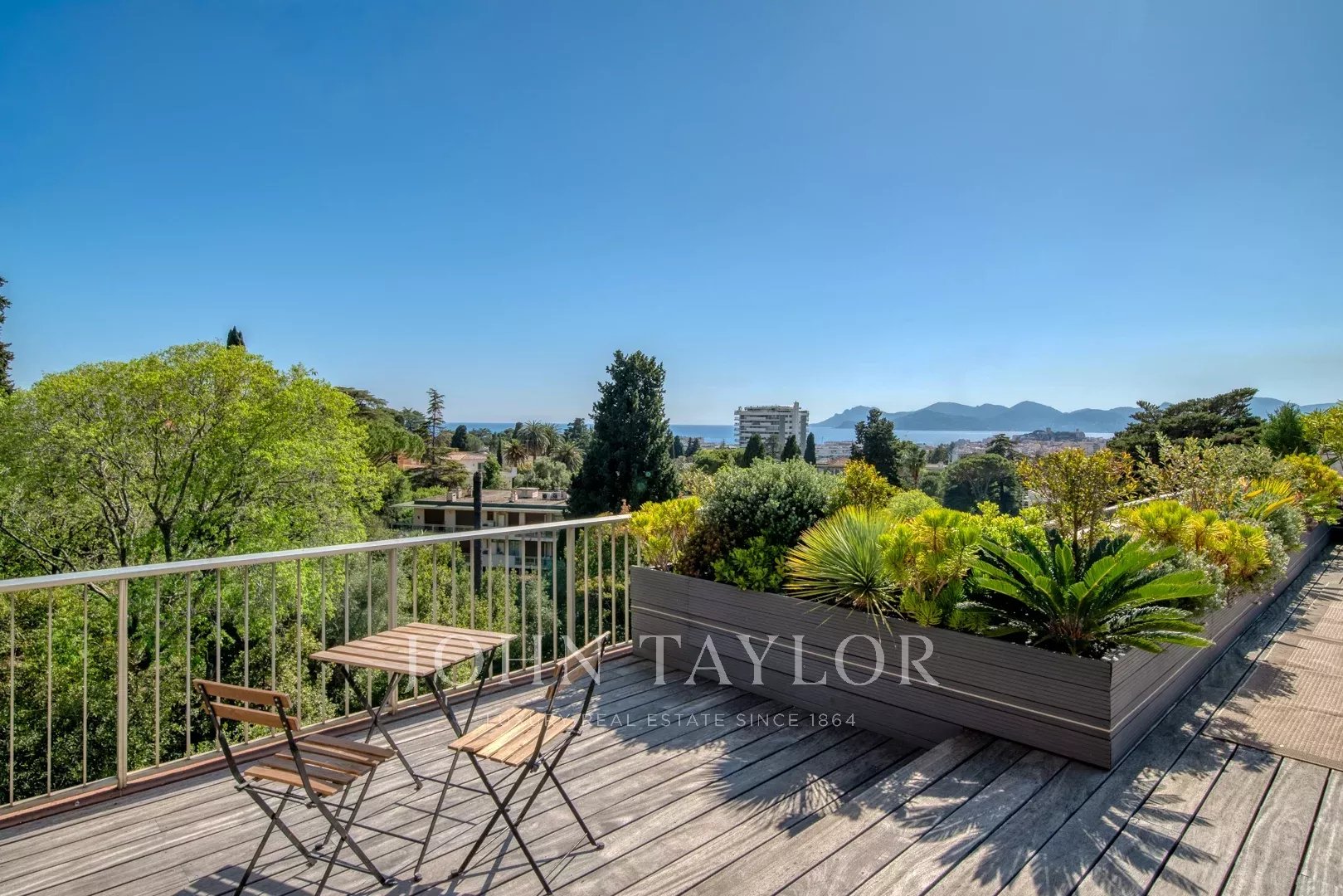 Sa spacieuse terrasse aménagée dévoile une vue panoramique exceptionnelle sur la Baie de Cannes, le Le Suquet ainsi que le Massif de l’Esterel.