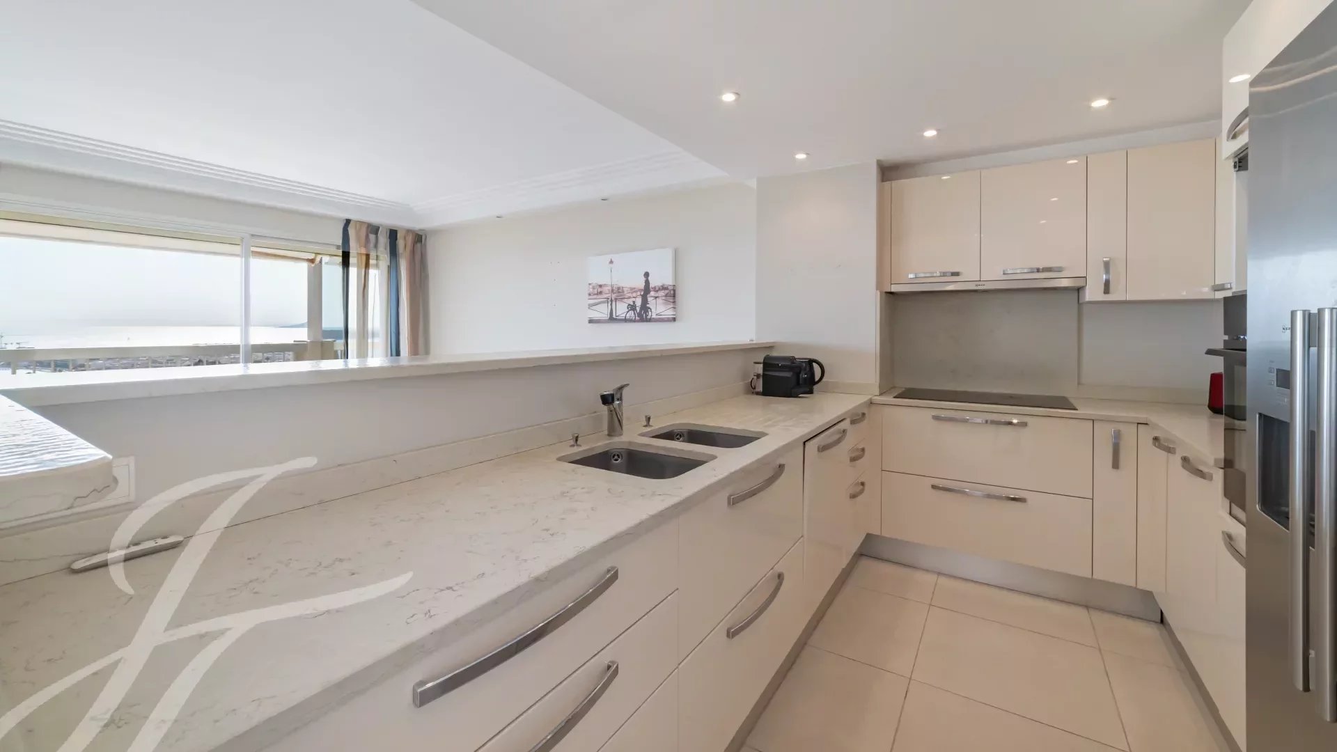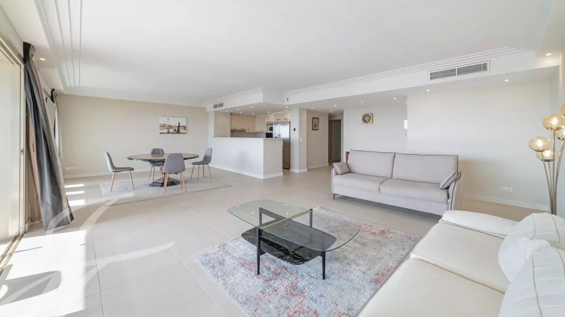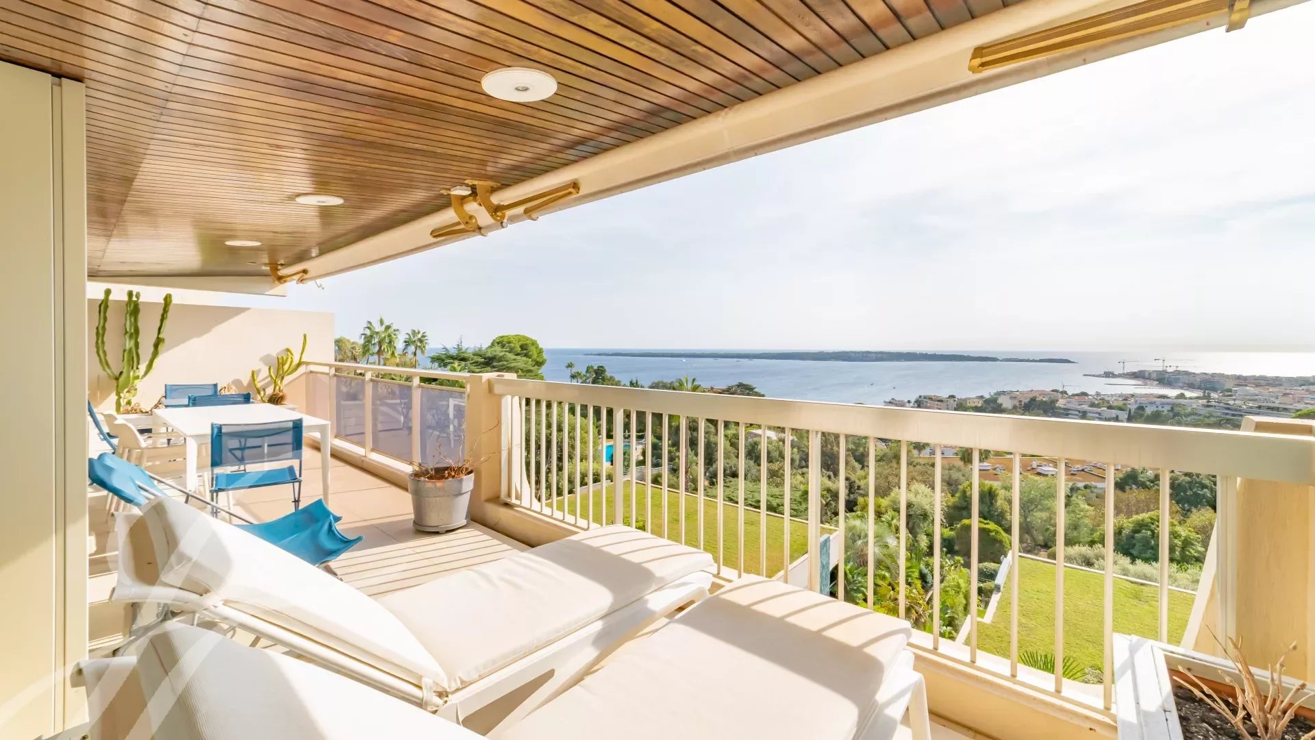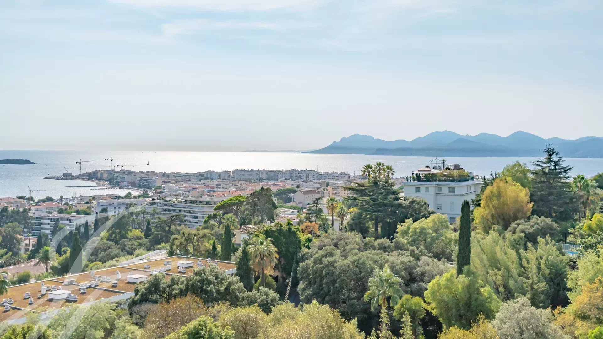 Dans une résidence de standing du prestigieux quartier de la Californie, cet appartement offre un panorama exceptionnel sur la mer, les îles de Lérins et la baie de Cannes.