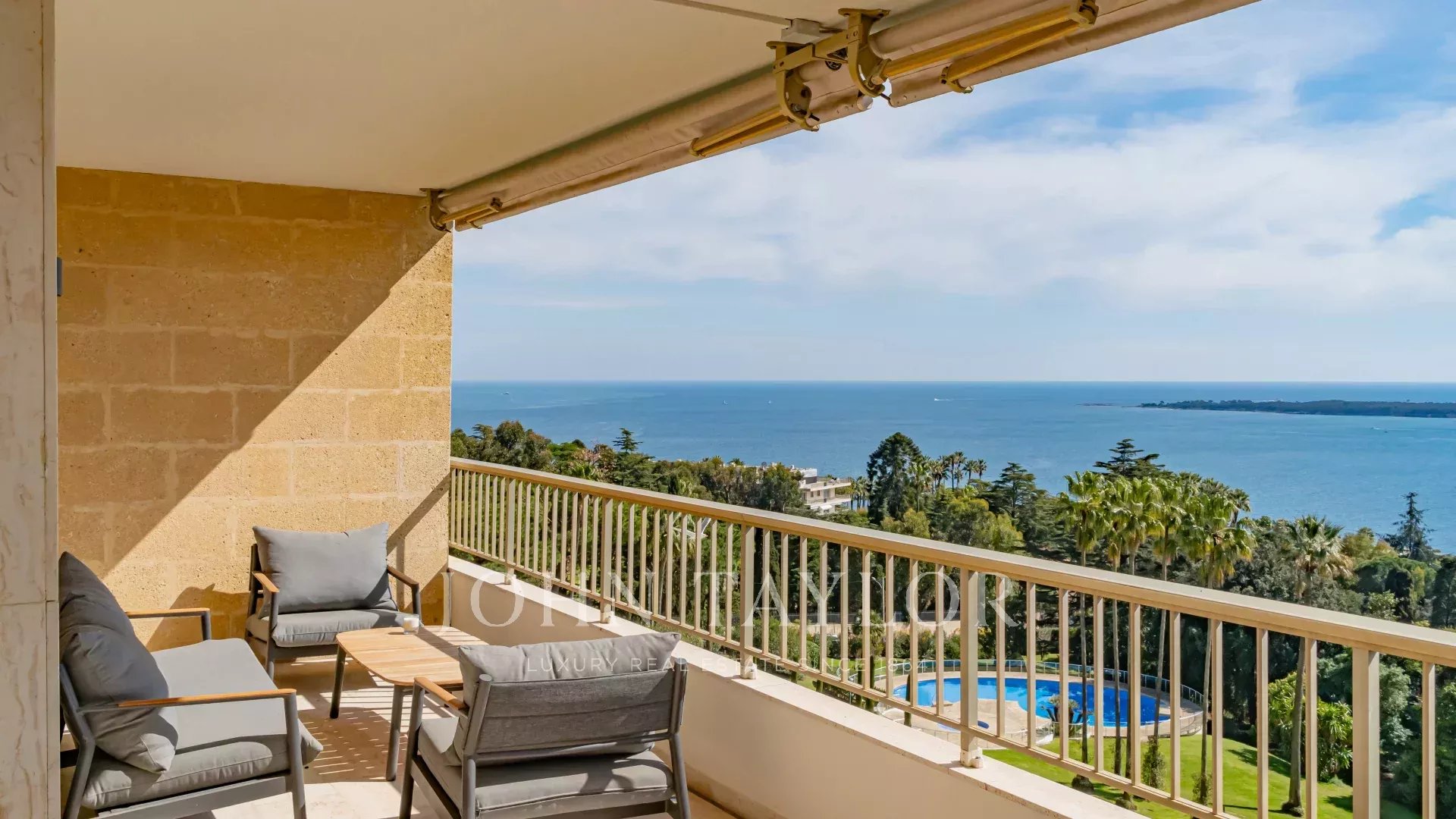 Situé dans l'une des résidences les plus prestigieuses de Californie, ce magnifique appartement entièrement rénové offre une vue panoramique splendide sur la mer, des îles de Lérins jusqu'au massif de l'Estérel.