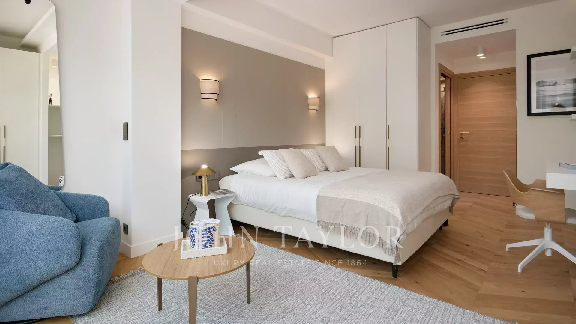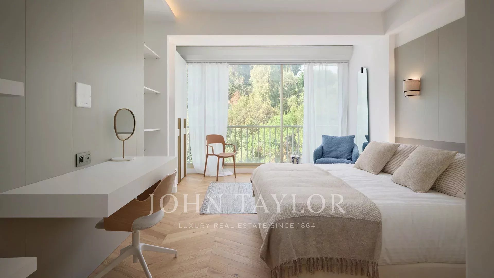 Ce bel appartement de 4 pièces en étage élevé bénéficie d’une magnifique vue sur la mer, les îles de Lérins et le massif de l’Estérel.