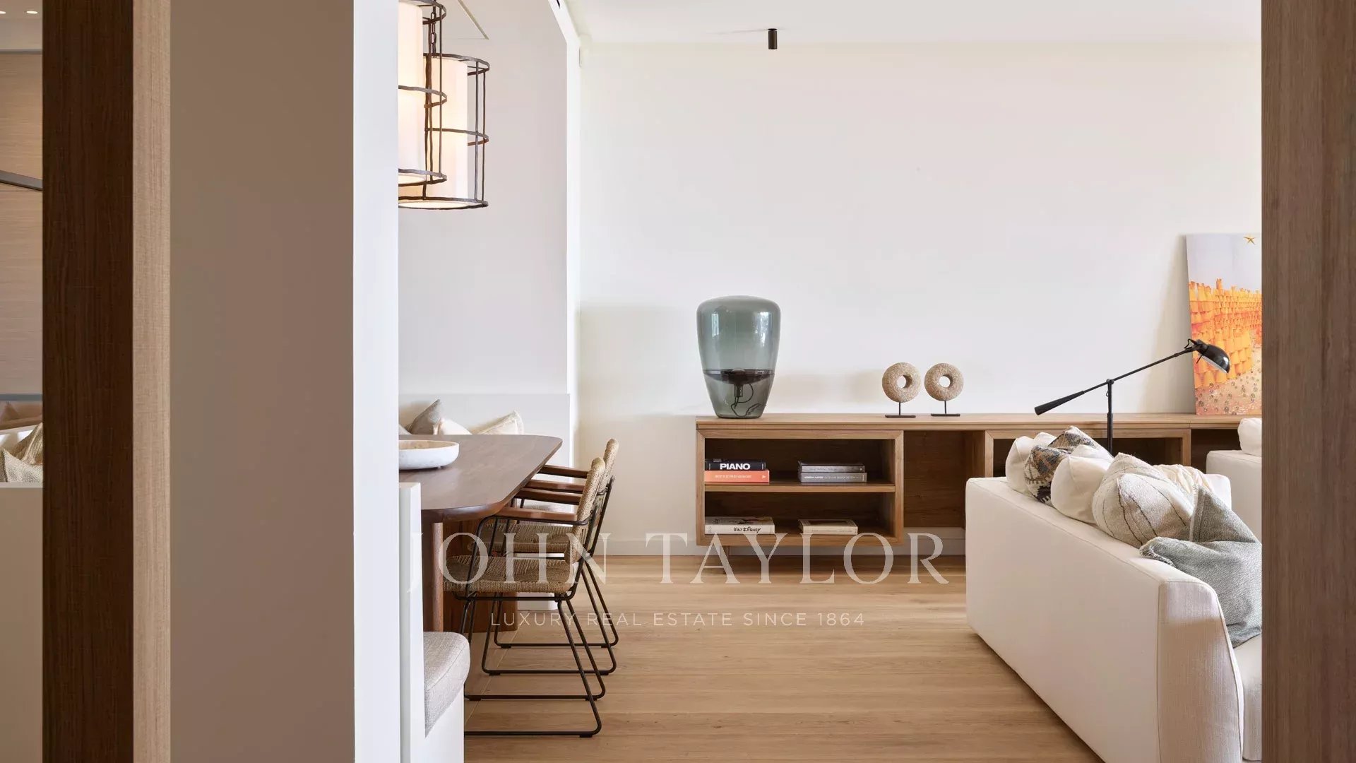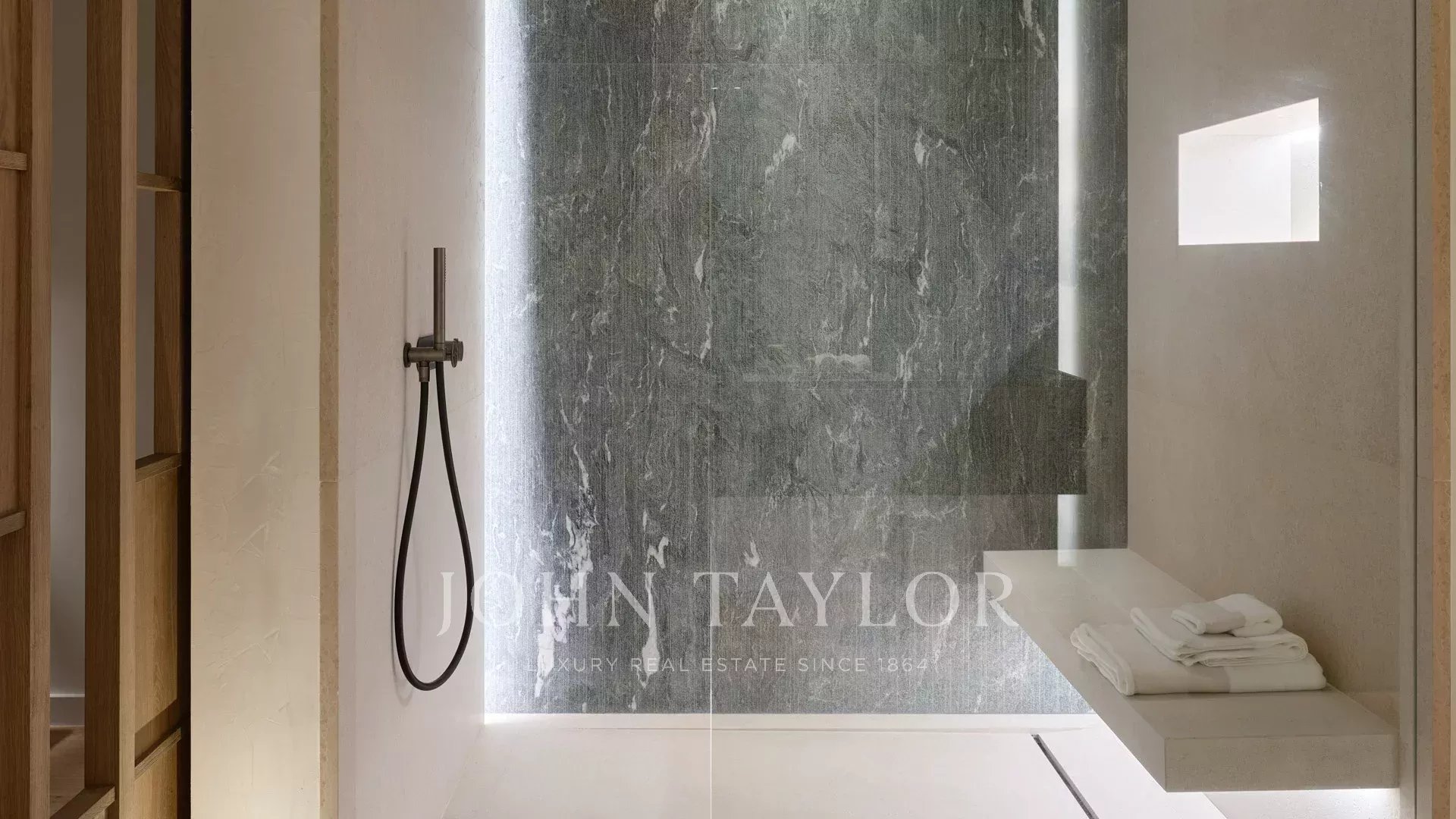 Ce bien d'exception bénéficie d'une superbe terrasse de 60 m², offrant une vue imprenable sur la Méditerranée et les îles de Lérins. Entièrement rénové par un architecte local renommé, avec des matériaux nobles et de la plus haute qualité, l'appartement arbore un style contemporain raffiné et luxueux.