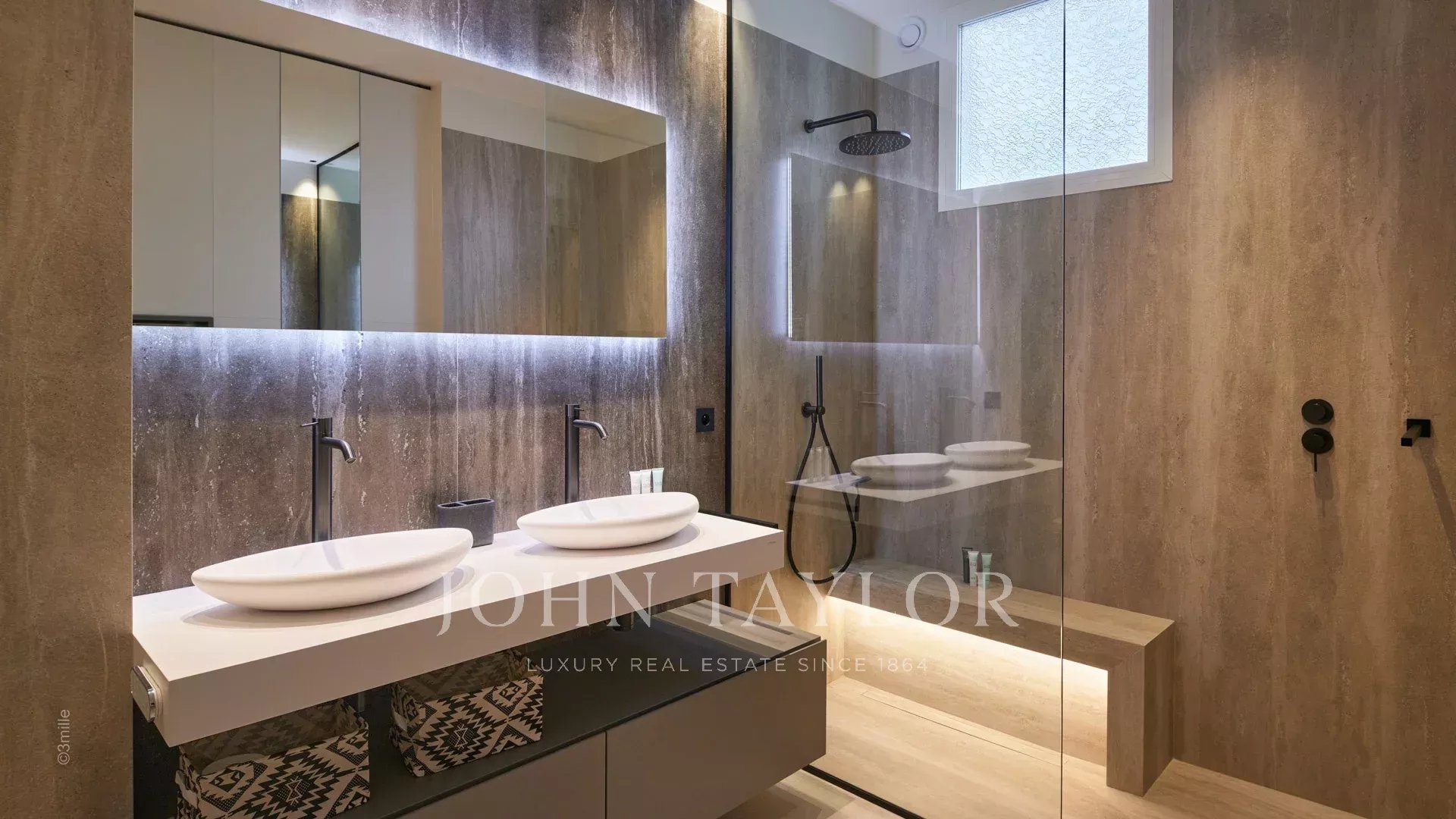 Il comprend une vaste entrée, un salon, une salle à manger, une cuisine entièrement équipée, quatre chambres avec salles d’eau attenantes, des toilettes invités, un bureau, une buanderie, ainsi qu’un dressing de plus de 20 m².