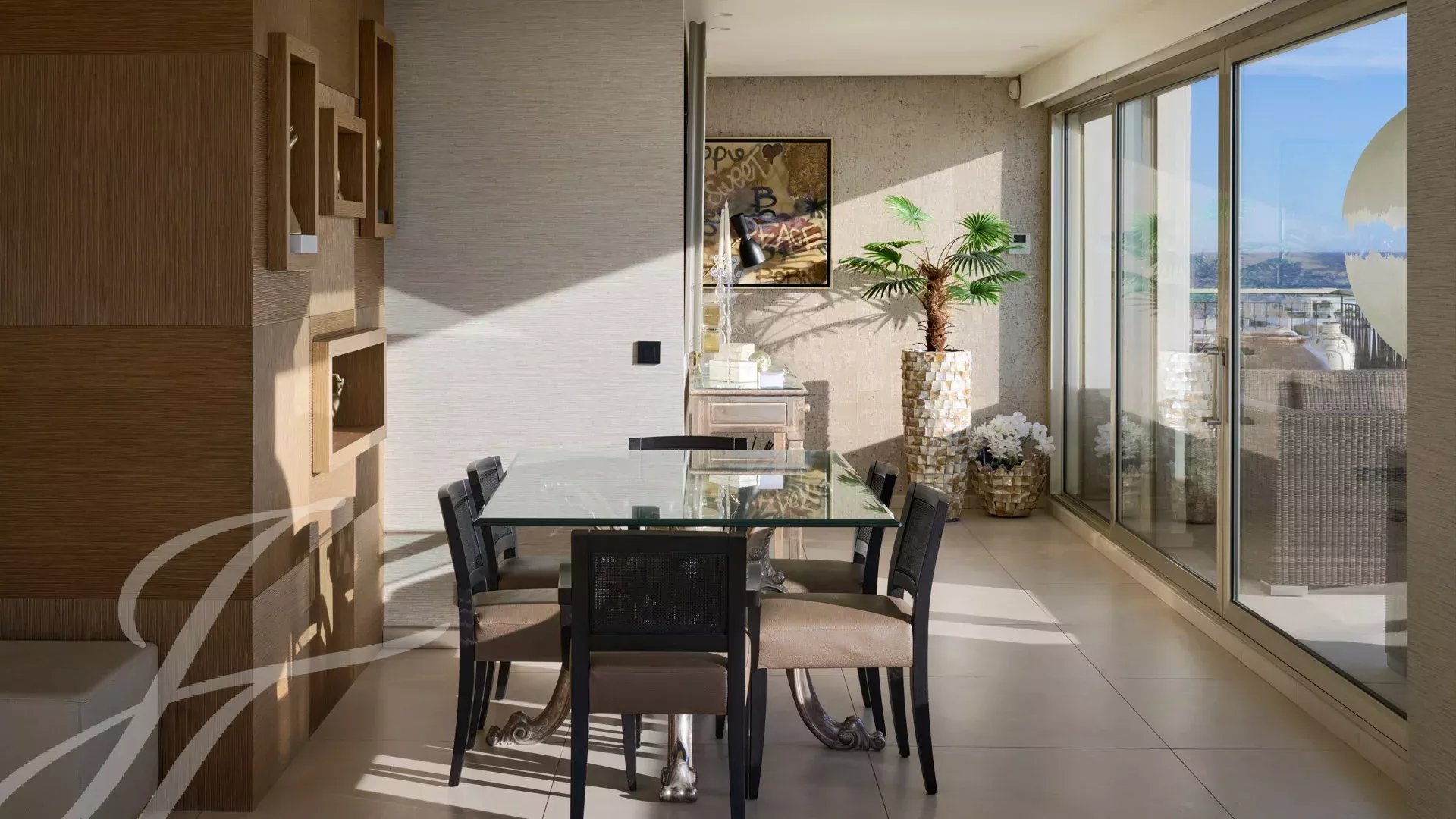 Situé au dernier étage d’une prestigieuse résidence sur la Croisette, ce penthouse unique offre une surface de 158 m².