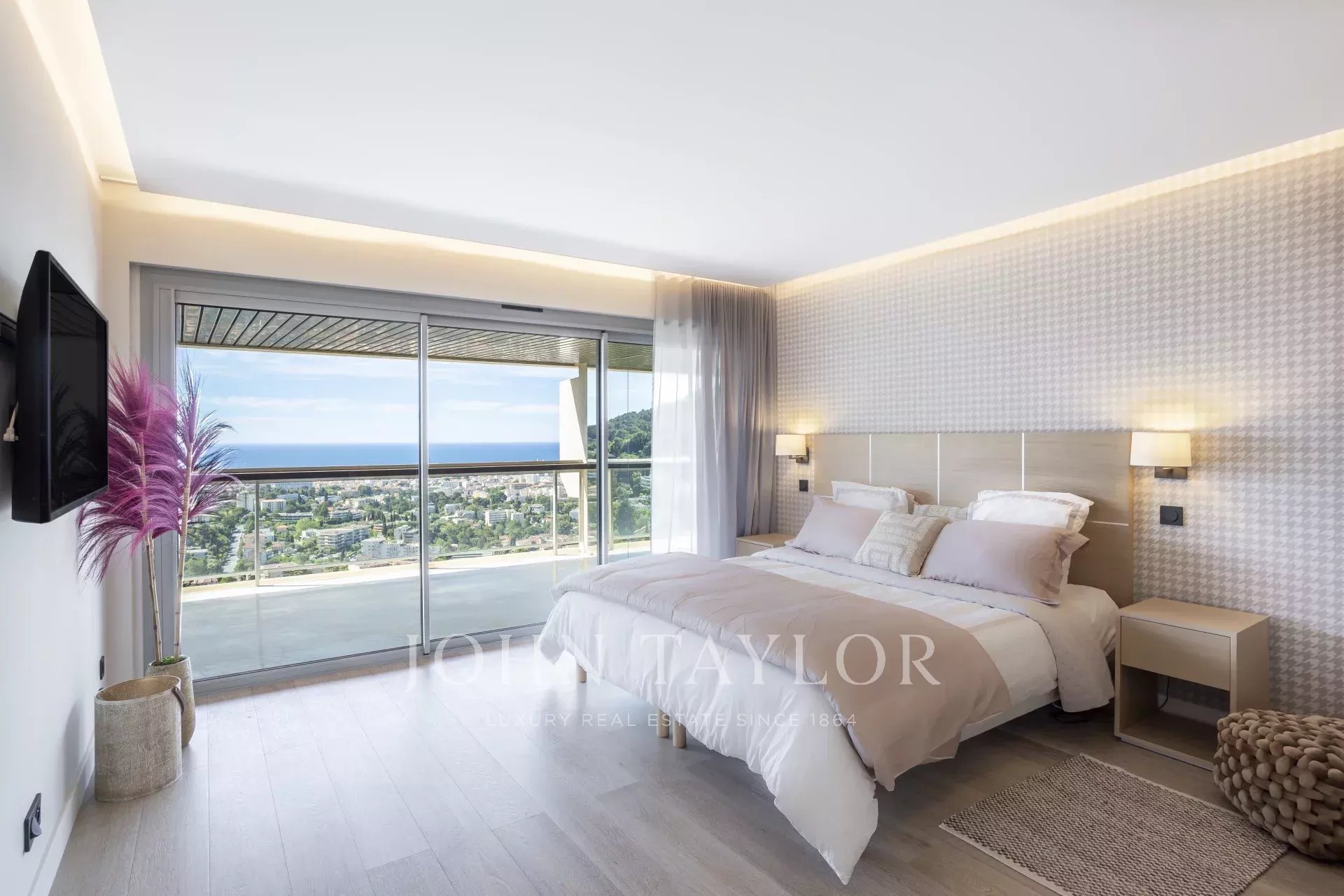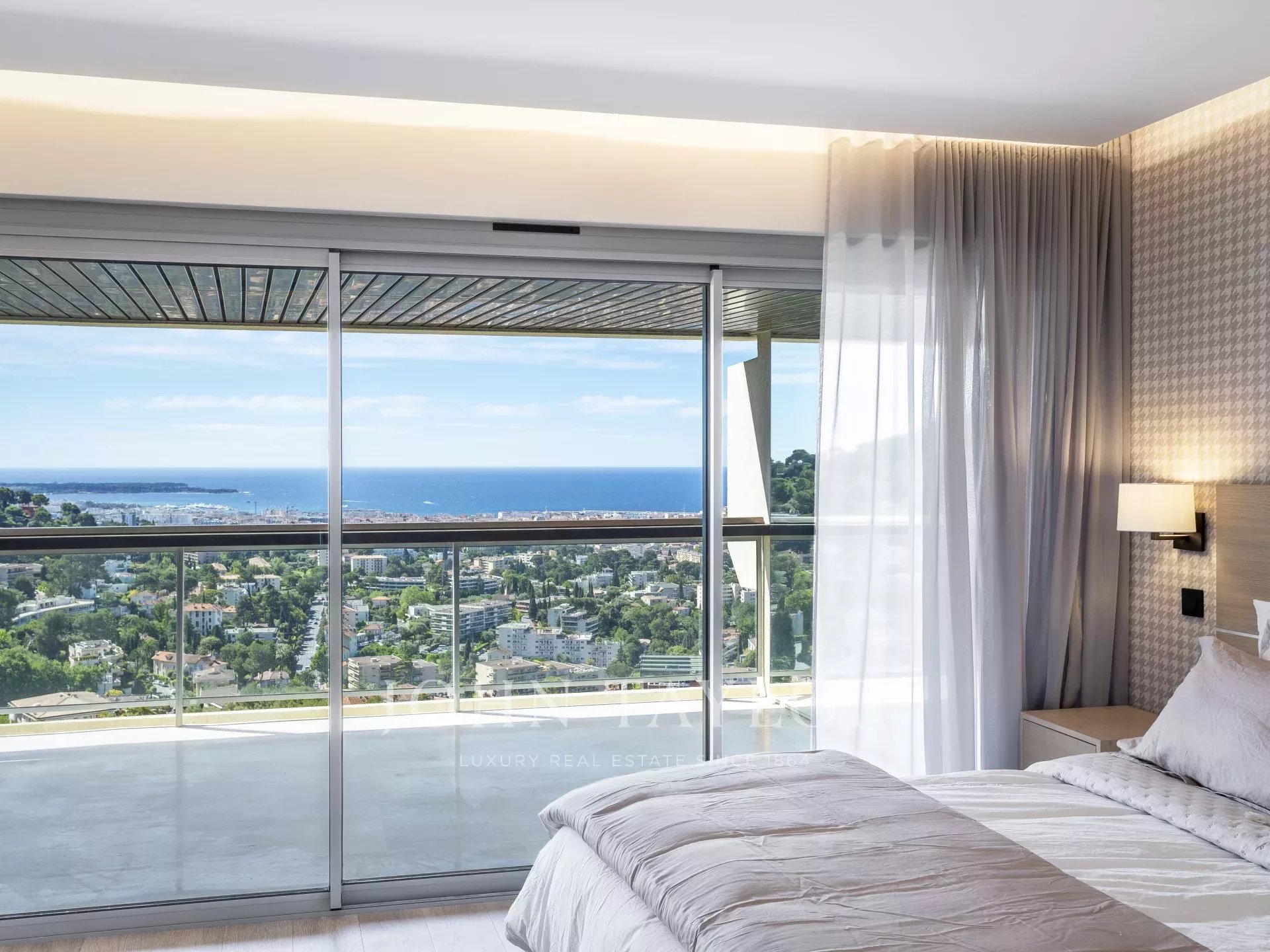 Dans une prestigieuse résidence du Cannet Résidentiel, cet appartement en dernier étage offre un environnement idéal, calme, avec une splendide vue panoramique sur la baie de Cannes des îles de Lérins jusqu’au massif de l'Estérel.