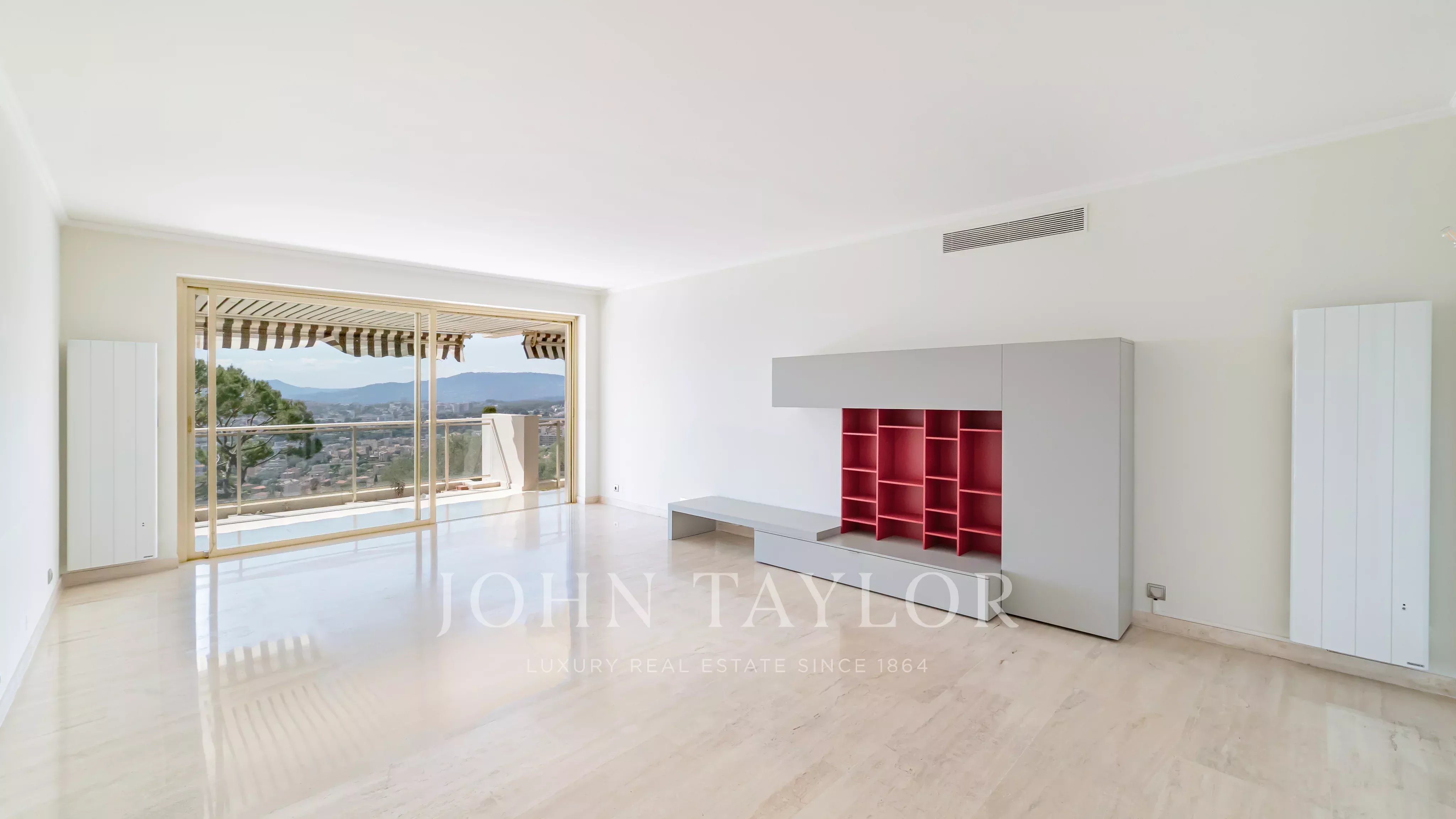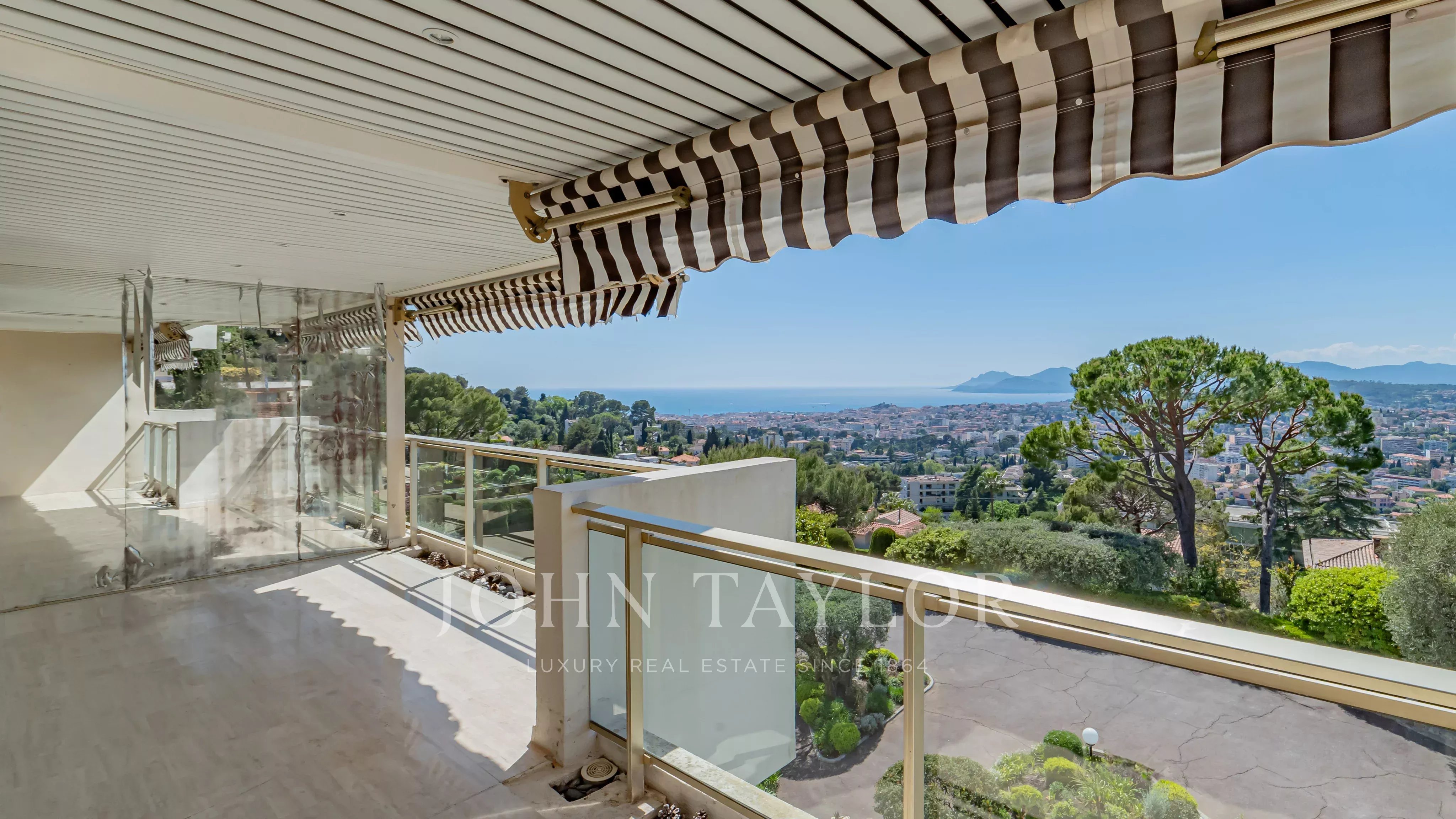 Dans une résidence de standing du Cannet résidentiel offrant concierge, piscine et tennis, ce bel appartement en étage élevé offre une vue panoramique sur la mer et la baie de Cannes ainsi que l'Estérel.