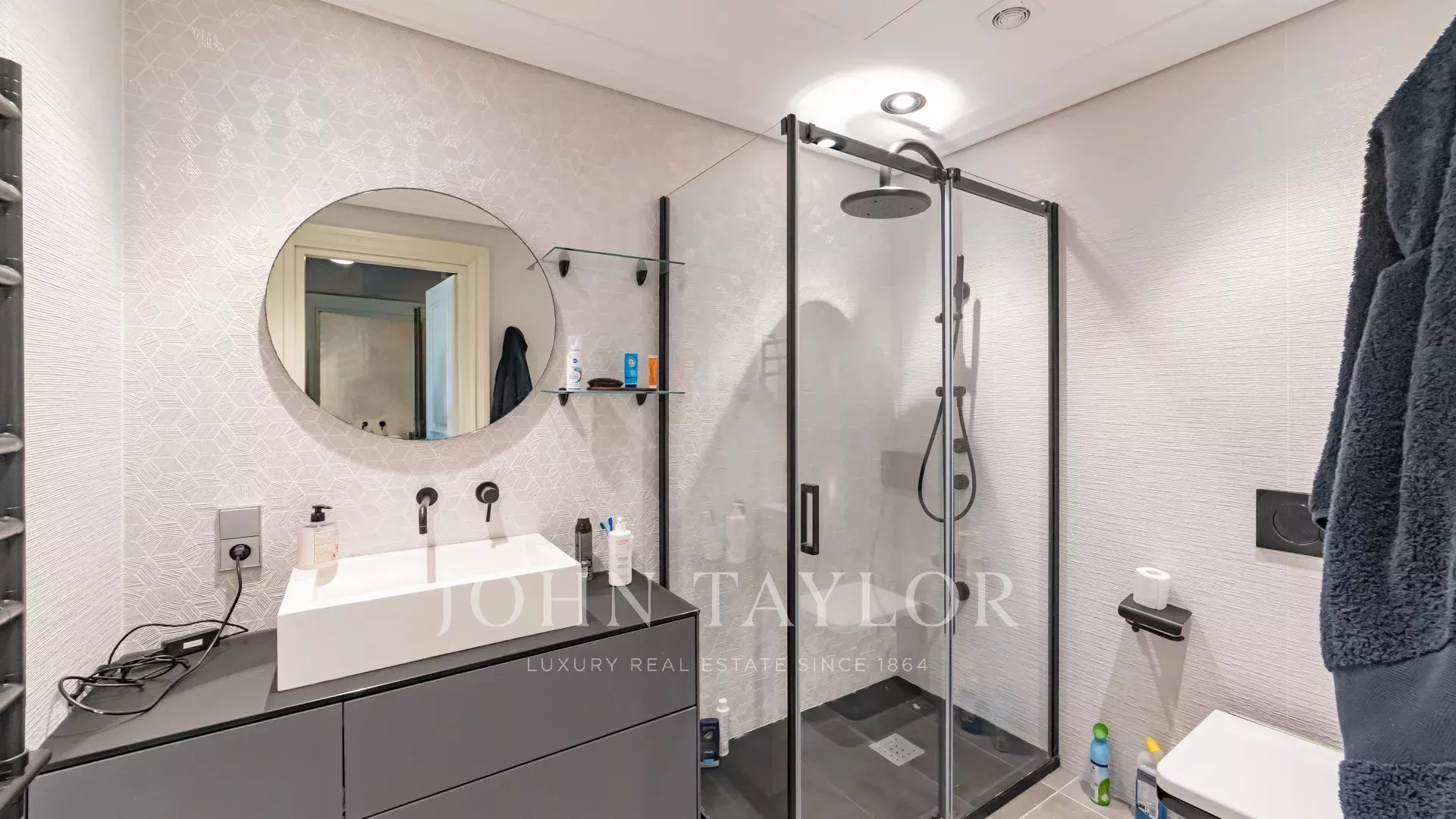 Dans une résidence sécurisée offrant des équipements tels qu'une piscine, des courts de tennis et un service de conciergerie disponible 24h/24, 7j/7, cet appartement-villa avec piscine privée dispose de vastes espaces et d'une belle vue dégagée.