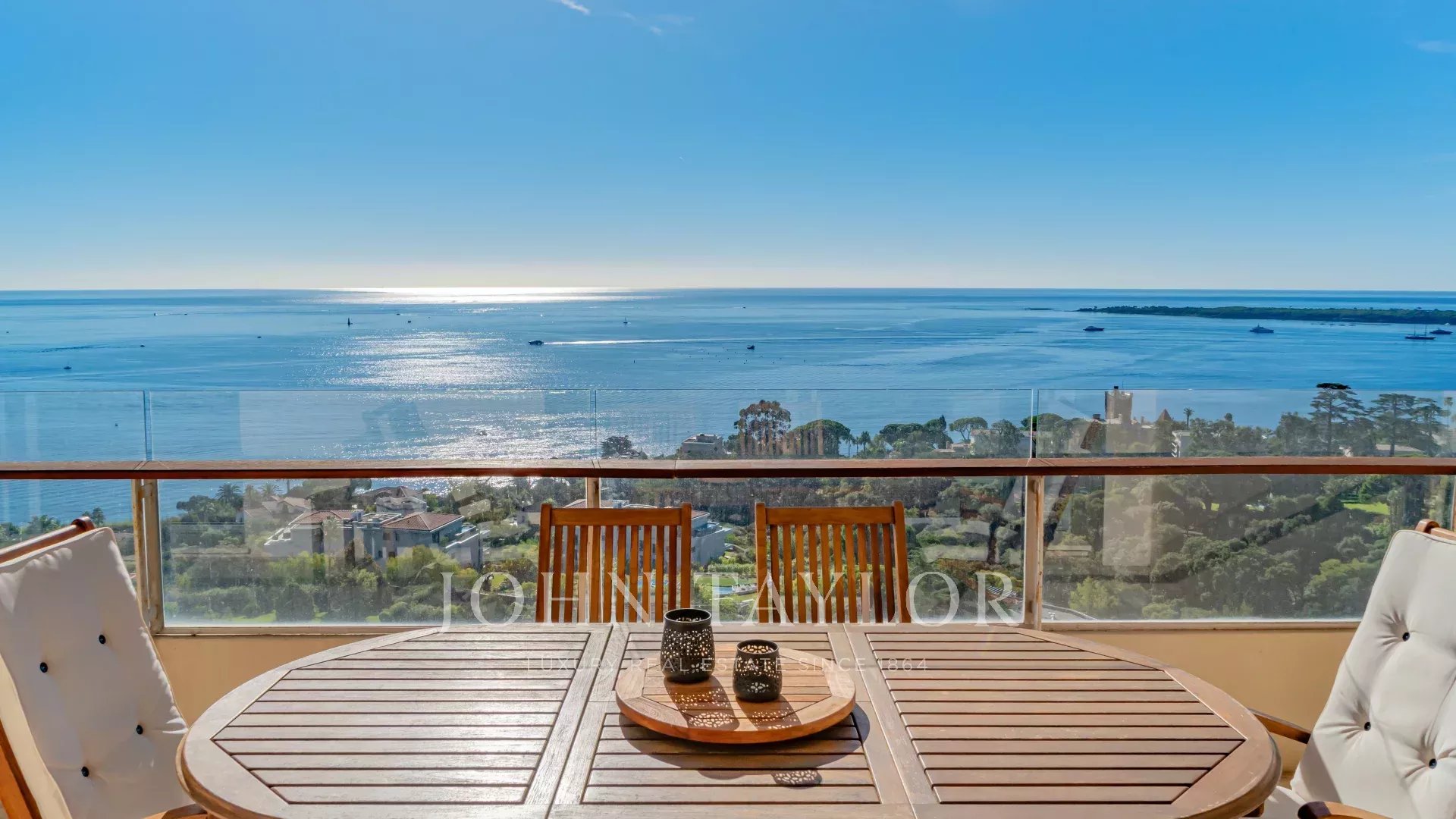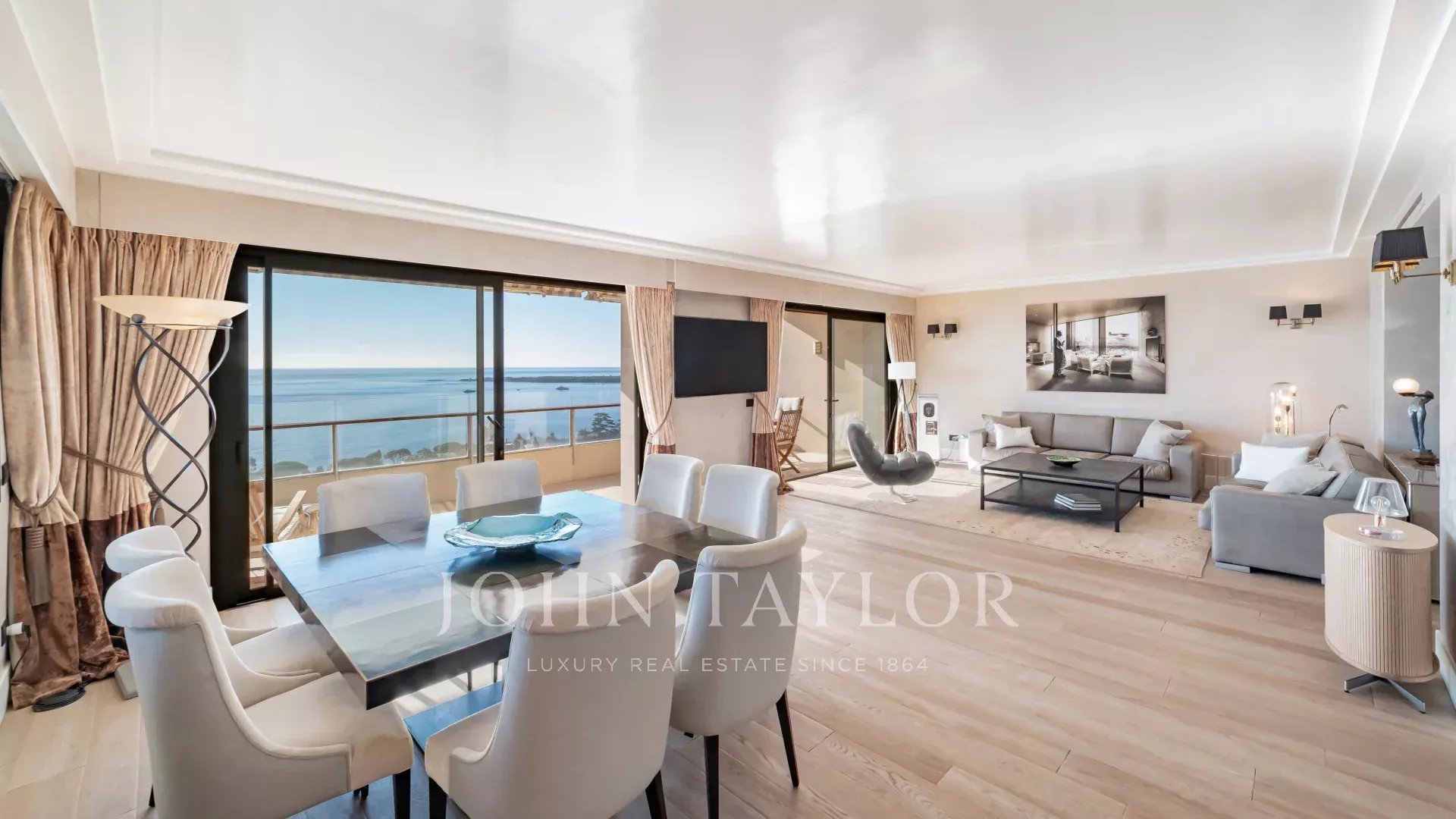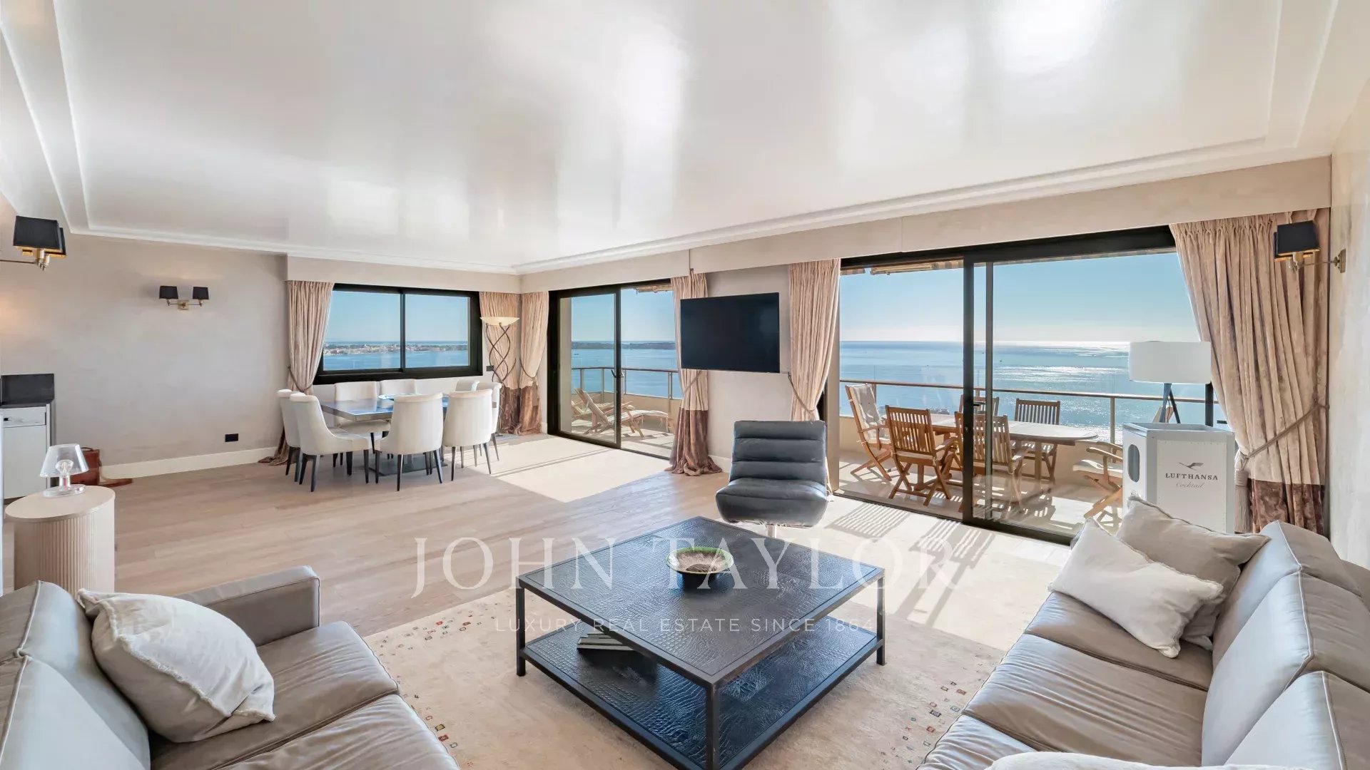 Traversant et baigné de lumière, il bénéficie d’une exposition idéale plein sud et sud-est. Son vaste séjour avec cuisine ouverte entièrement équipée s’ouvre sur une terrasse d’angle de 47 m², offrant une vue panoramique sur le Cap d’Antibes, la baie de Nice et la Méditerranée.