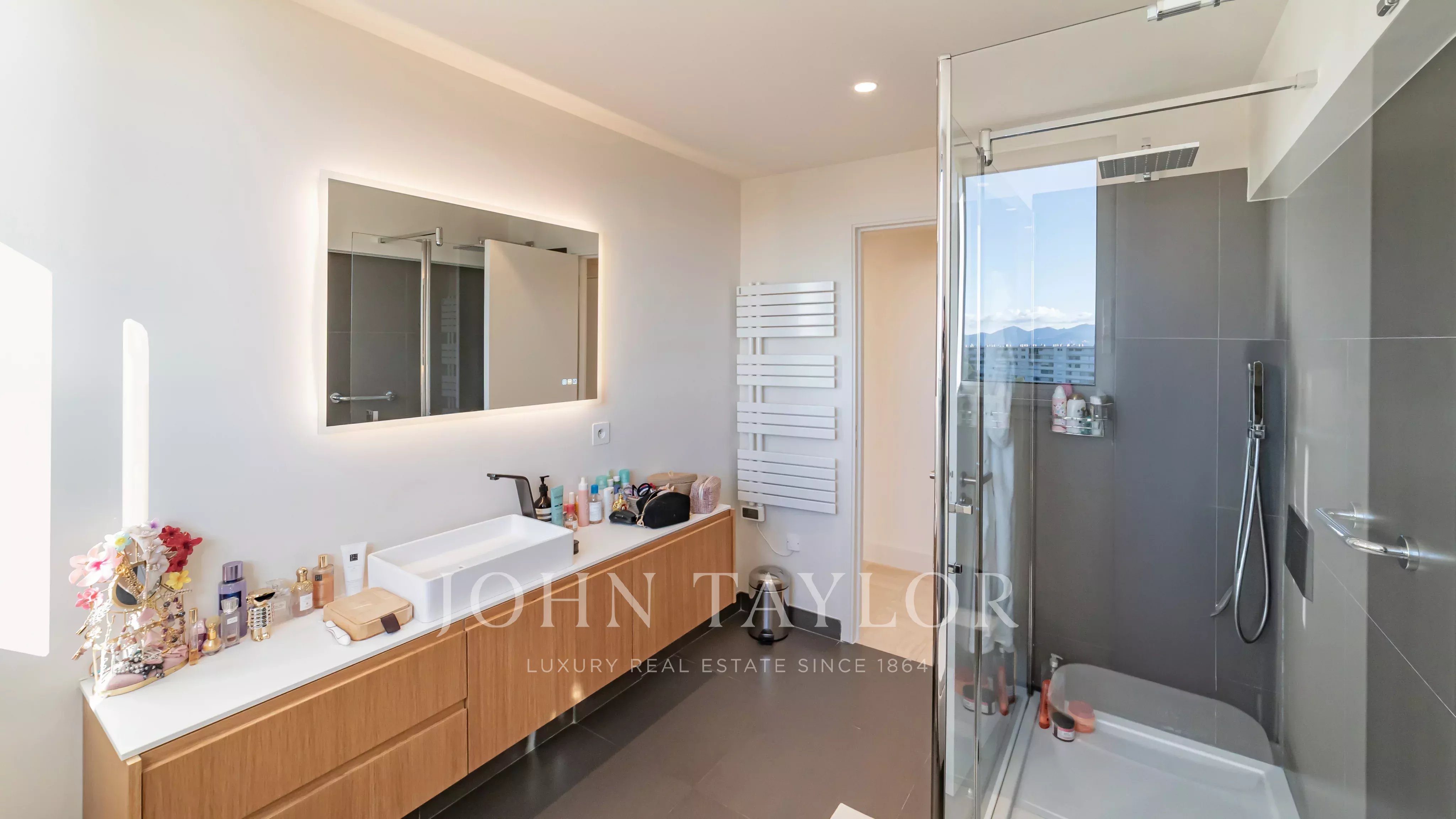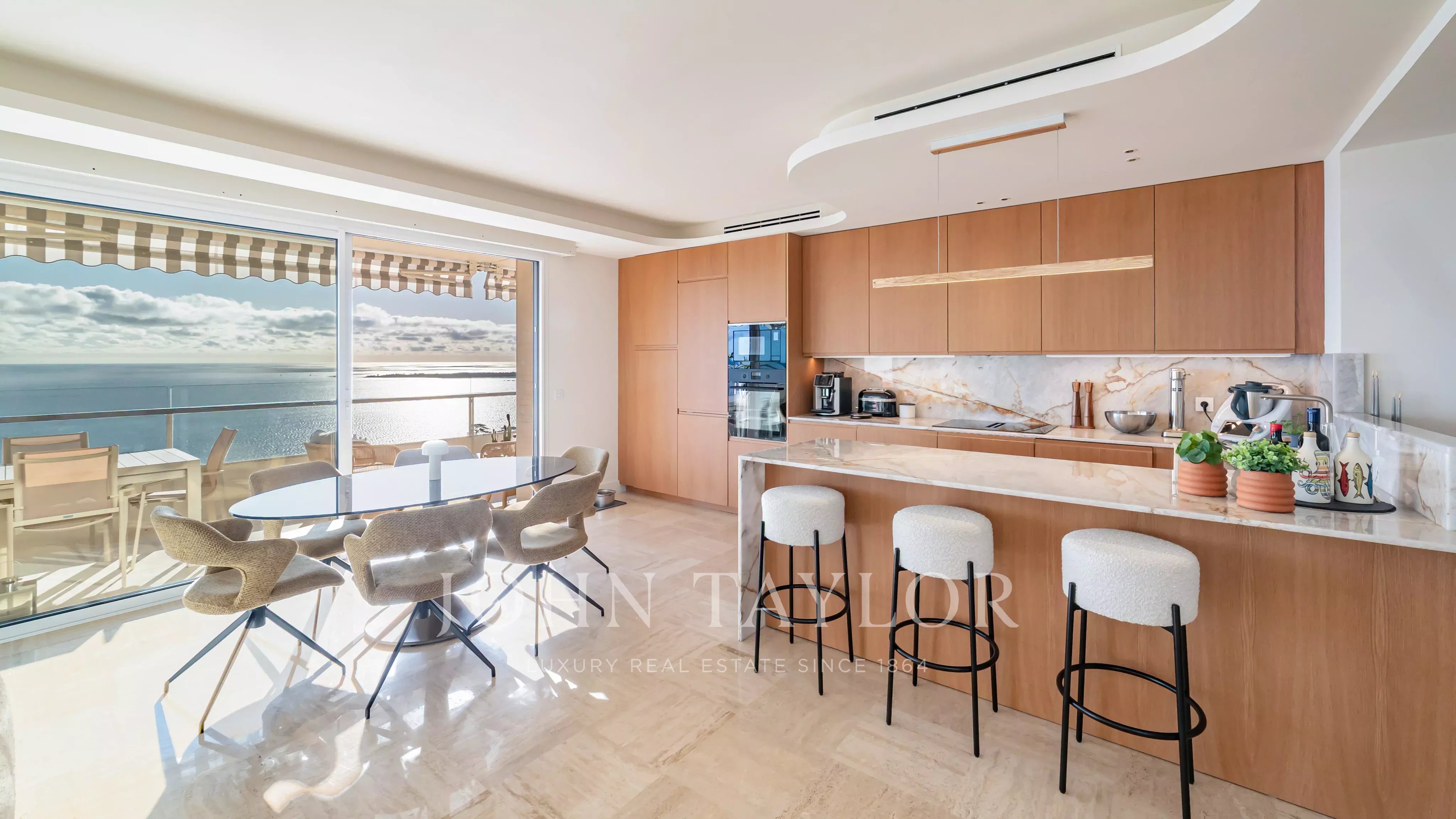 Entièrement rénové récemment dans un esprit contemporain, il se compose d’un hall d’entrée, d’un vaste séjour de 45 m² avec cuisine ouverte, de quatre chambres, chacune disposant de sa salle d’eau privative, d’un dressing ainsi que de toilettes indépendantes.