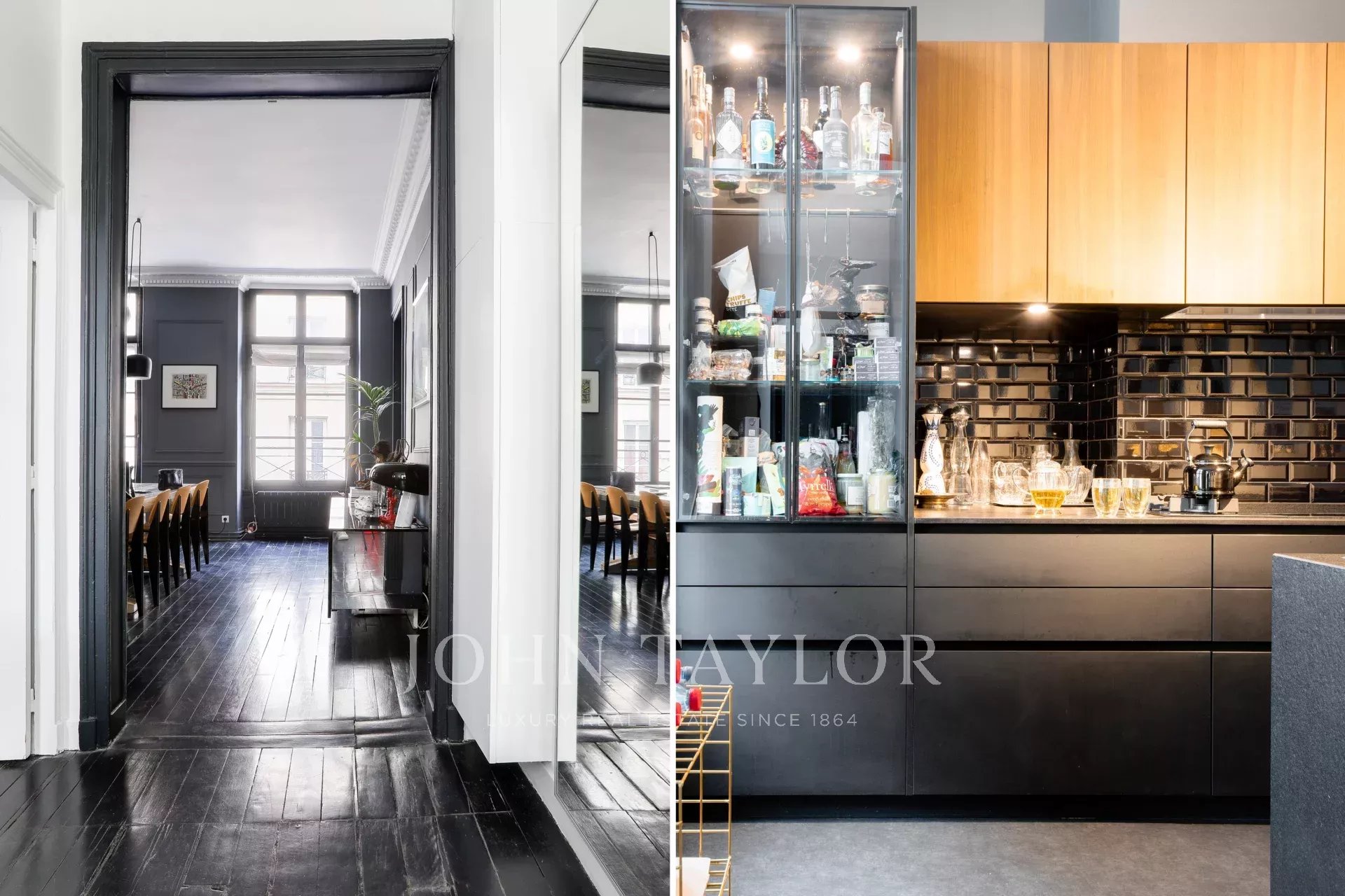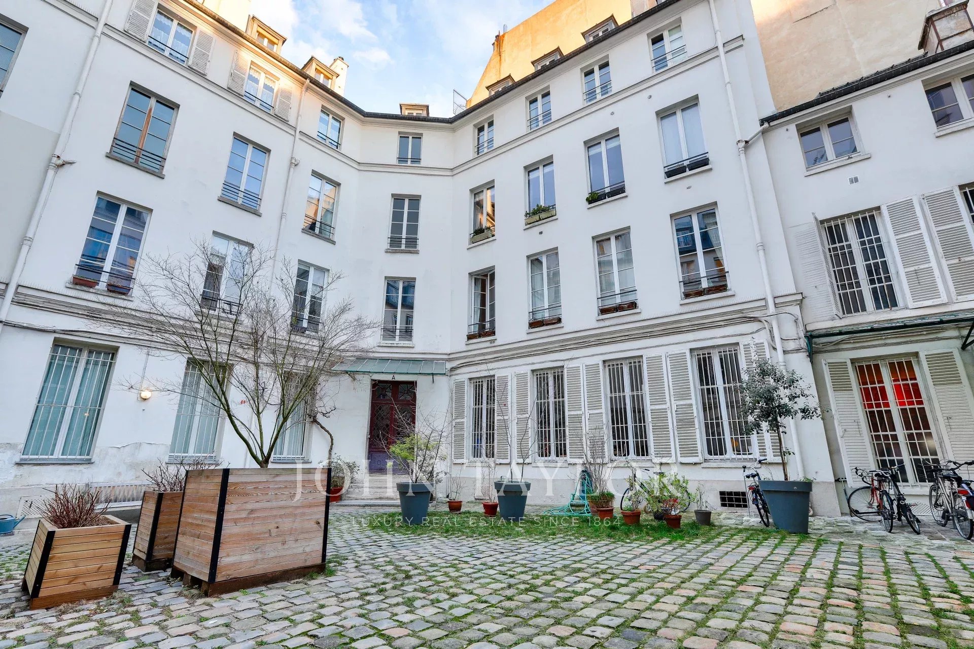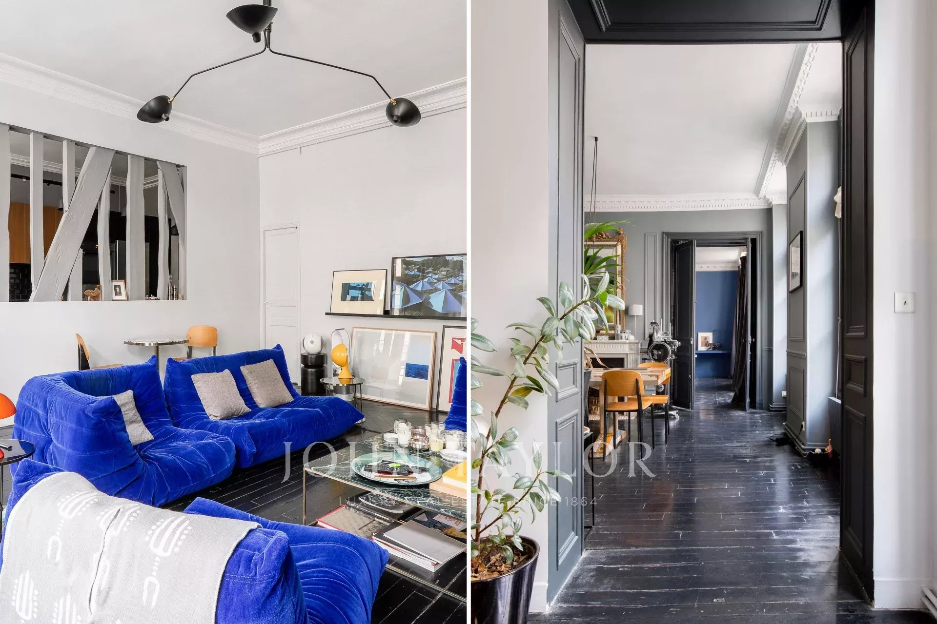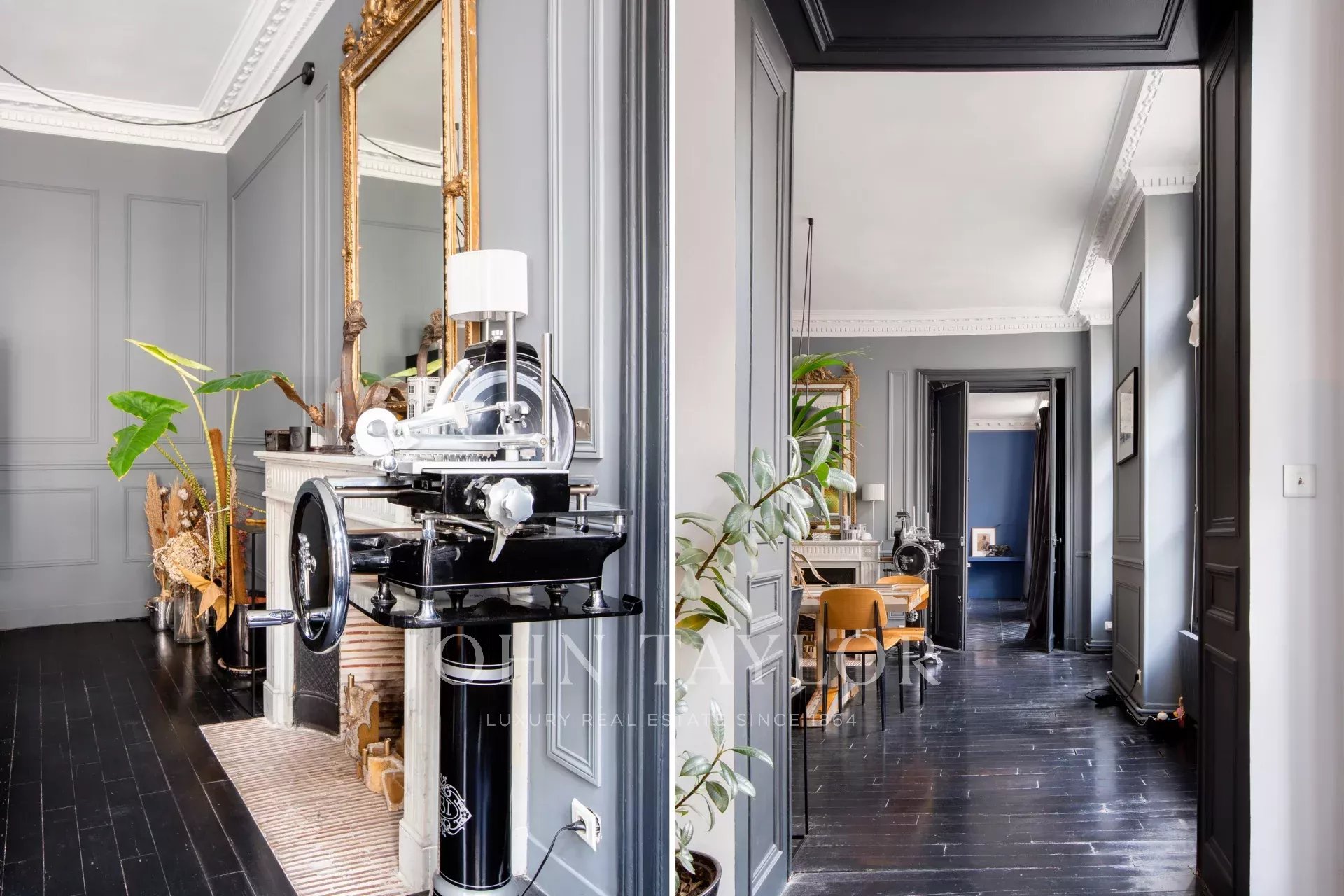 Au deuxième étage (sans ascenseur) d’une copropriété du XIXème siècle bénéficiant d’une large cour pavée, très bel appartement de réception traversant (Nord/Sud) de 130m² offrant un plan optimal.