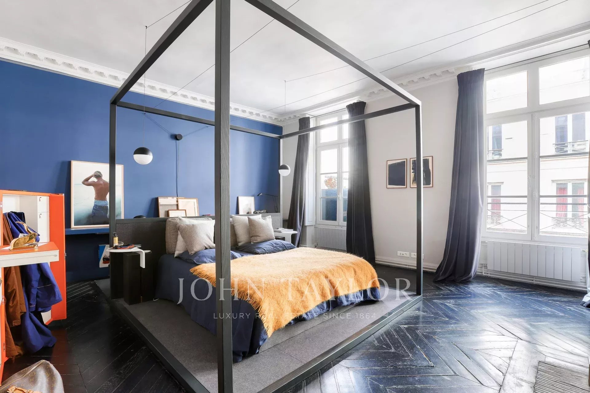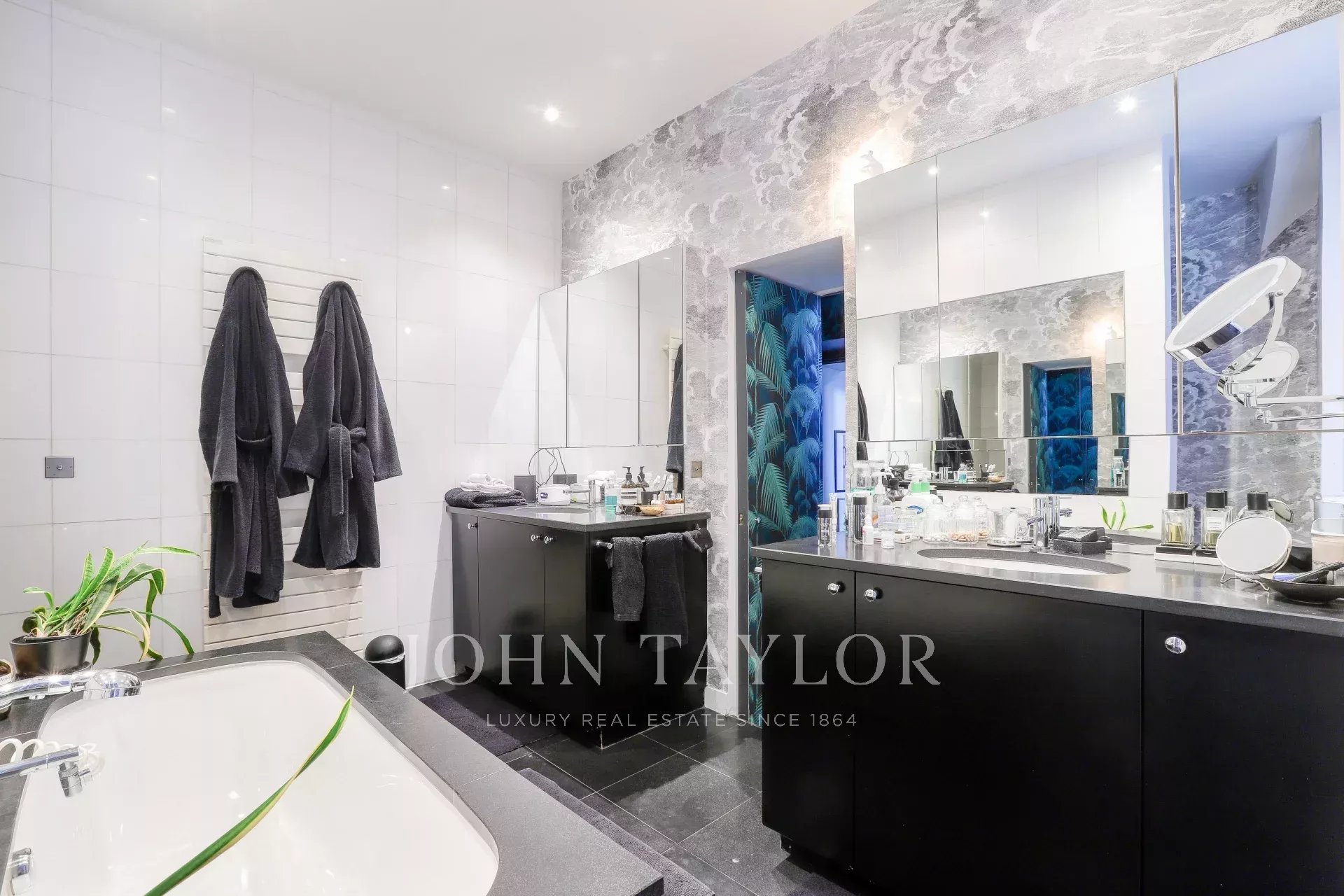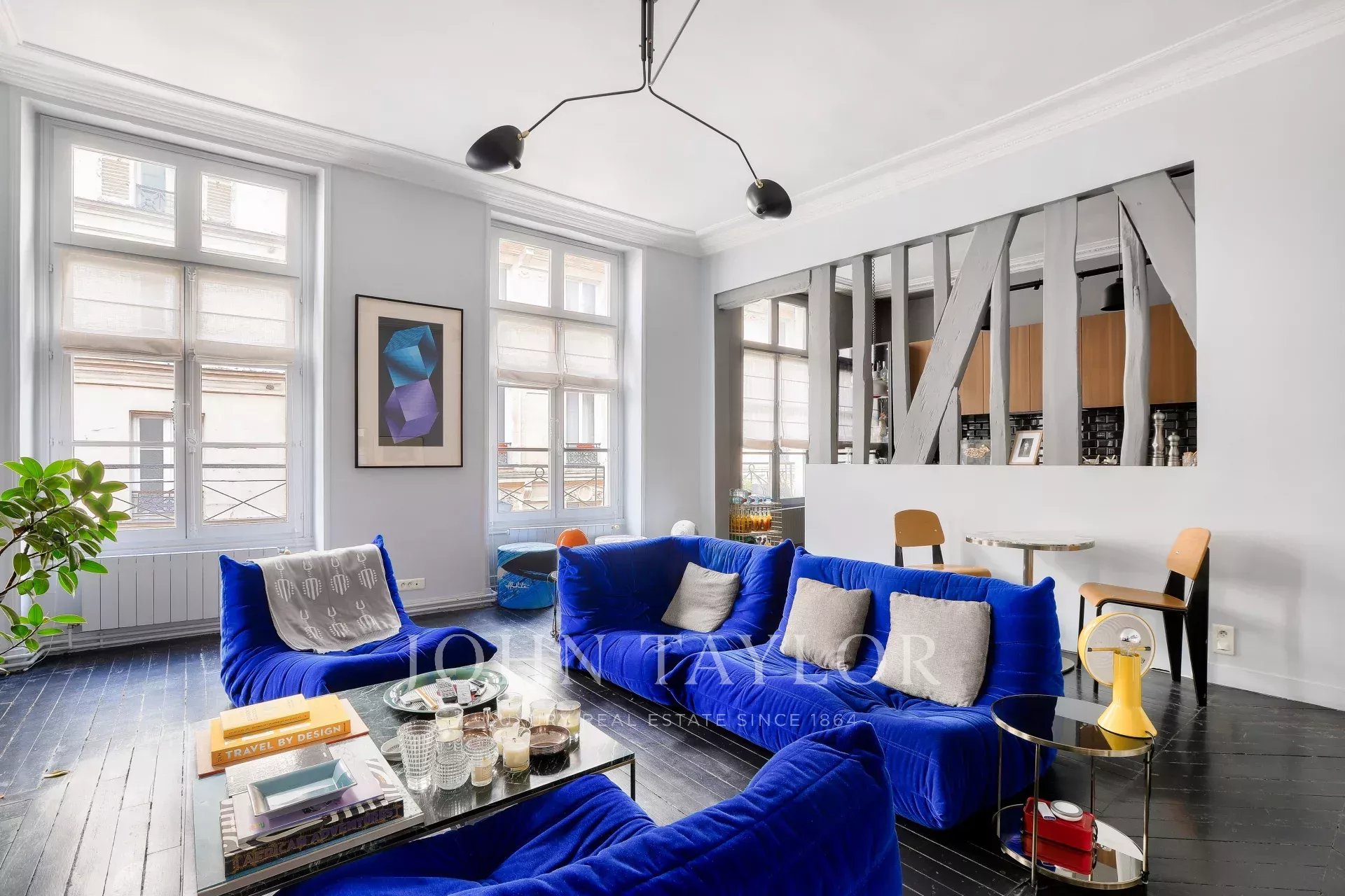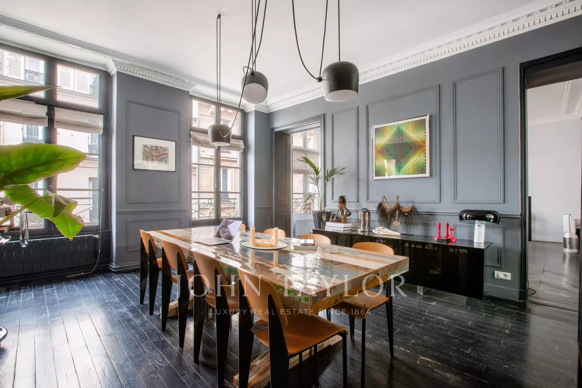 Au deuxième étage (sans ascenseur) d’une copropriété du XIXème siècle bénéficiant d’une large cour pavée, très bel appartement de réception traversant (Nord/Sud) de 130m² offrant un plan optimal.