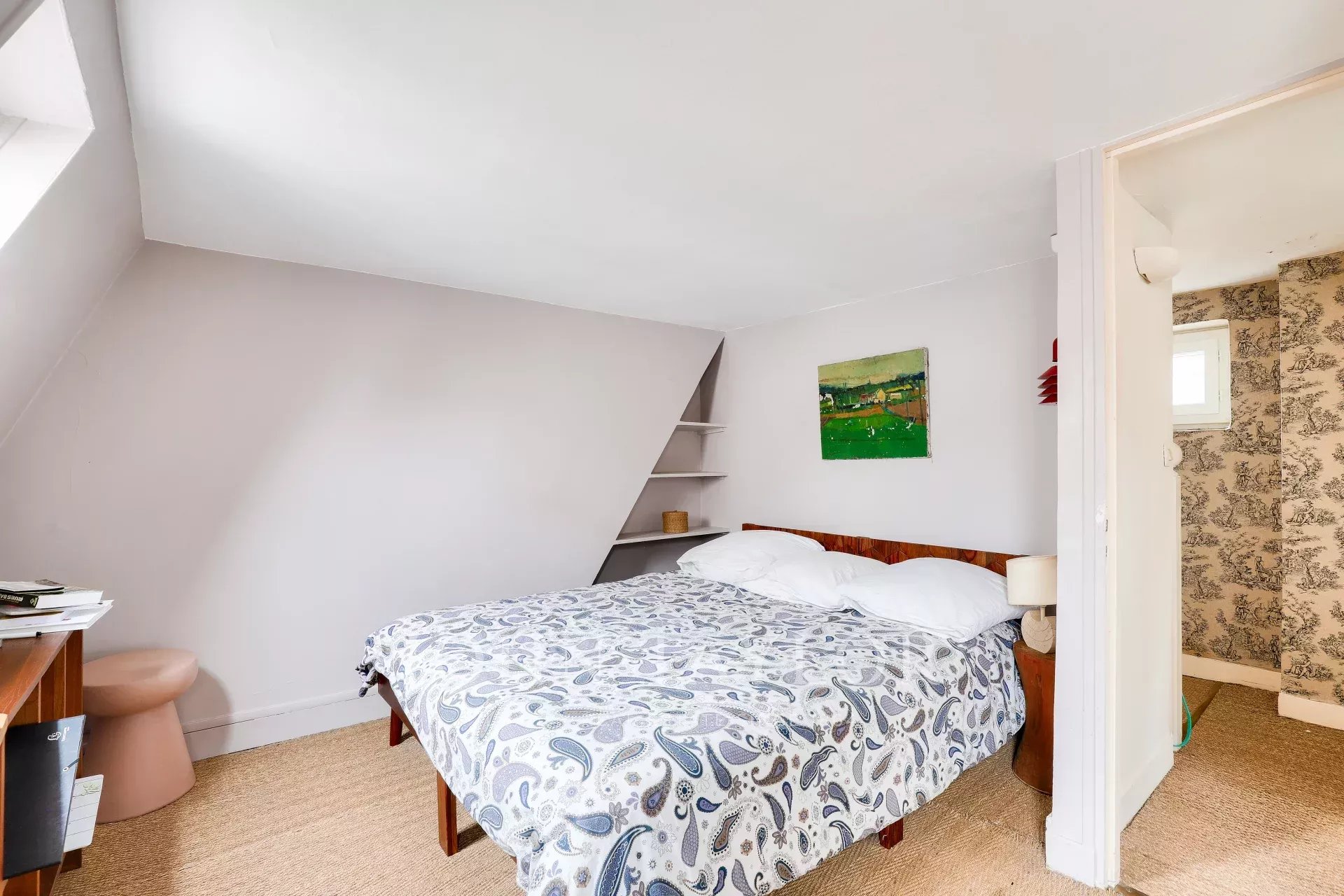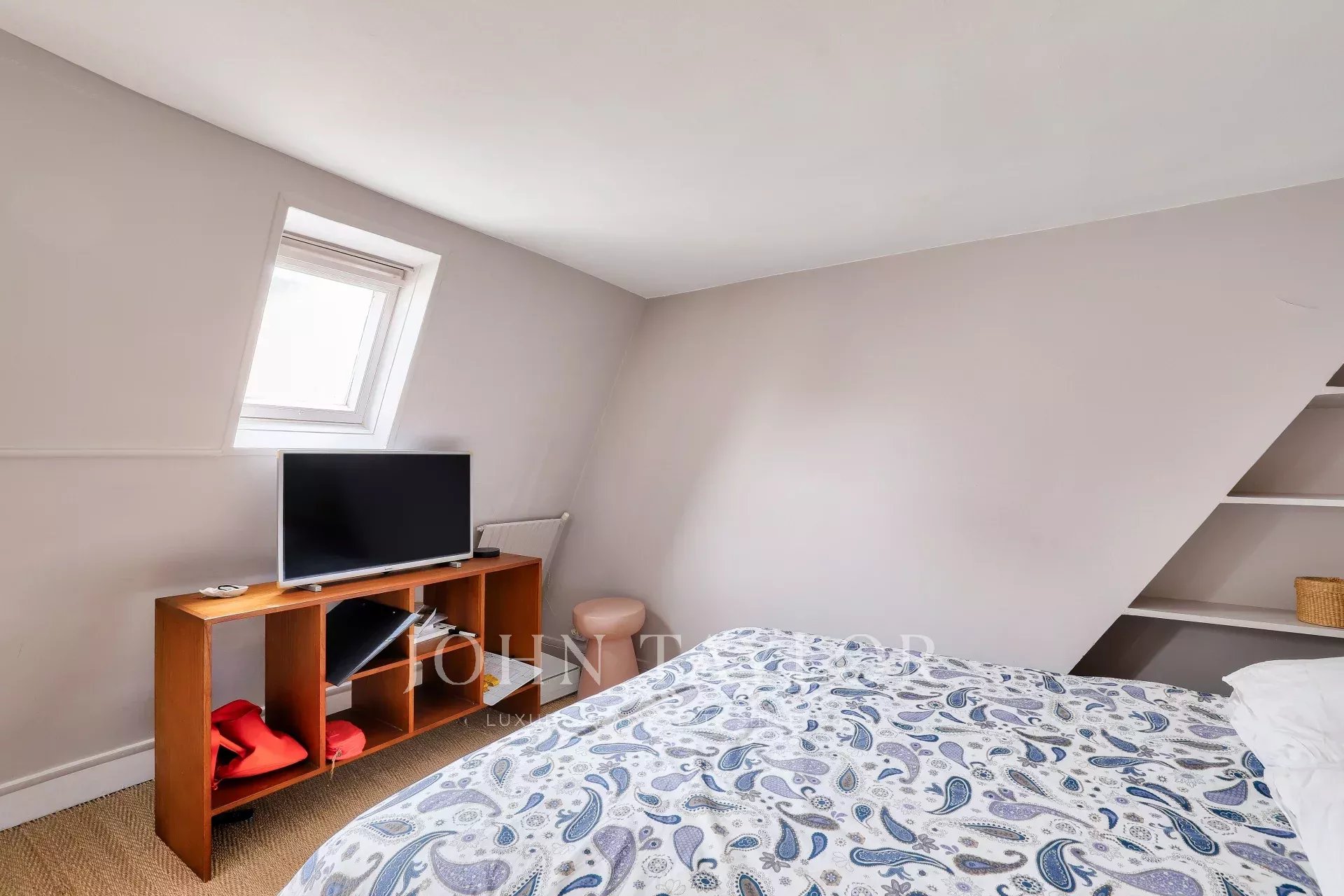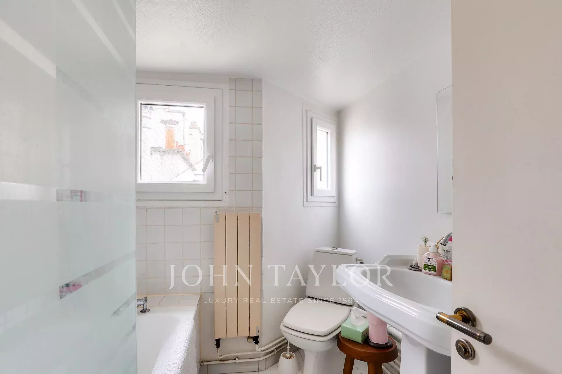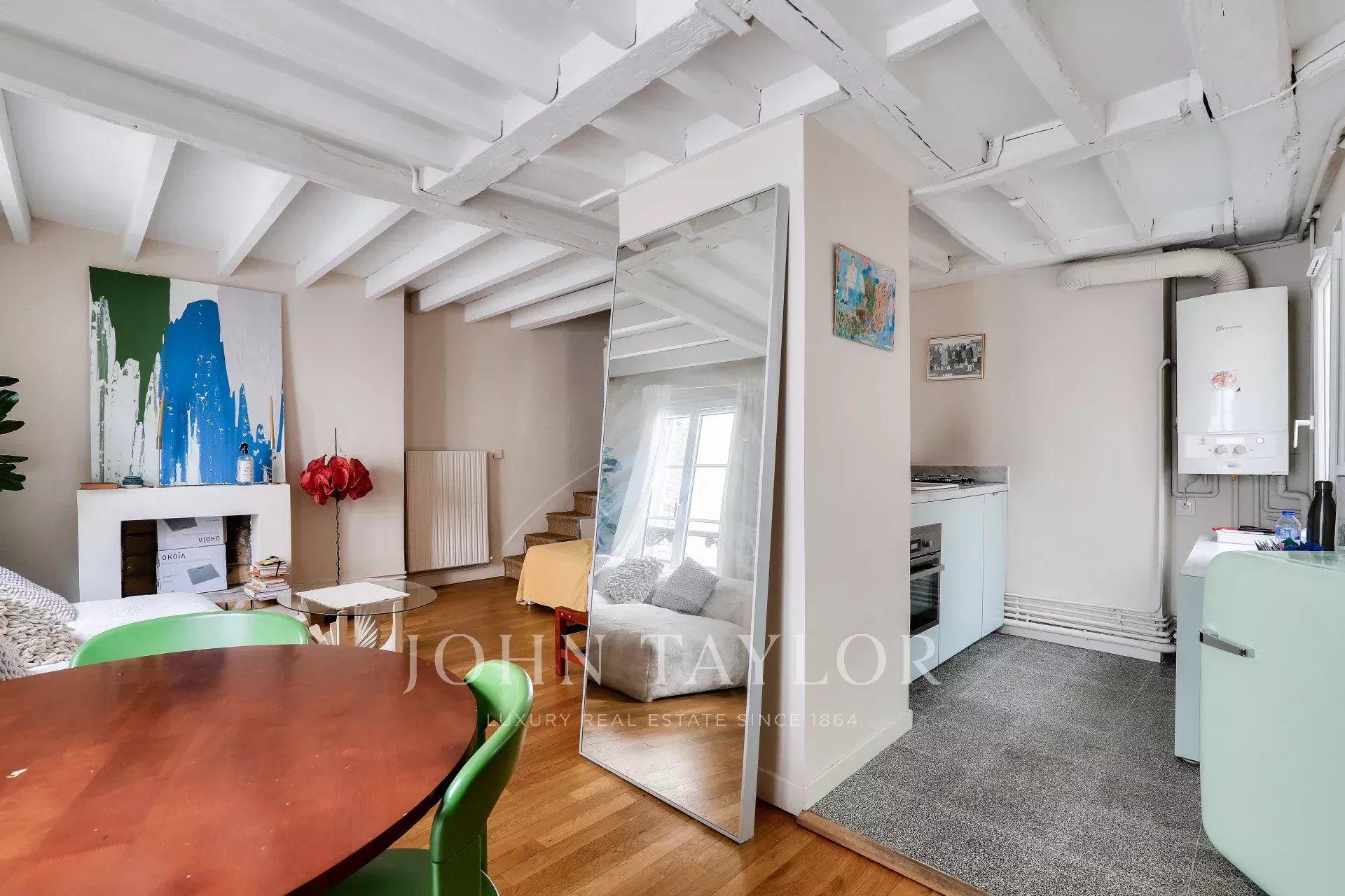 Au 4ème étage par ascenseur d'un immeuble Louis Philippe et à deux pas de la Place Franz Liszt et de la Gare du Nord, ce joli duplex se compose comme suit: