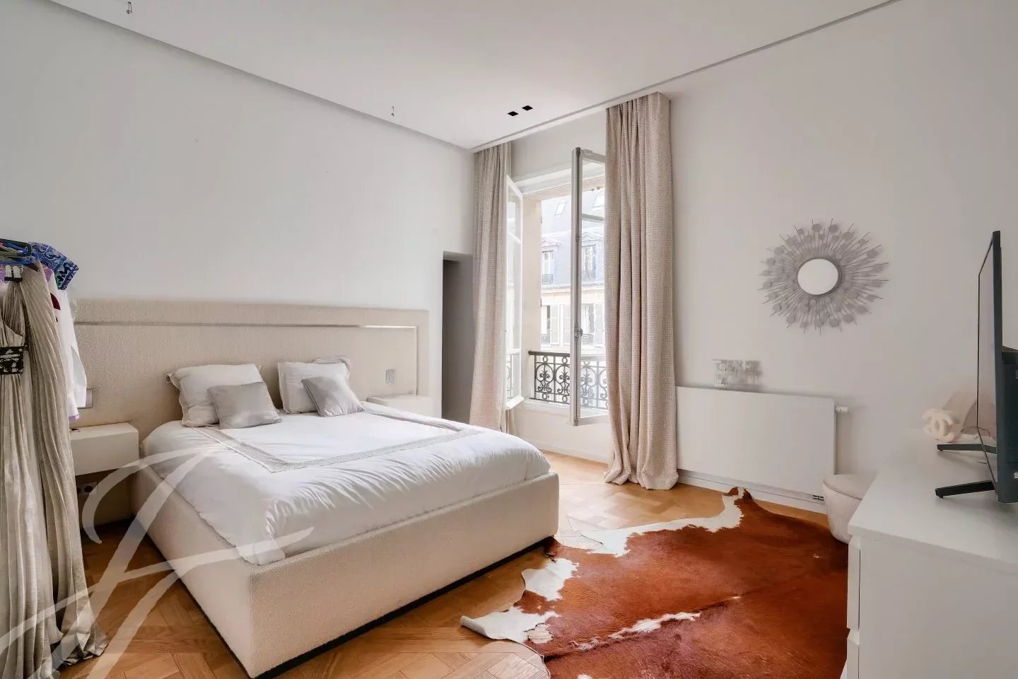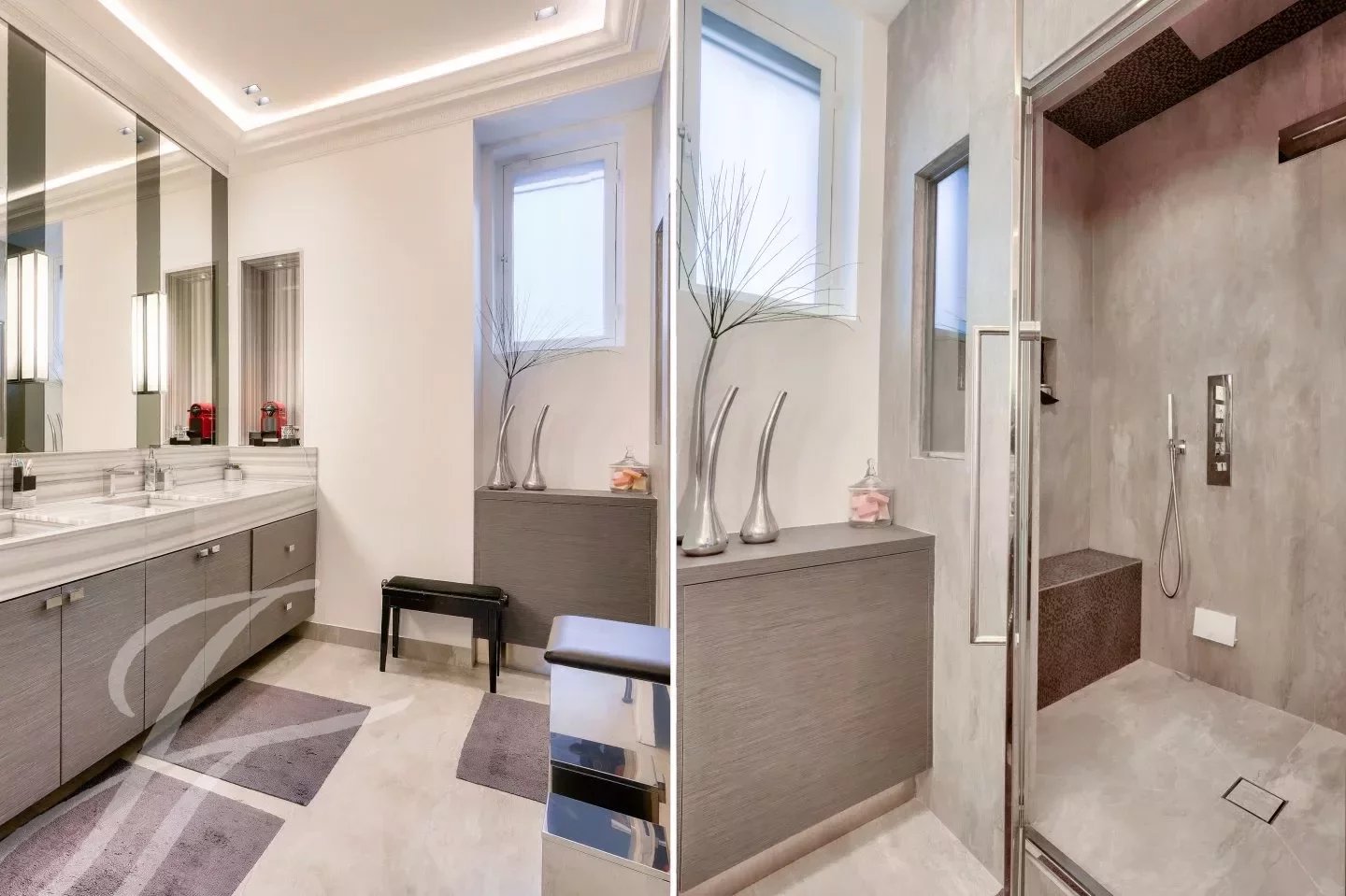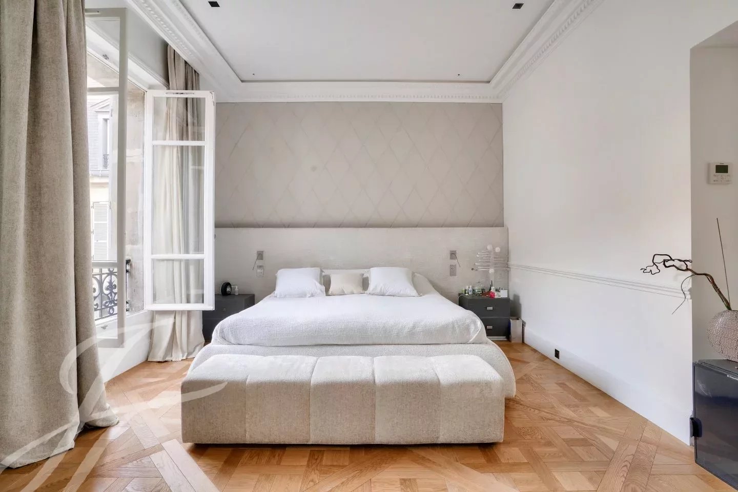 Entièrement rénové avec des matériaux haut de gamme dans un esprit contemporain tout en ayant conservé le cachet de l’ancien : parquet, moulures, cheminée.