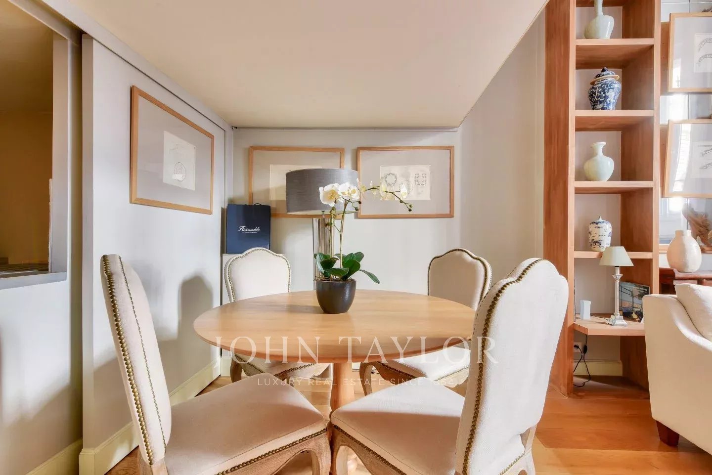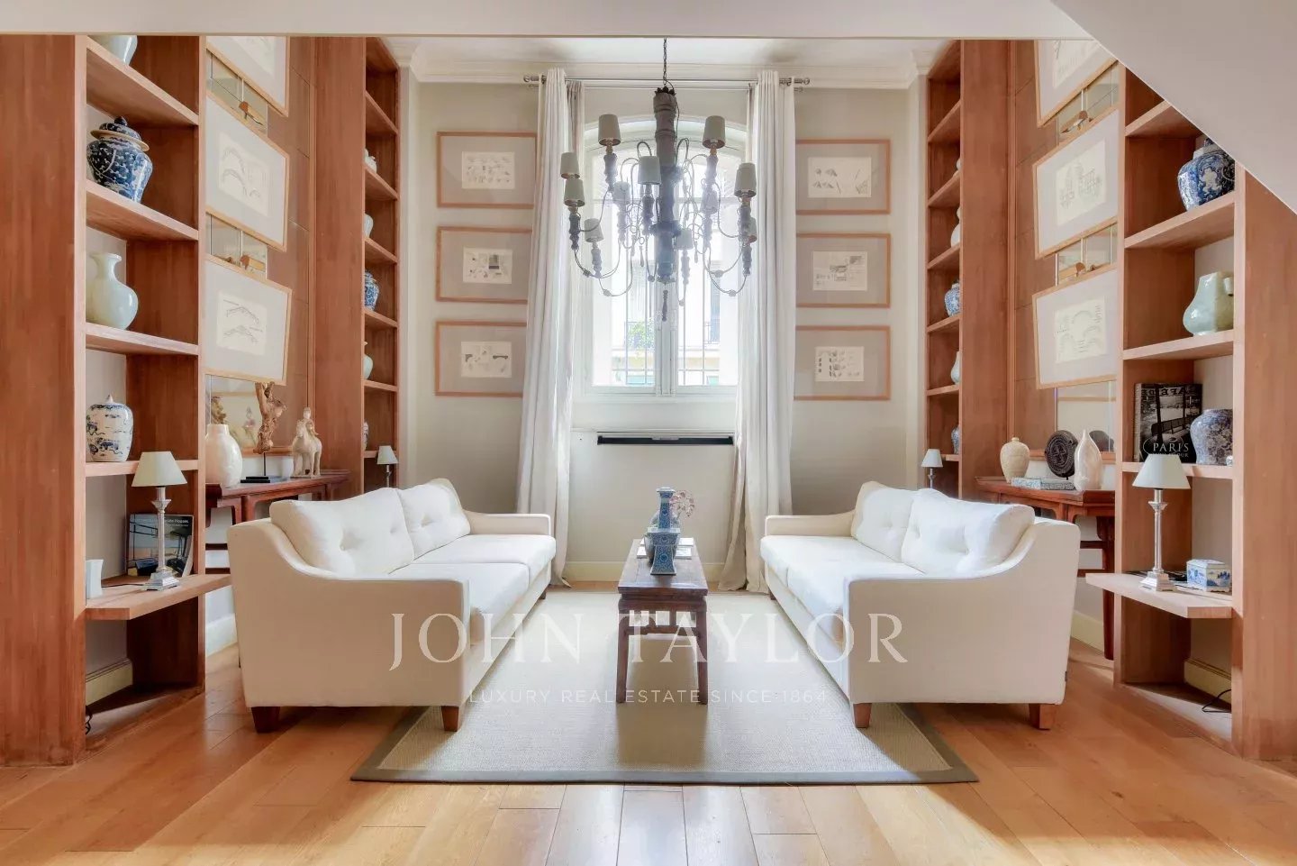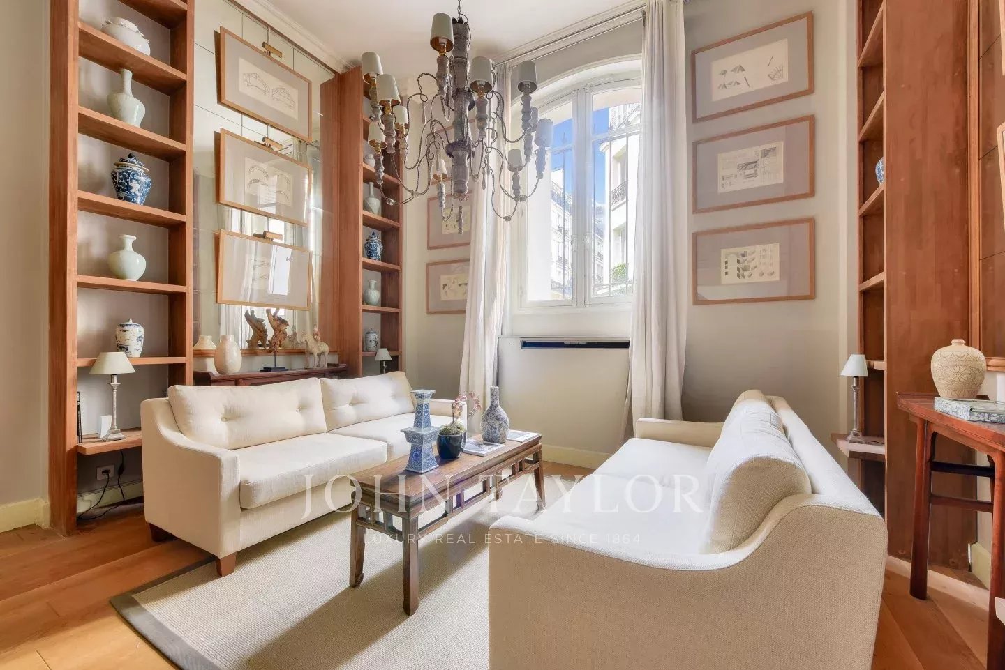 Décoration raffinée pour cet appartement idéalement placé dans le quartier privilégié et sécurisé du 16ème entre l'avenue d'Iéna et le Triangle d'Or du 8ème.