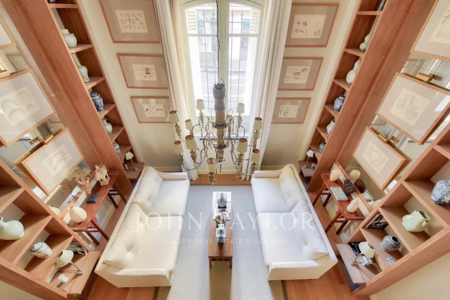 - un grand séjour avec environ 4 mètres de HSP, décoré de grandes bibliothèques éclairées,