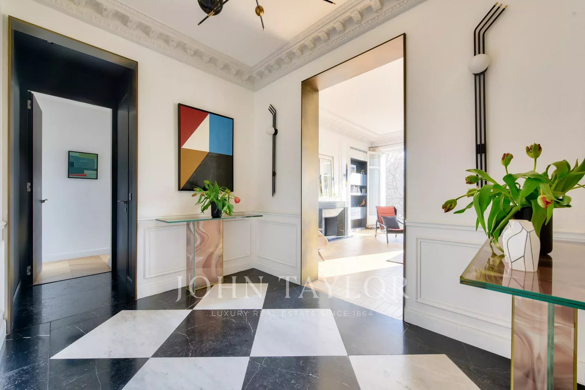 Au 3ème étage avec ascenseur d'un magnifique immeuble ancien en pierre de taille, appartement refait à neuf de 160.57 m² avec un balcon filant, bénéficiant de fabuleuses vues sur la Seine, la Tour Eiffel et les Jardins du Trocadéro.