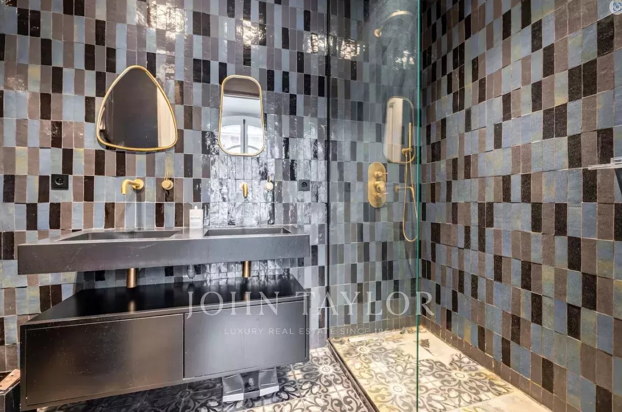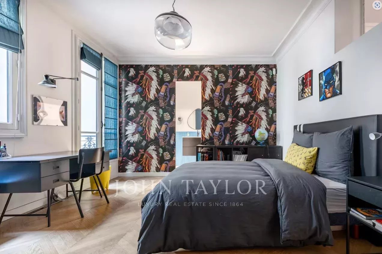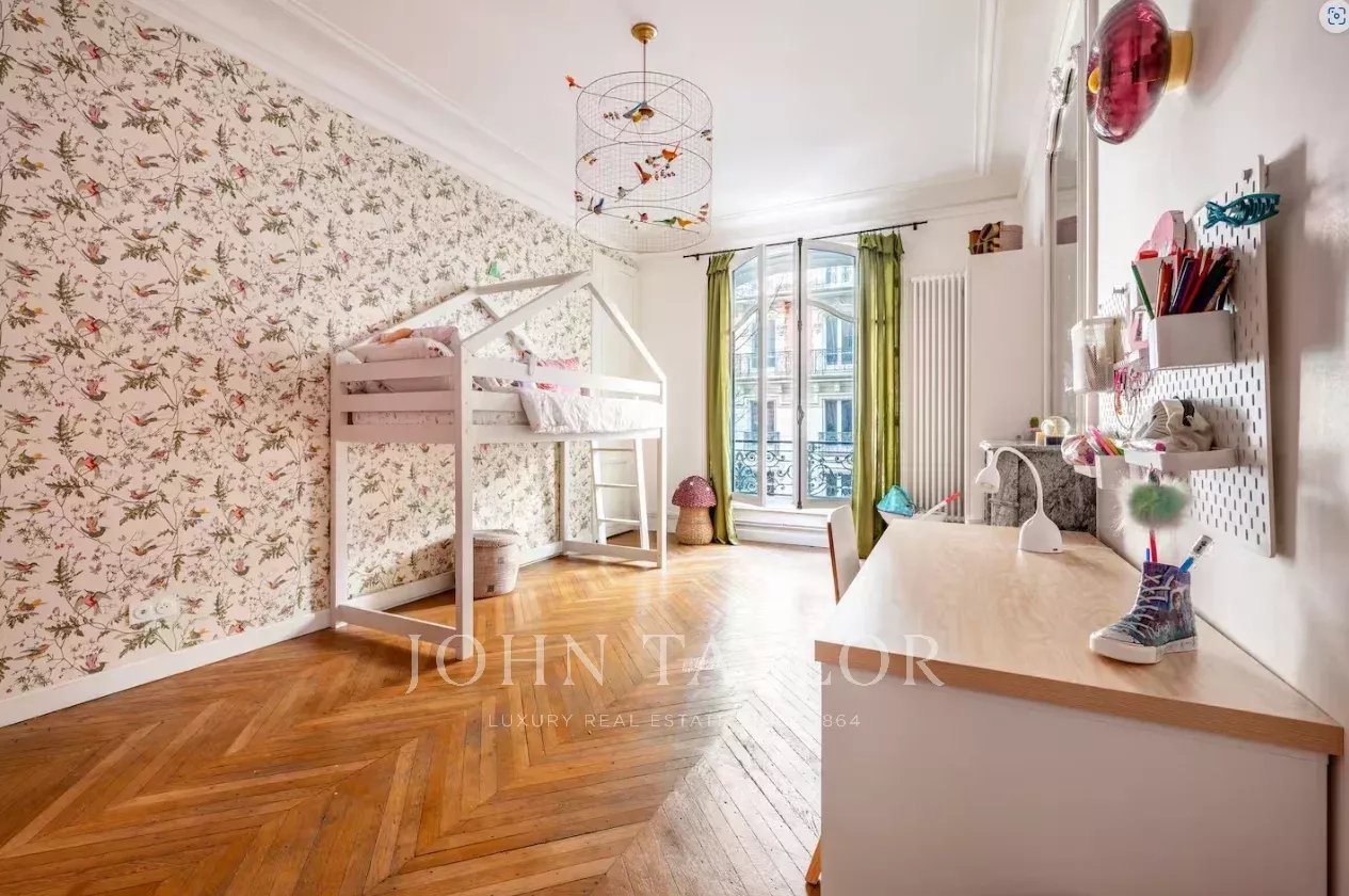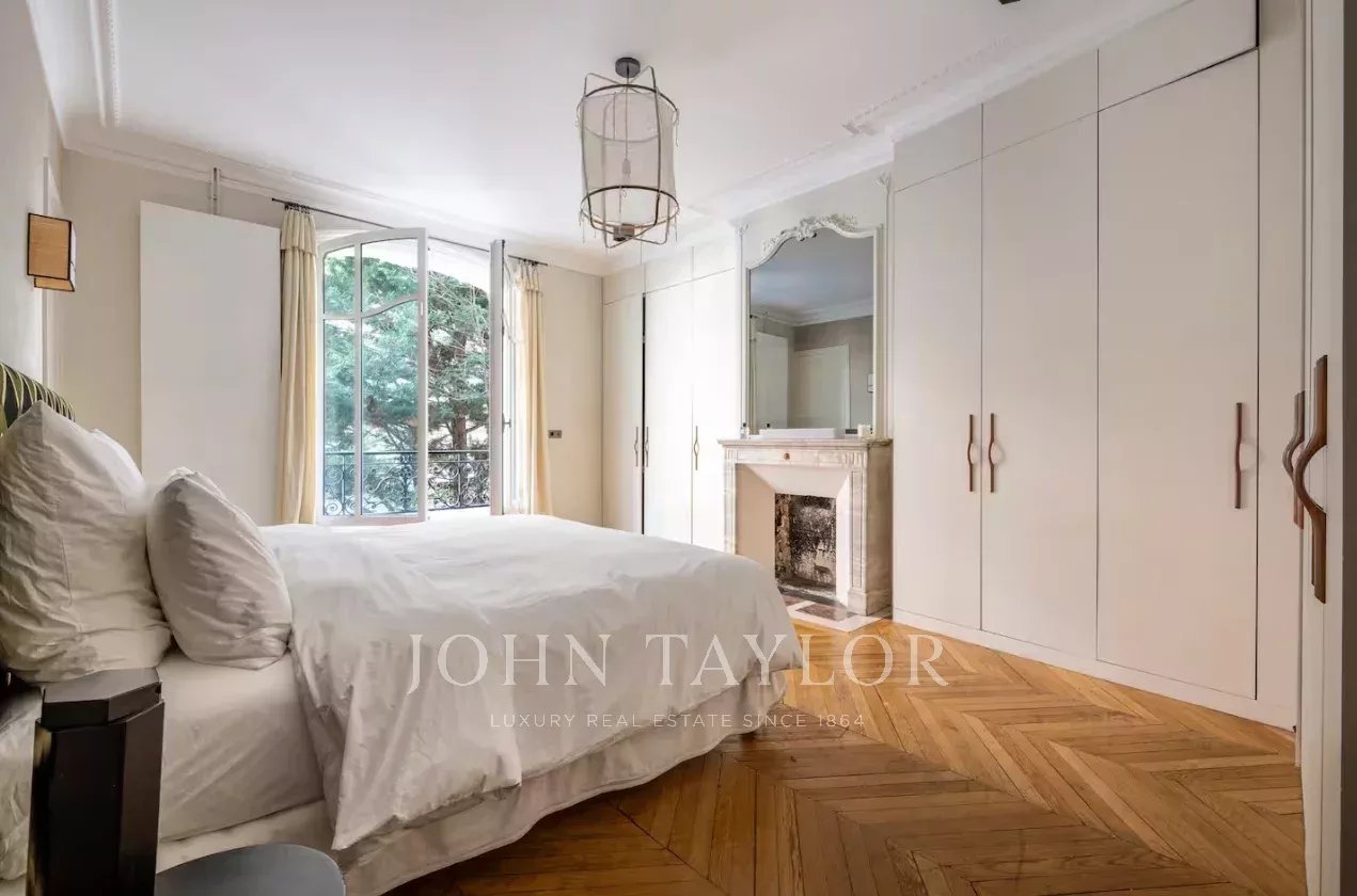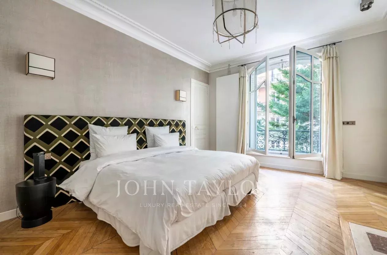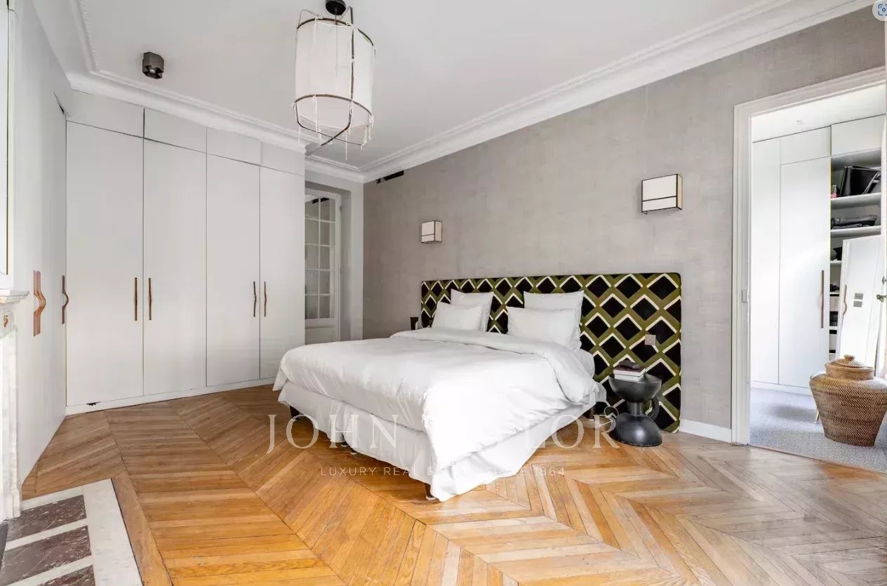 Appartement de 205 m² entièrement rénové dans un bel immeuble haussmannien récemment ravalé, au 1er étage d’un immeuble sécurisé avec ascenseur et gardien.