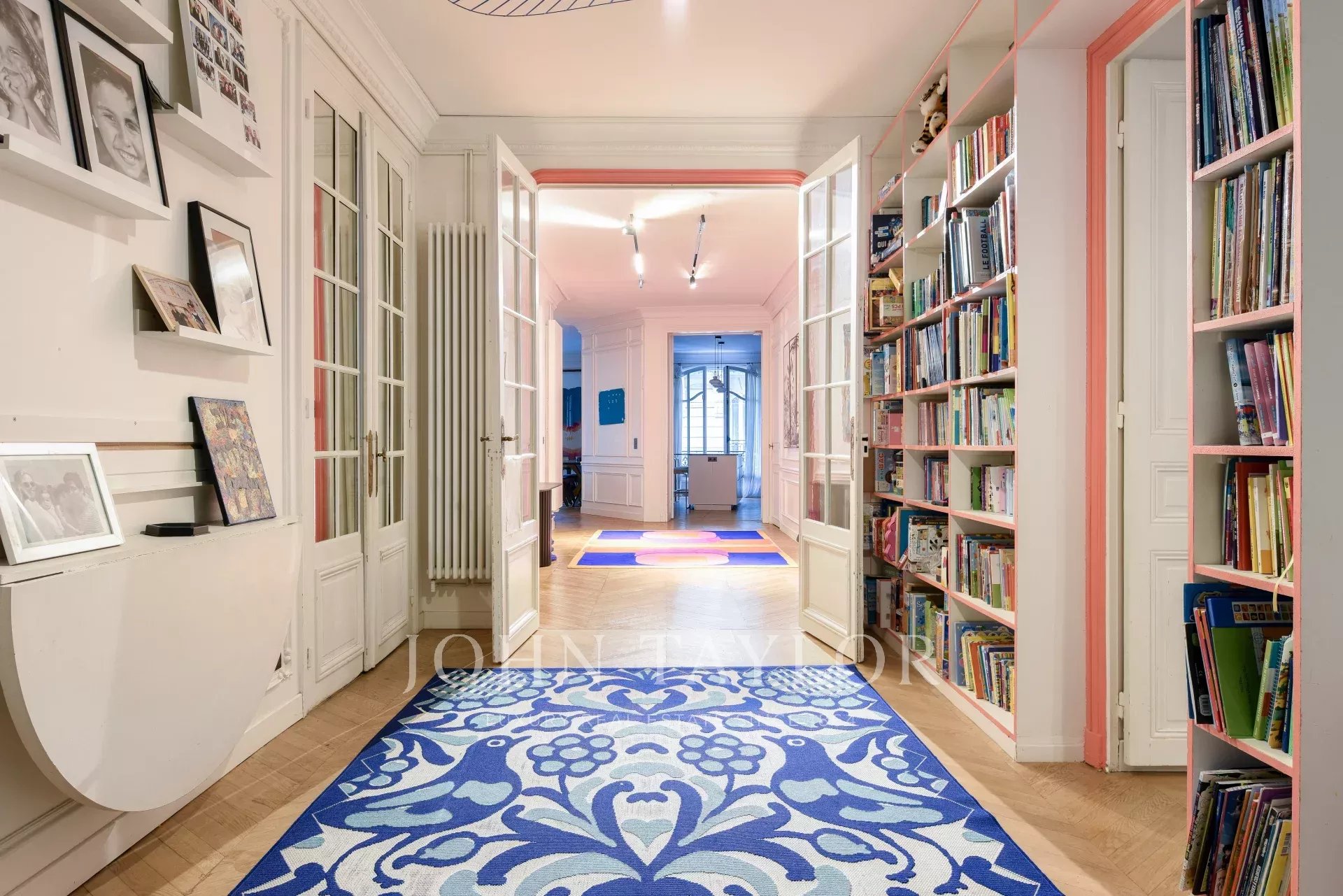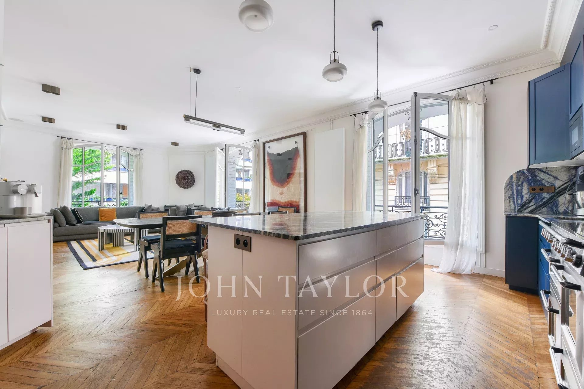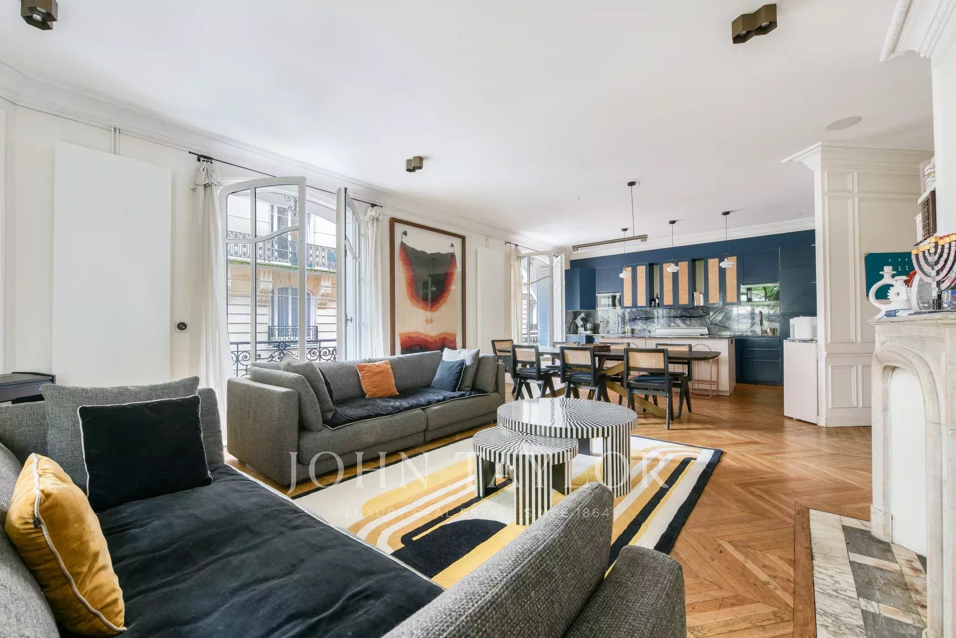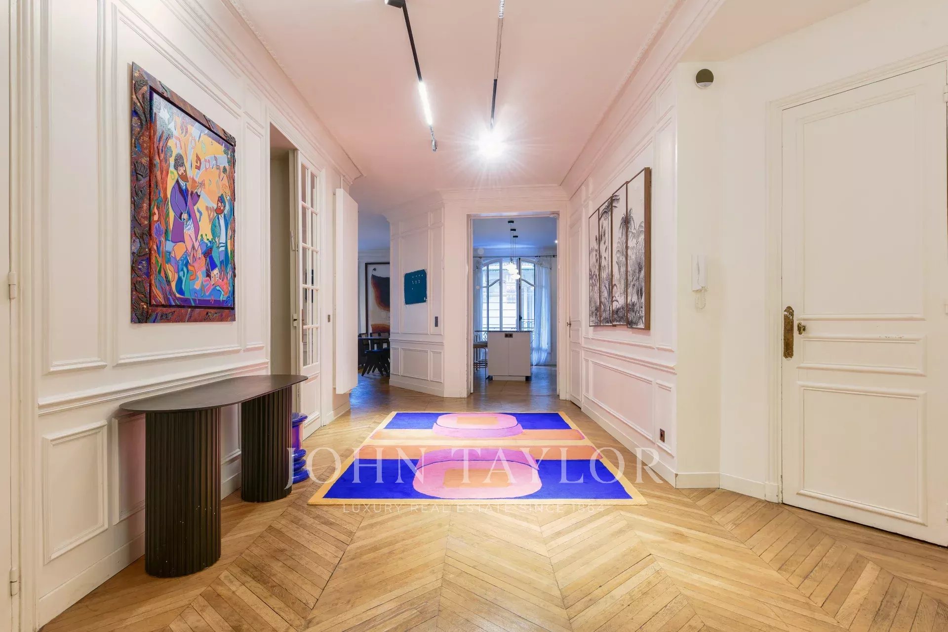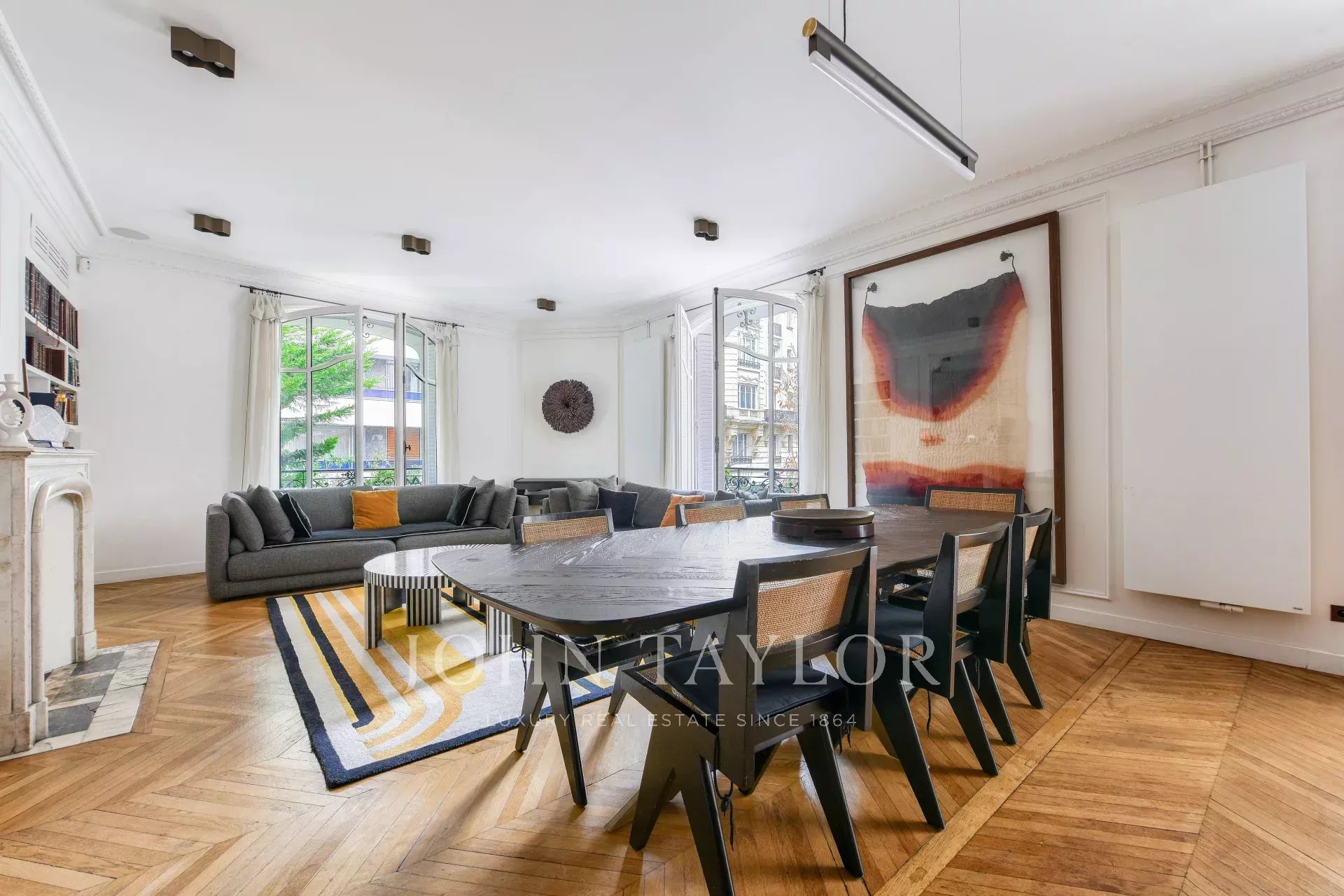 Appartement de 205 m² entièrement rénové dans un bel immeuble haussmannien récemment ravalé, au 1er étage d’un immeuble sécurisé avec ascenseur et gardien.