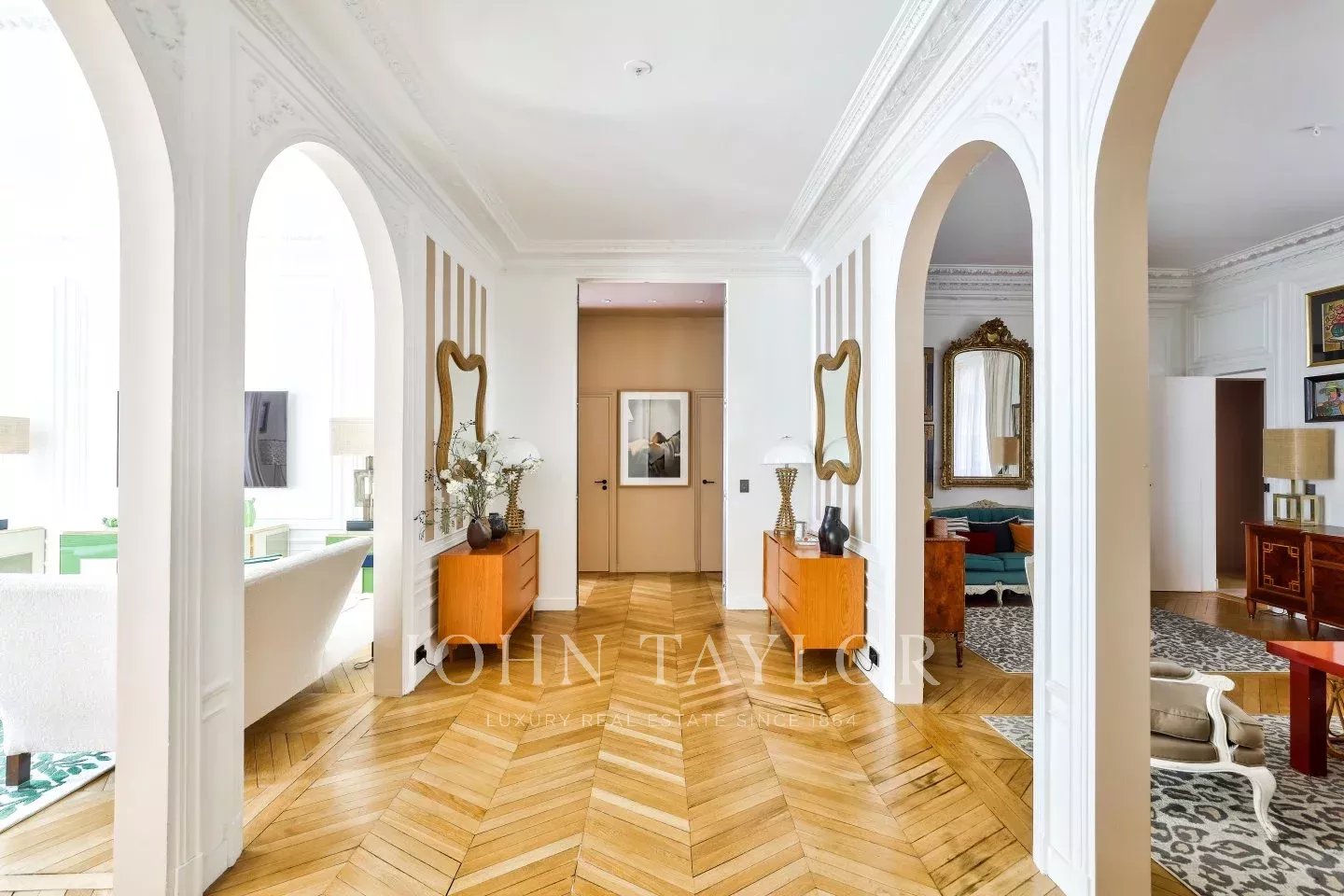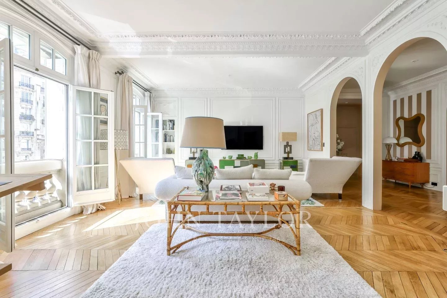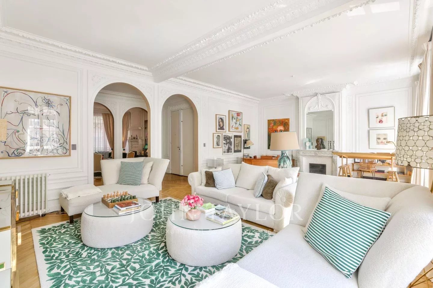 Idéalement situé entre chaussée de la Muette et l'avenue Henri Martin, au sein d'un immeuble en pierre de taille de très bon standing, superbe appartement familial rénové d'une superficie de 231 m².