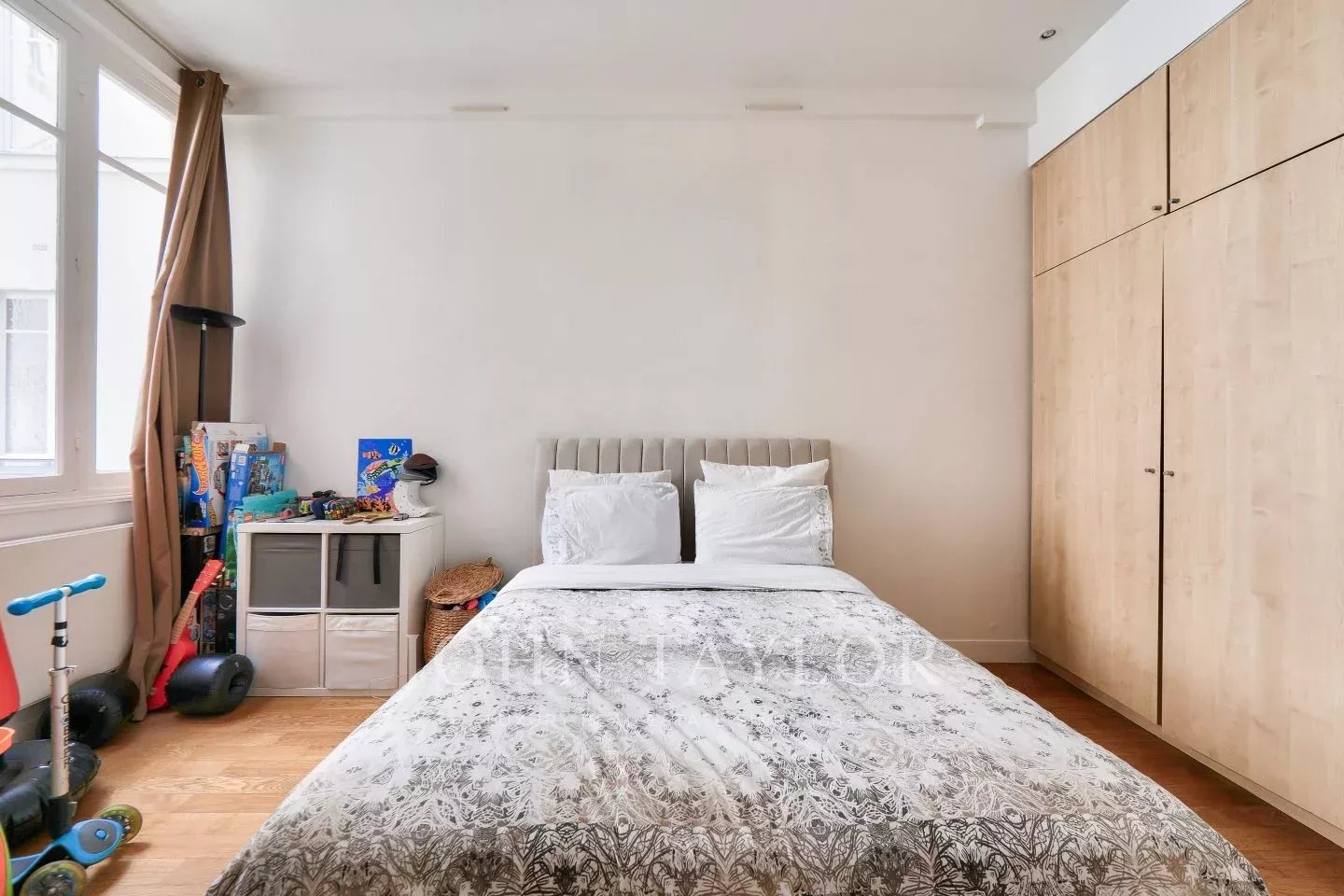 L’appartement a su préserver tout le charme de l’ancien : parquets, moulures, hauteur sous plafond, et dispose de nombreux espaces de rangement.