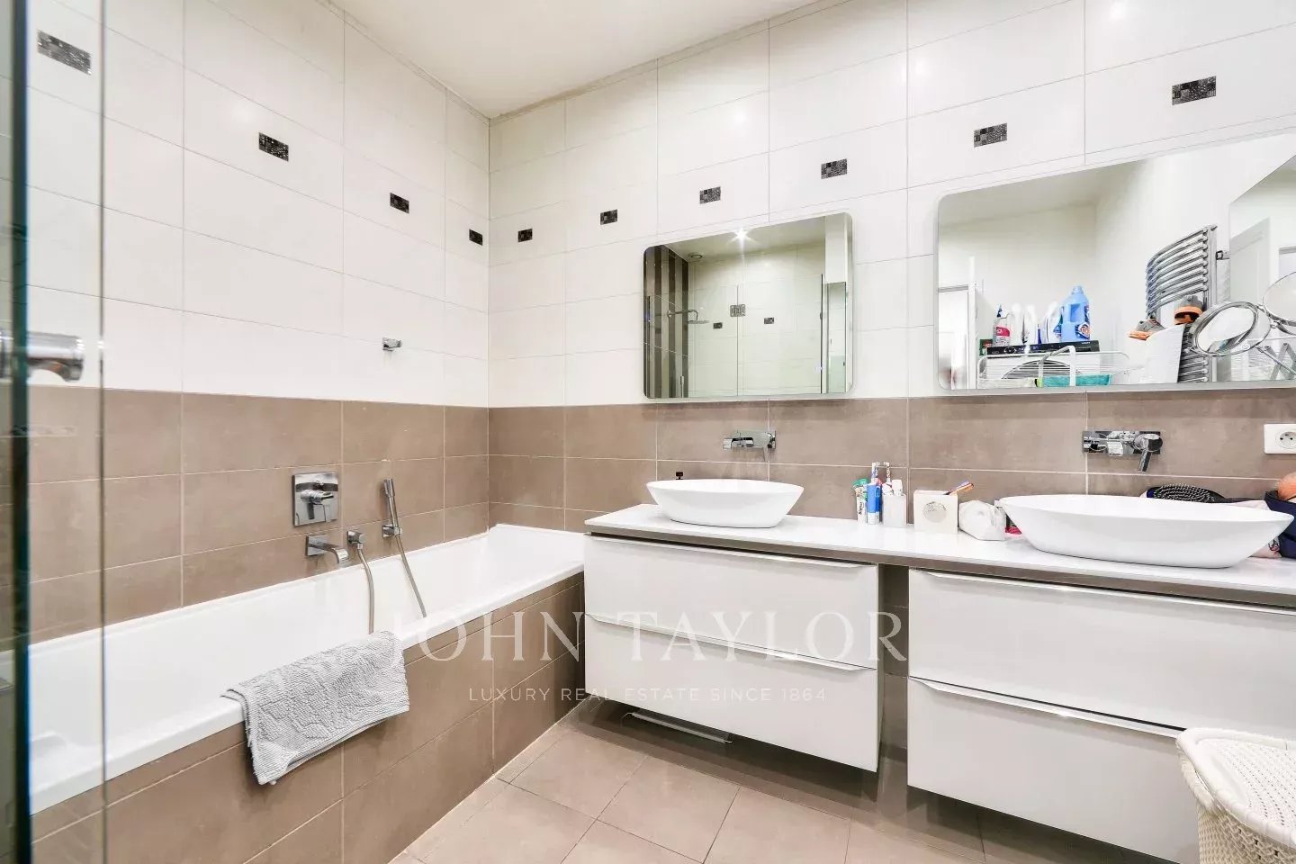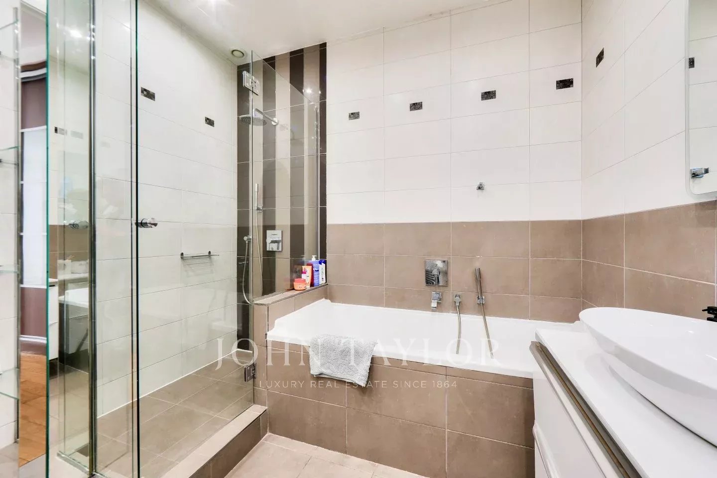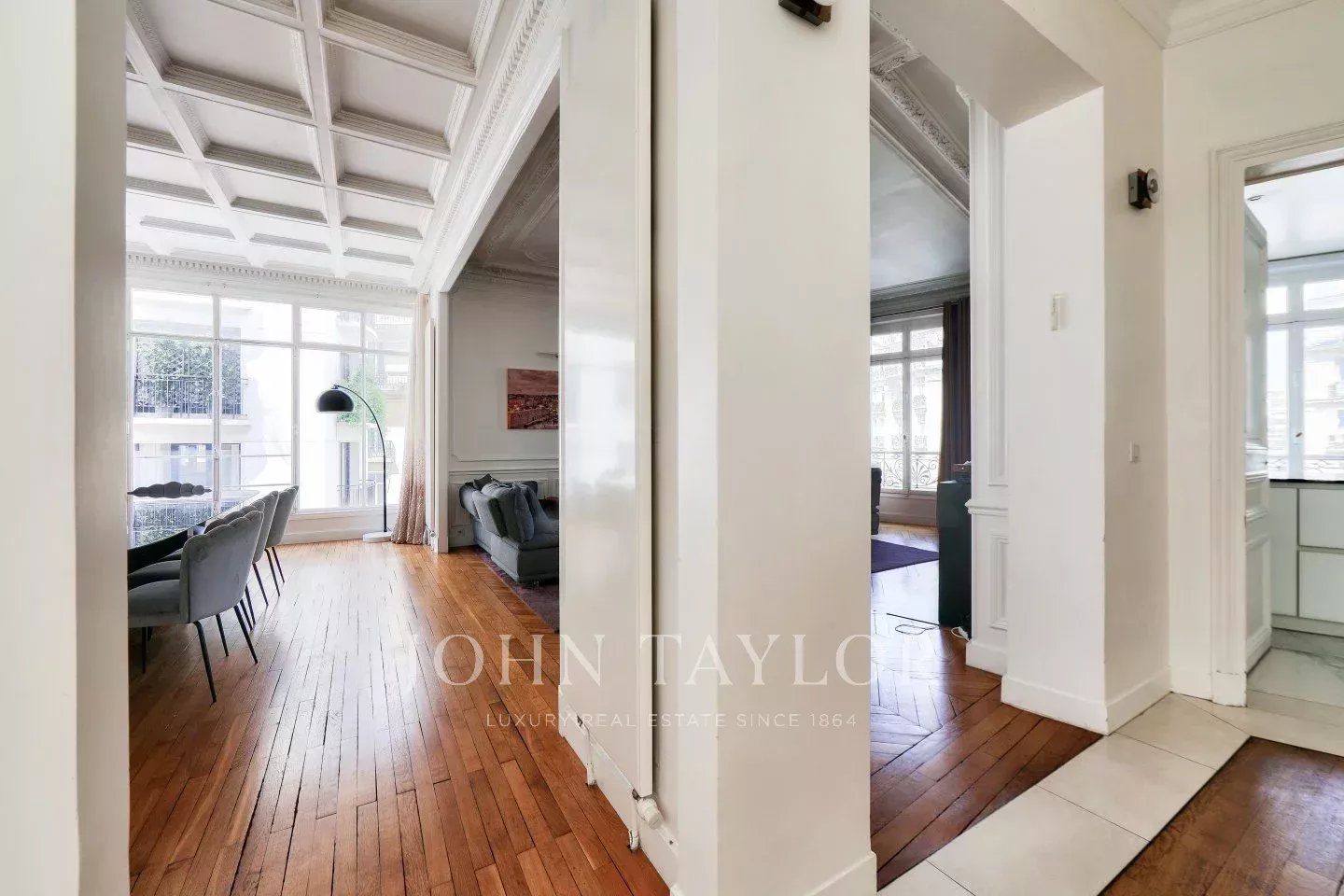 Au sein d’un immeuble ancien de bon standing, avec ascenseur et gardien, cet appartement de réception et de famille, situé au troisième étage, offre une surface de 161,09 m² (loi Carrez). Entièrement climatisé, il conjugue charme de l’ancien et confort contemporain.