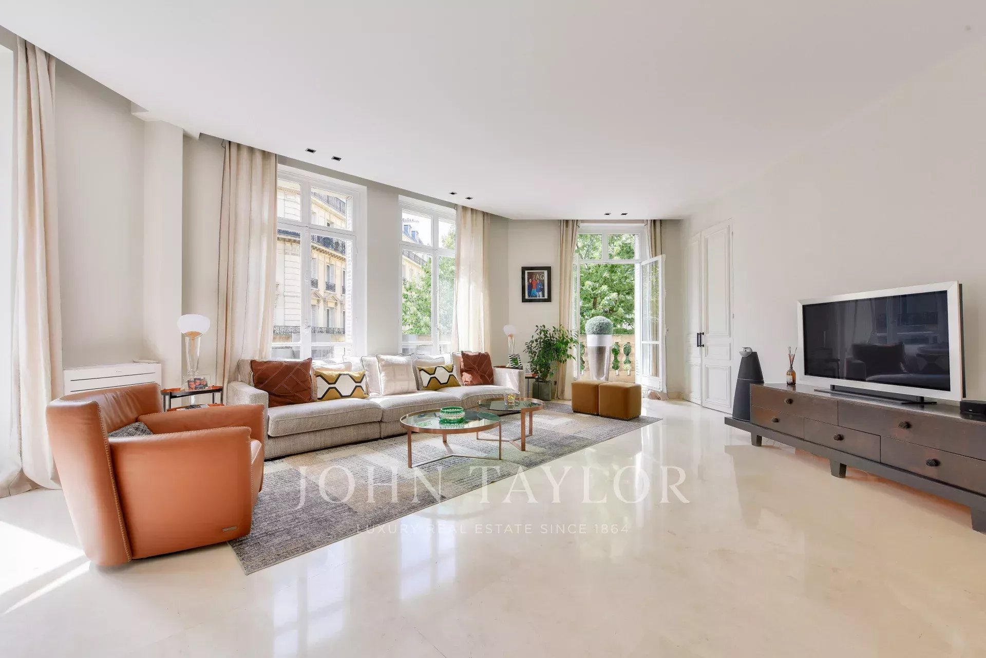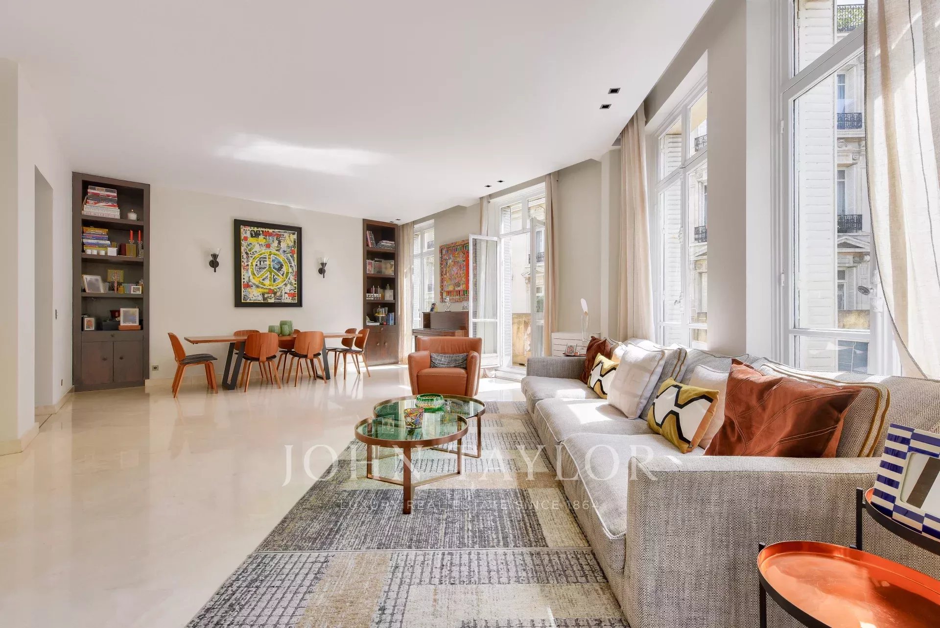 - un vaste double séjour/salle à manger en angle de près de 60m² ouvrant sur un balcon filant