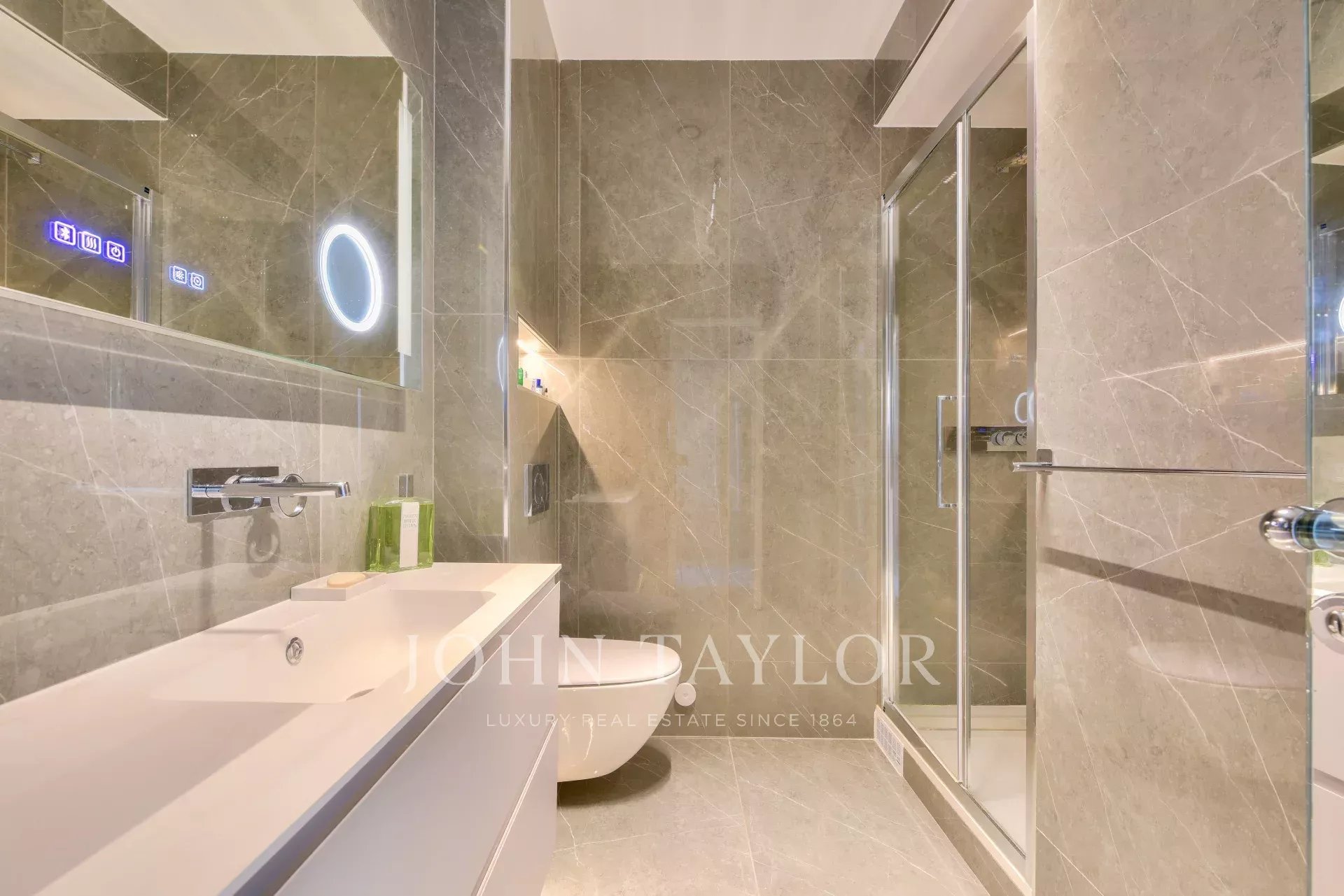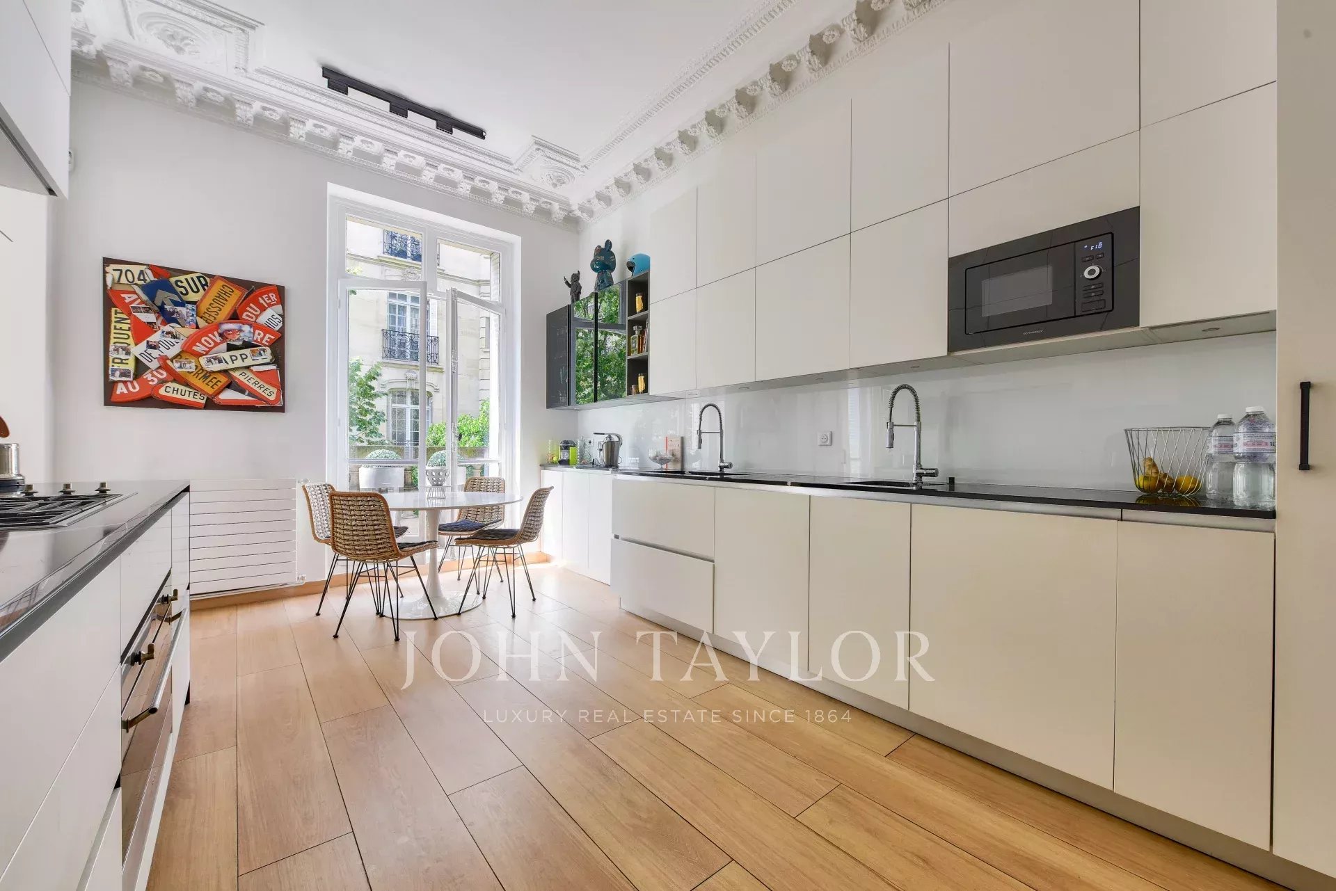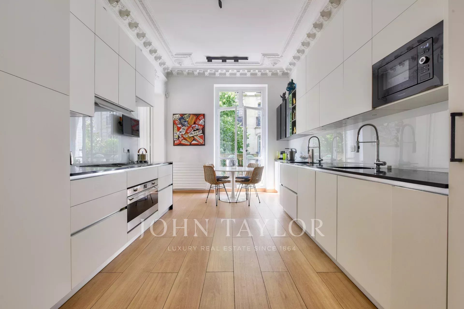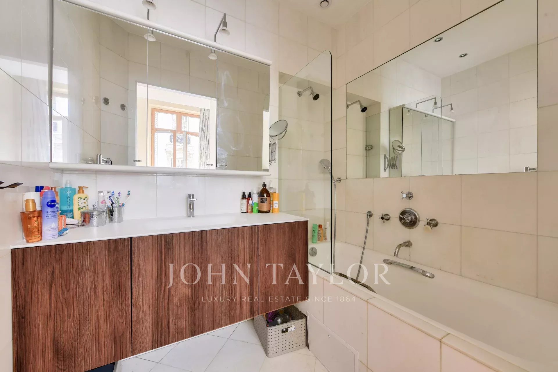 Cet appartement baigné de soleil (exposition Est et Sud), offre de très beaux volumes avec sa hauteur sous plafond de 3,45 m.