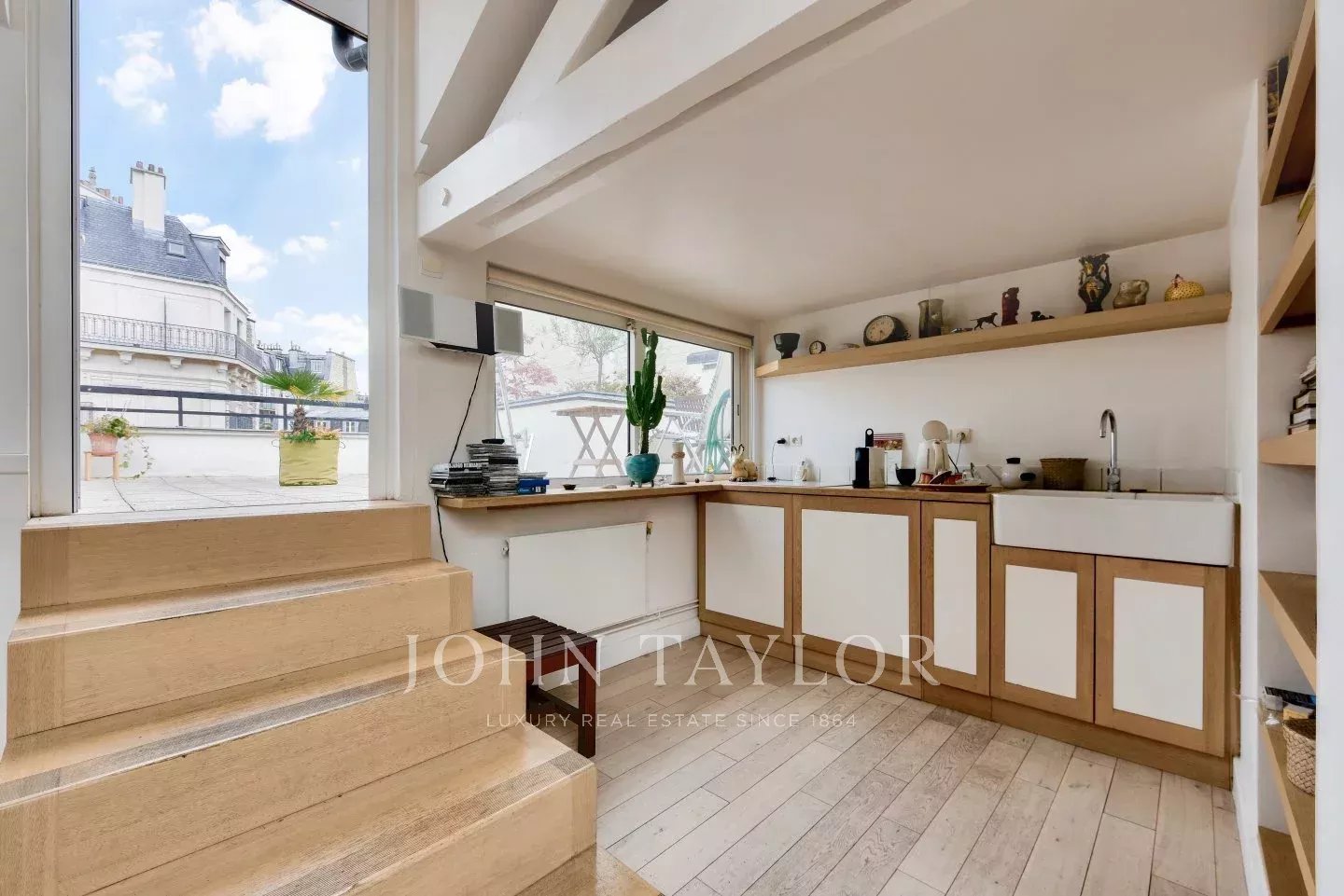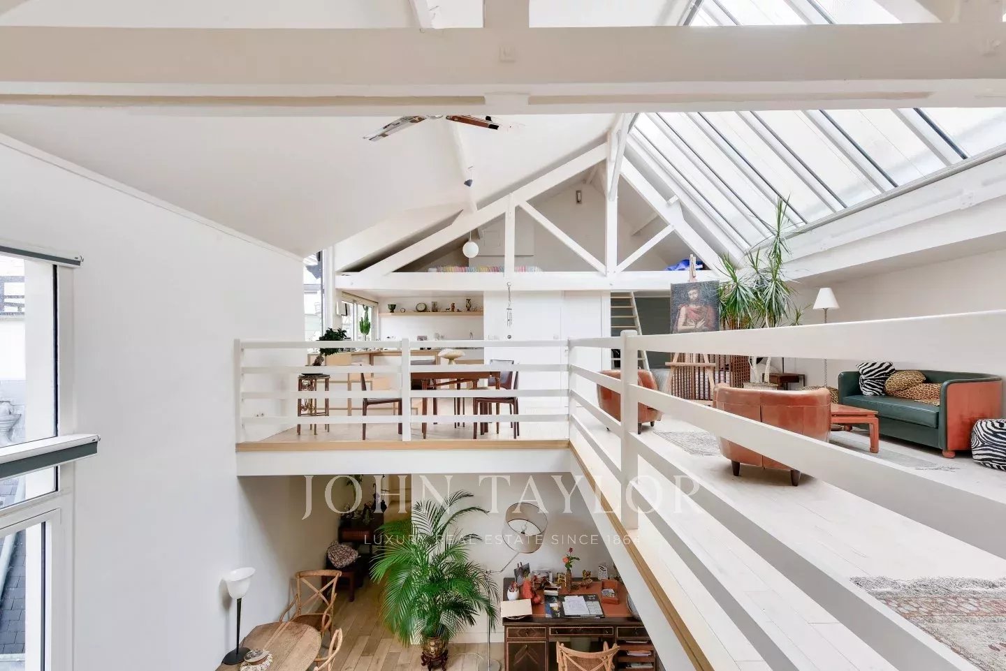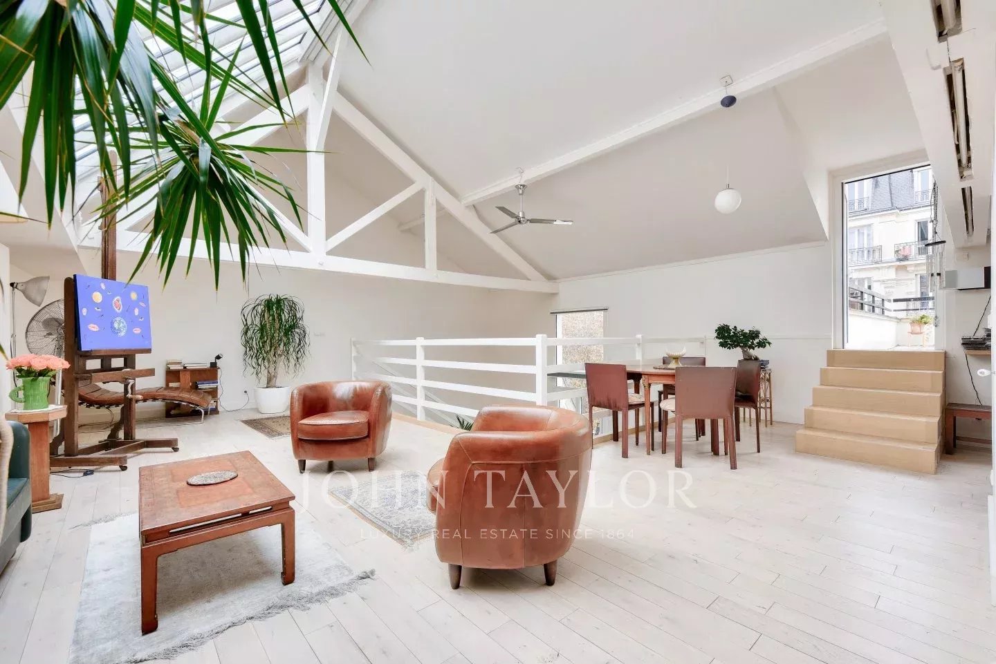 Ce bien se distingue par ses volumes impressionnants et profite d'une superbe hauteur sous plafond de 6 mètres sous une verrière. Clarté et ensoleillement inonde ce bien unique avec sa terrasse exposée au sud.