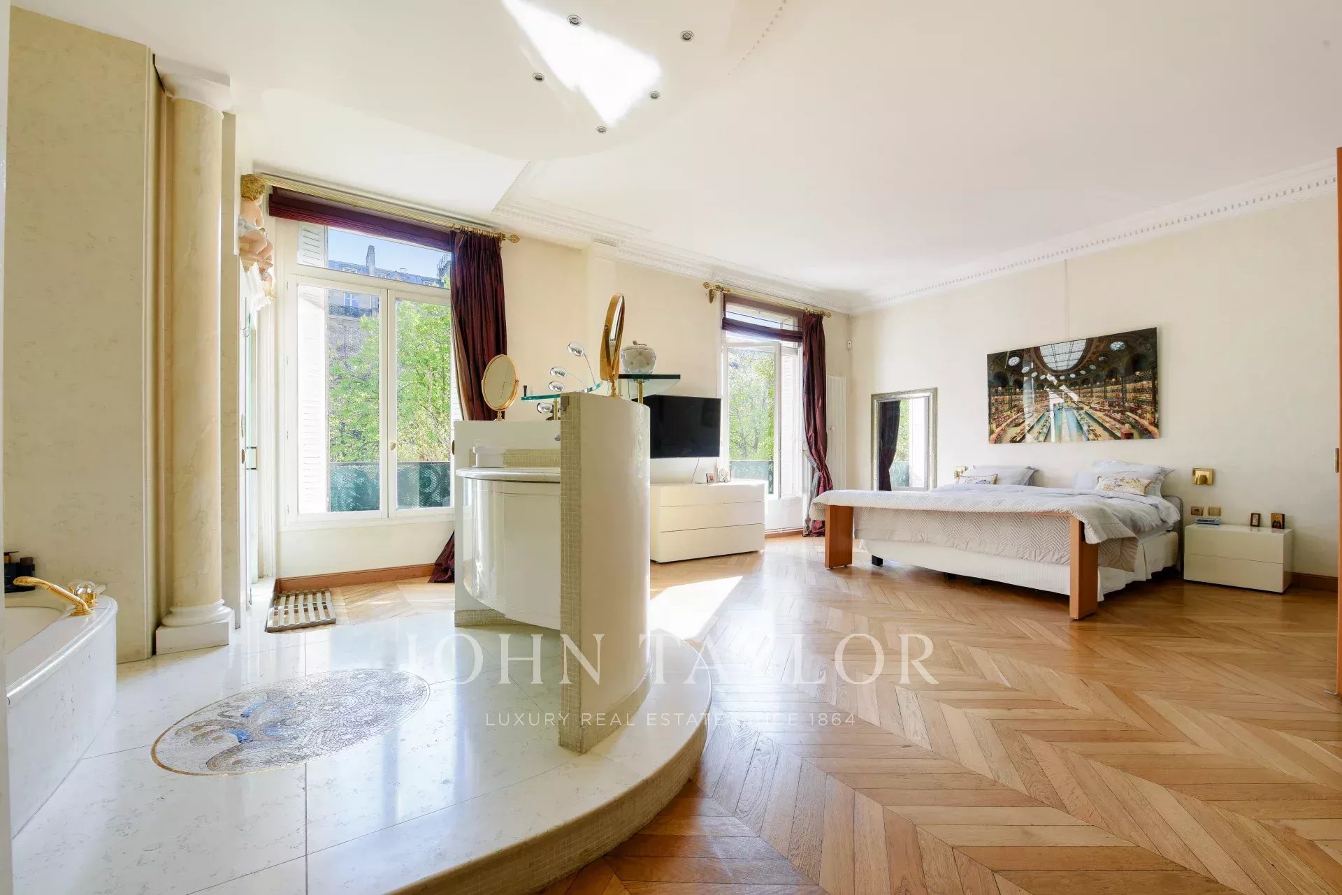 Dans un immeuble ancien de très bon standing avec ascenseur et gardien, nous vous proposons au 1er étage un appartement de 239.77 m² exposé Sud bénéficiant de 3.30 m hauteur sous plafond et d'un plan optimisé.
